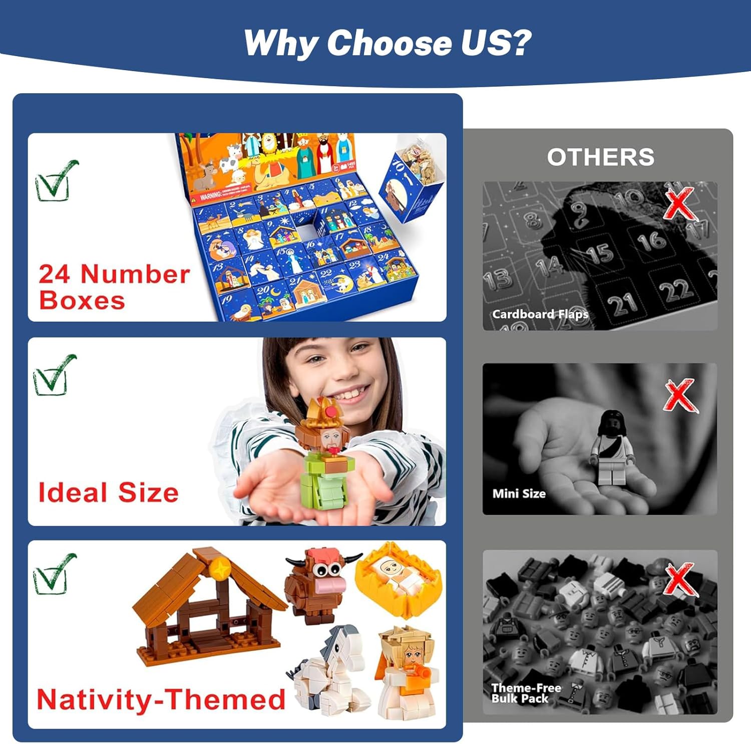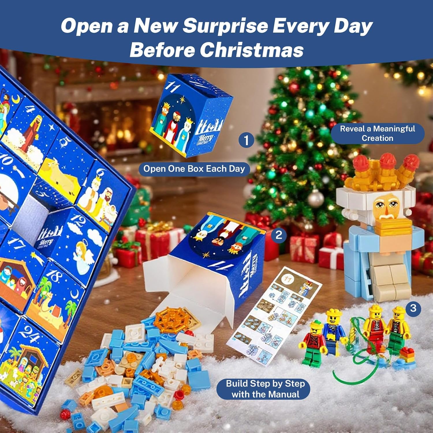 【24 giorni di conto alla rovescia per Natale】Questo calendario dell'Avvento per bambini per l'anno 2025 contiene 24 diversi elementi costitutivi con figure. Ogni giorno si può comporre una nuova figura per ricostruire gradualmente la scena natalizia. In questo modo i bambini imparano la storia in modo giocoso e allo stesso tempo vivono il vero spirito del Natale. 【Stimolare l'immaginazione】 Attraverso la costruzione pratica e il gioco di ruolo, i bambini non solo migliorano la coordinazione occhio-mano e le capacità di pensiero spaziale, ma godono anche di un giocattolo educativo ideale che promuove la creatività e la gioia festosa. 【Sicuro e durevole】 Realizzato in materiale ABS atossico, inodore ed ecologico con una superficie liscia e priva di sbavature. La lavorazione artigianale esperta garantisce un assemblaggio dei blocchi senza soluzione di continuità, proprietà resistenti allo sbiadimento e una lunga durata. Con il loro design senza tempo, questi blocchi sono progettati per essere riutilizzati negli anni a venire e diventeranno sicuramente preziosi cimeli di famiglia per le feste natalizie. 【Confezione regalo squisita】 Il set viene fornito in una confezione regalo robusta e dal design accattivante con un esterno festoso che trasmette un senso di festa non appena viene aperto. È il regalo di Natale perfetto per ragazzi e ragazze dai 3 ai 14 anni ed è adatto anche a scuole, asili, riunioni di famiglia e altre occasioni per trasmettere calore. 【Rafforzare i legami familiari】Aprire una finestra ogni giorno, assemblare figure e raccontare storie insieme a tuo figlio: questi sono tutti momenti preziosi per l'interazione genitore-figlio. L’aumento dell’attesa attraverso il conto alla rovescia approfondisce i legami familiari e crea preziosi ricordi natalizi pieni di amore e significato.