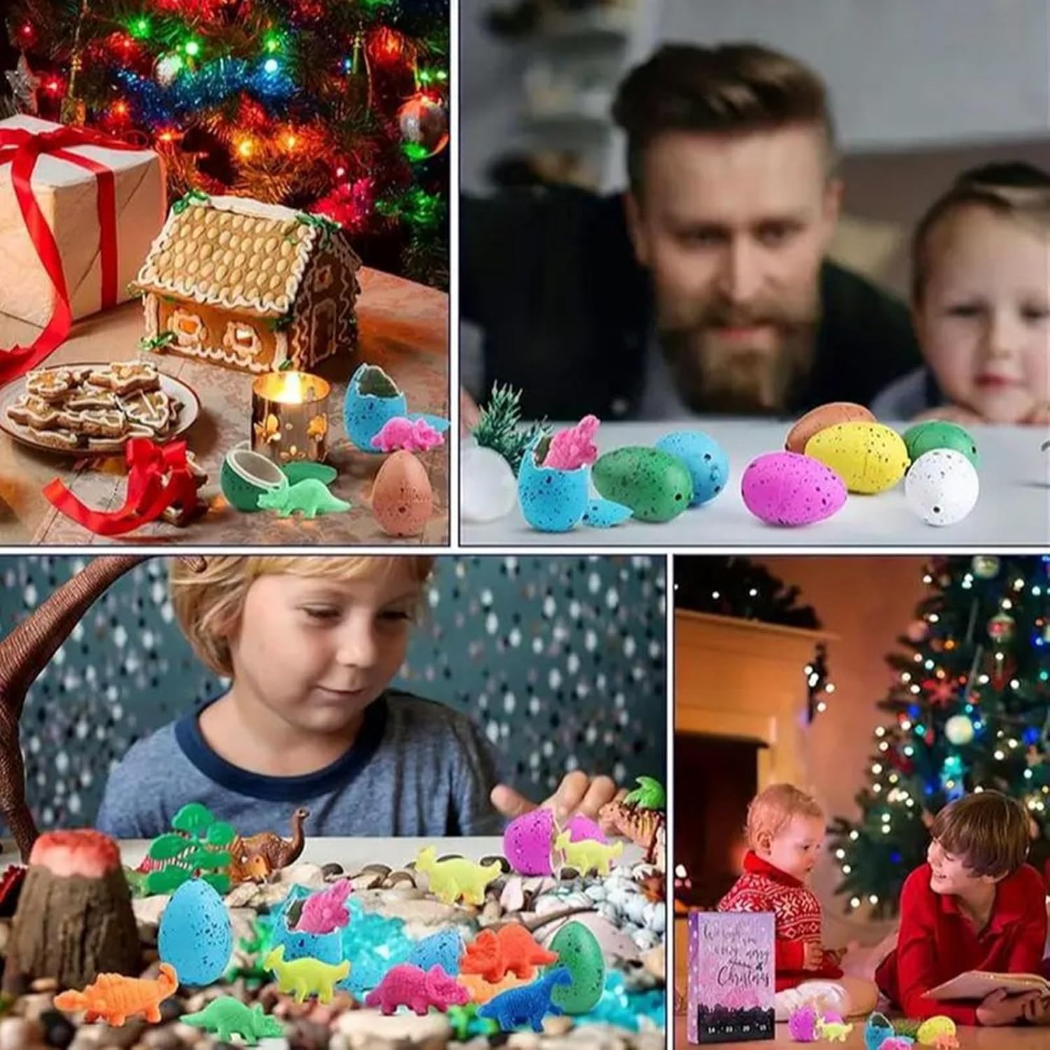 Emozionante calendario dell'Avvento con 24 uova di dinosauro uniche per sorprese quotidiane. Promuove l'attesa del Natale con un'attività unica di conto alla rovescia per giovani esploratori. Ogni uovo di dinosauro contiene personaggi diversi. Incoraggia il gioco creativo. Idea regalo per i bambini per entrare nell'atmosfera contemplativa del periodo natalizio