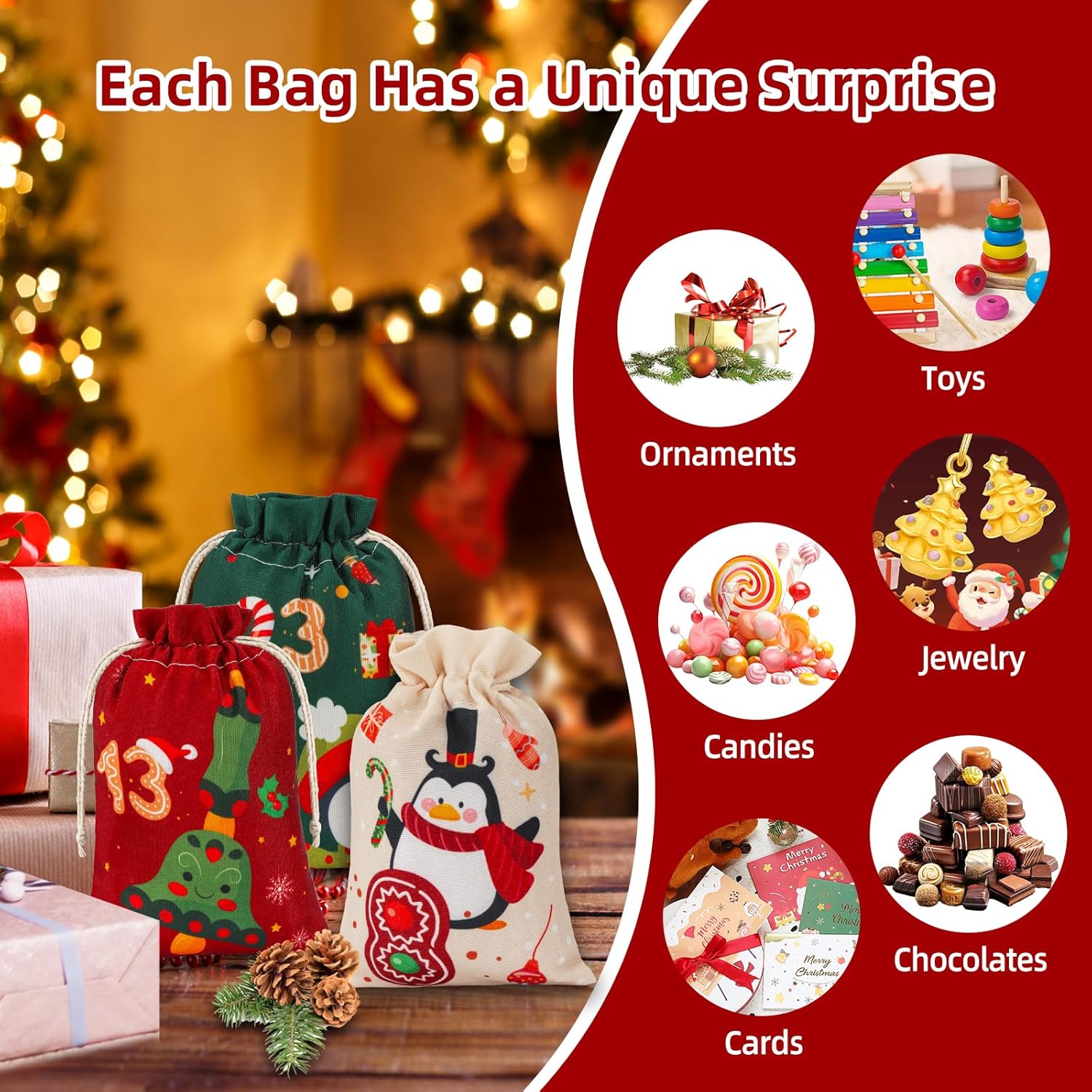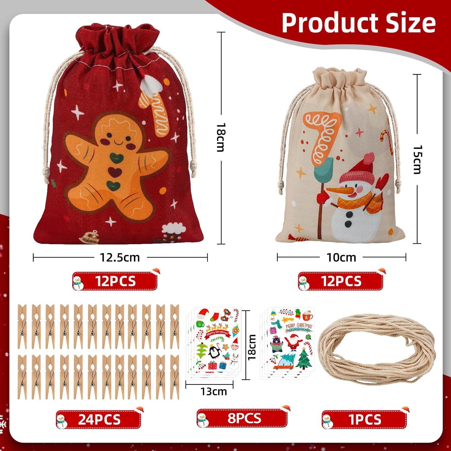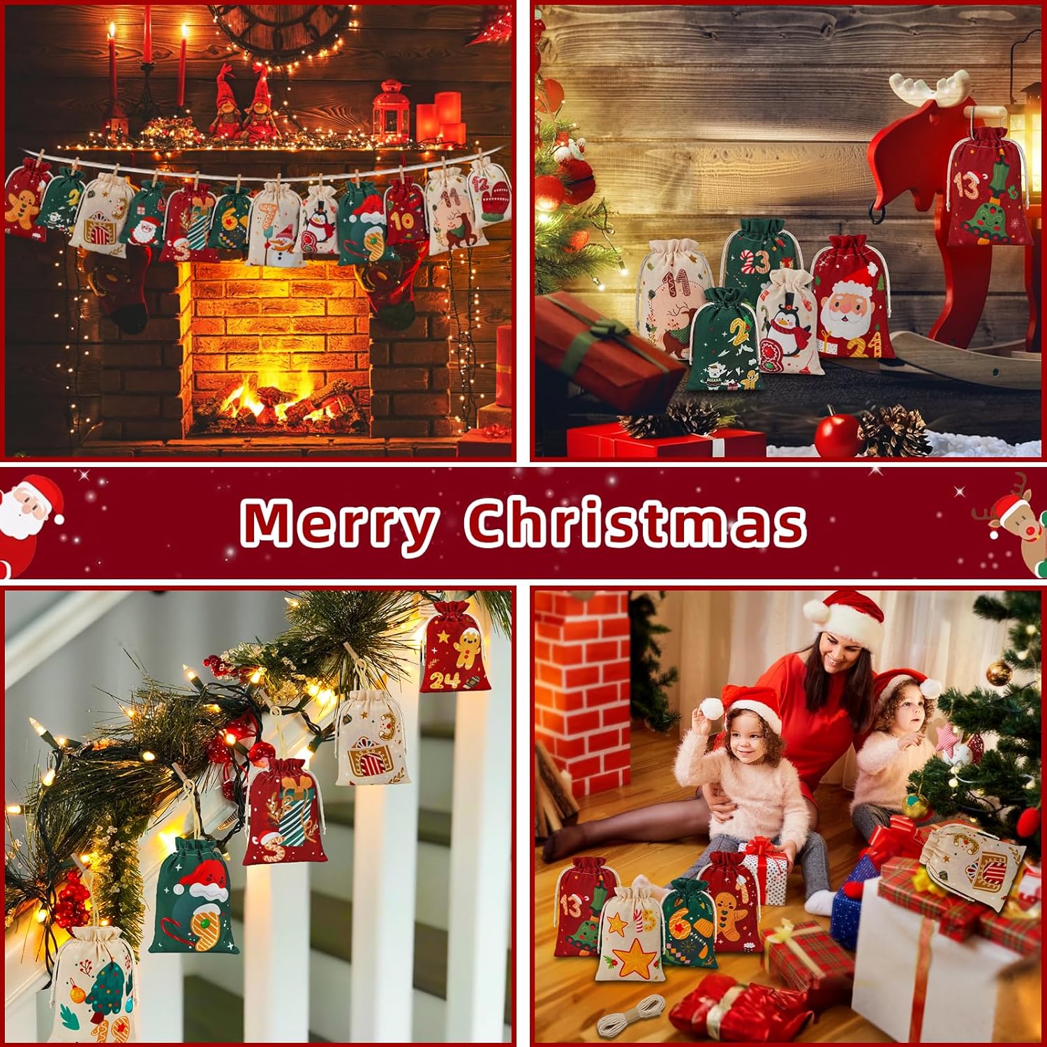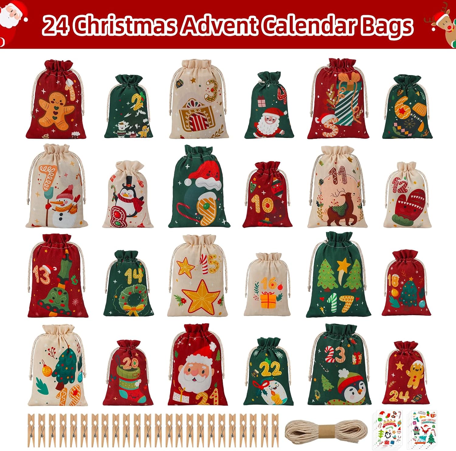 【Cantidad y Tamaños Adaptables】Questo calendario dell'Avvento da riempire comprende 24 sacchetti con pratiche scatole: formato grande da 18x12,5 cm e formato piccolo da 15x10 cm. Ideale per riporre regali di diverse dimensioni, piccoli giocattoli dulces hasta, assicurando che questo giorno di consigli tenga una sorpresa perfetta. Fabbricato con materiali durevoli per un uso festivo. 【Design ed elenco esclusivi per gli utenti】Cada bolsa de este calendario dell'avvento riempiti di numeri da 1 a 24 e patrones únicos, disegnati da artisti. Non c'è bisogno di etichette o ornamenti aggiuntivi, ma sono completamente decorati con un'atmosfera navigabile. Perfetto per un'esperienza di festival immediata ed emozionante.,Accessori completi inclusi: il set viene fornito con 24 pinze Madera e 10 metri di cavo, che consentono di trasportare facilmente le borse del calendario dell'avvento nella borsa. Ideale per decorare porte, pareti, soprammobili o camini, donando nel tempo un magico effetto magico. 【Versatilità di decorazione e festività】Questi sacchetti per calendari dell'avvento da riempire sono realizzati in tessuto e possono essere esposti su una varietà di superfici con gli accessori inclusi. Crea un'atmosfera navideña incantatrice al colgarlas nello spazio visibile, perfetta per sorprendere la famiglia e gli amici nel giorno dell'Avvento. Ideale per il calendario dell'Avvento 2025, un giorno molto speciale con piccole gratificazioni e ricordi indistruttibili.
