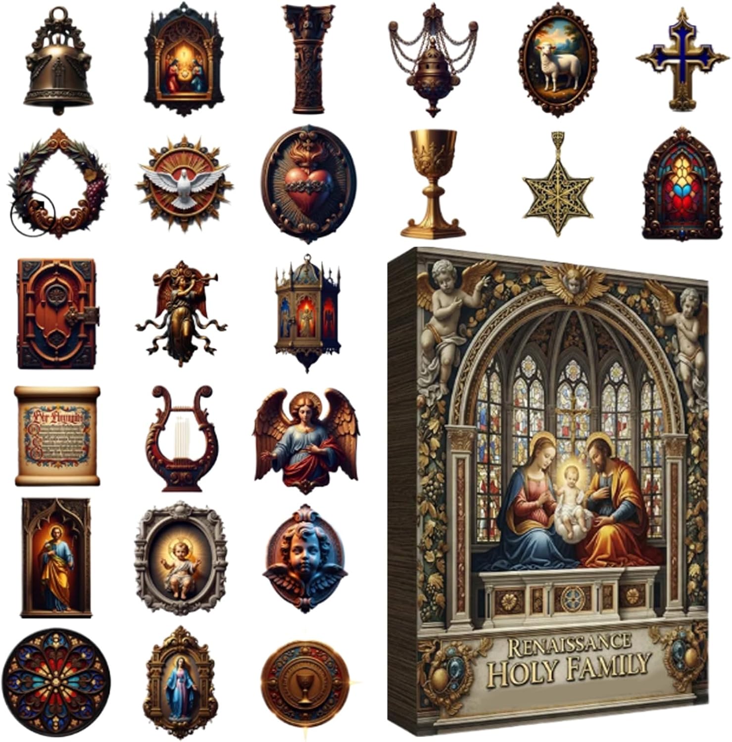 ECCELLENTE VERSATILITÀ: Grazie alla sua fusione di espressione artistica e messaggi ispirati alla fede, questo calendario dell'Avvento offre un'opportunità di apprendimento che promuove la positività. Diventa così un oggetto prezioso e un dono profondamente significativo per celebrare il vero Natale, mettendo al centro i valori umani e spirituali. Questo prodotto educativo e festivo consente di rafforzare i legami familiari esplorando temi. Strumento di apprendimento religioso: questo calendario dell'Avvento di Natale presenta illustrazioni vivide e dettagliate di scene bibliche essenziali dietro ciascuna delle sue 24 finestre giornaliere. Serve come un prezioso aiuto nello sviluppo spirituale rafforzando la formazione religiosa per l'eternità e mantenendo le calde tradizioni familiari durante il periodo natalizio. Ogni immagine realizzata con amore invita alla riflessione sulle storie sacre e fornisce uno strumento coinvolgente per l'espressione artistica. Fedeltà: il Calendario dell'Avvento incorpora un design ispirato al Rinascimento con una meticolosa replica delle immagini e un'elegante pennellata artistica in un look senza tempo che si adatta perfettamente alle tradizioni delle vacanze e arricchisce l'ambiente domestico festivo. Incarna una fusione armoniosa di arte e fede, ideale per momenti di festa indimenticabili e stimolanti. Spiritualità quotidiana: questo calendario dell'Avvento 2025 consente alle famiglie di impegnarsi in un momento di preparazione spirituale esplorando ogni giorno le storie della Bibbia. Promuove il rafforzamento del legame genitore-figlio e riunisce i parenti per le riunioni familiari quotidiane, celebrando il vero significato della stagione e rafforzando i momenti di condivisione e riflessione condivise. Intrattenimento sicuro per le feste: grazie alla sua struttura sicura e alle finestre di facile accesso, il Calendario dell'Avvento garantisce divertimento senza preoccupazioni per le famiglie che celebrano la stagione combinando divertimento e sicurezza in ogni apertura.