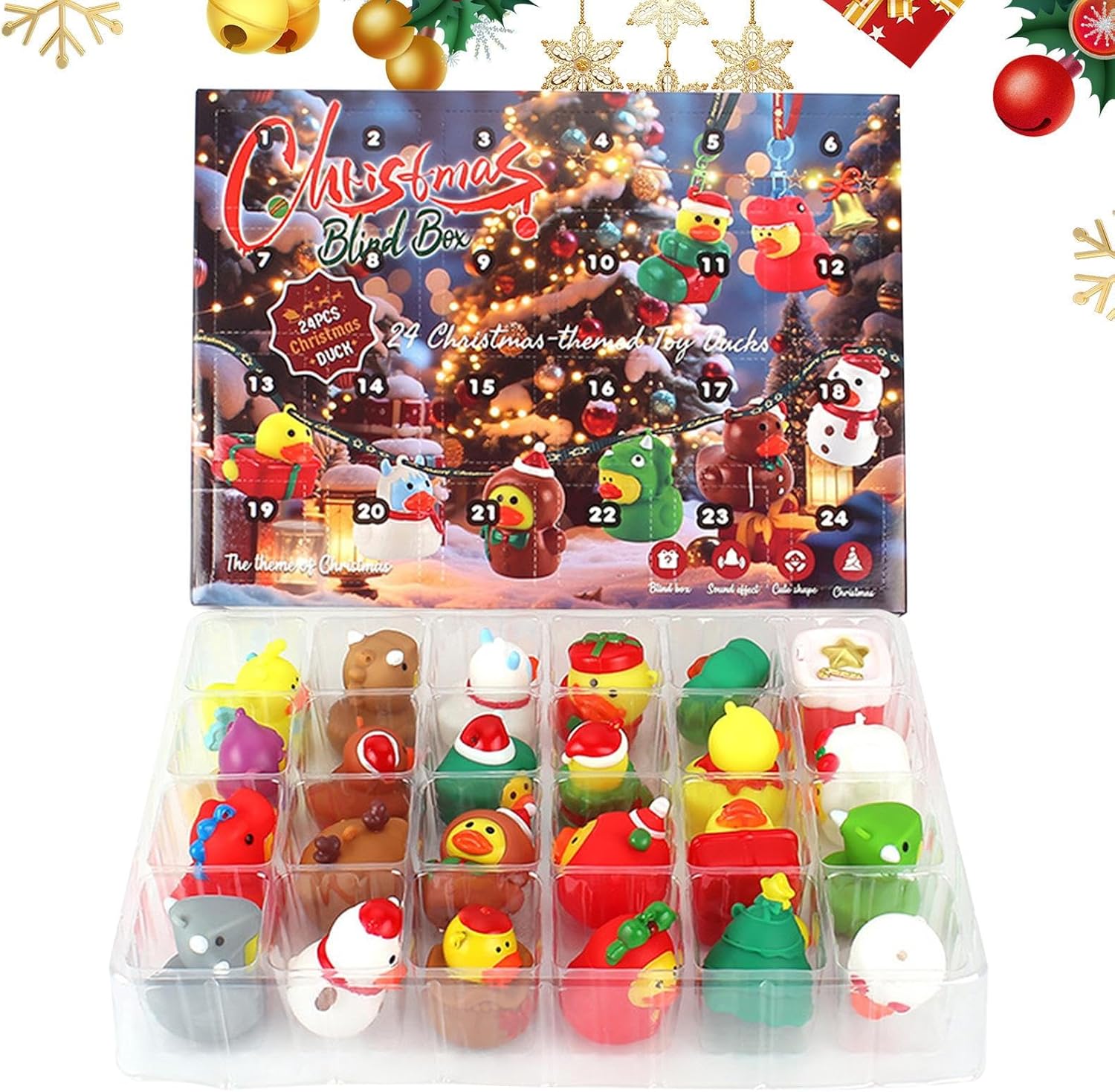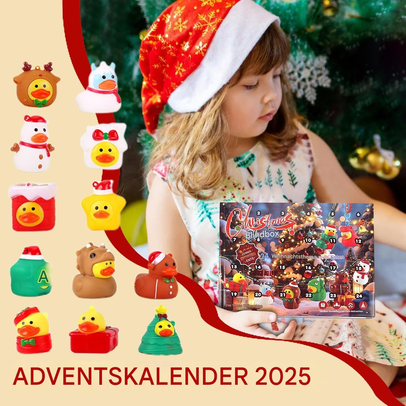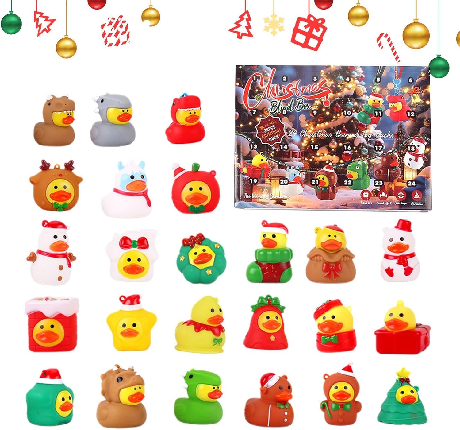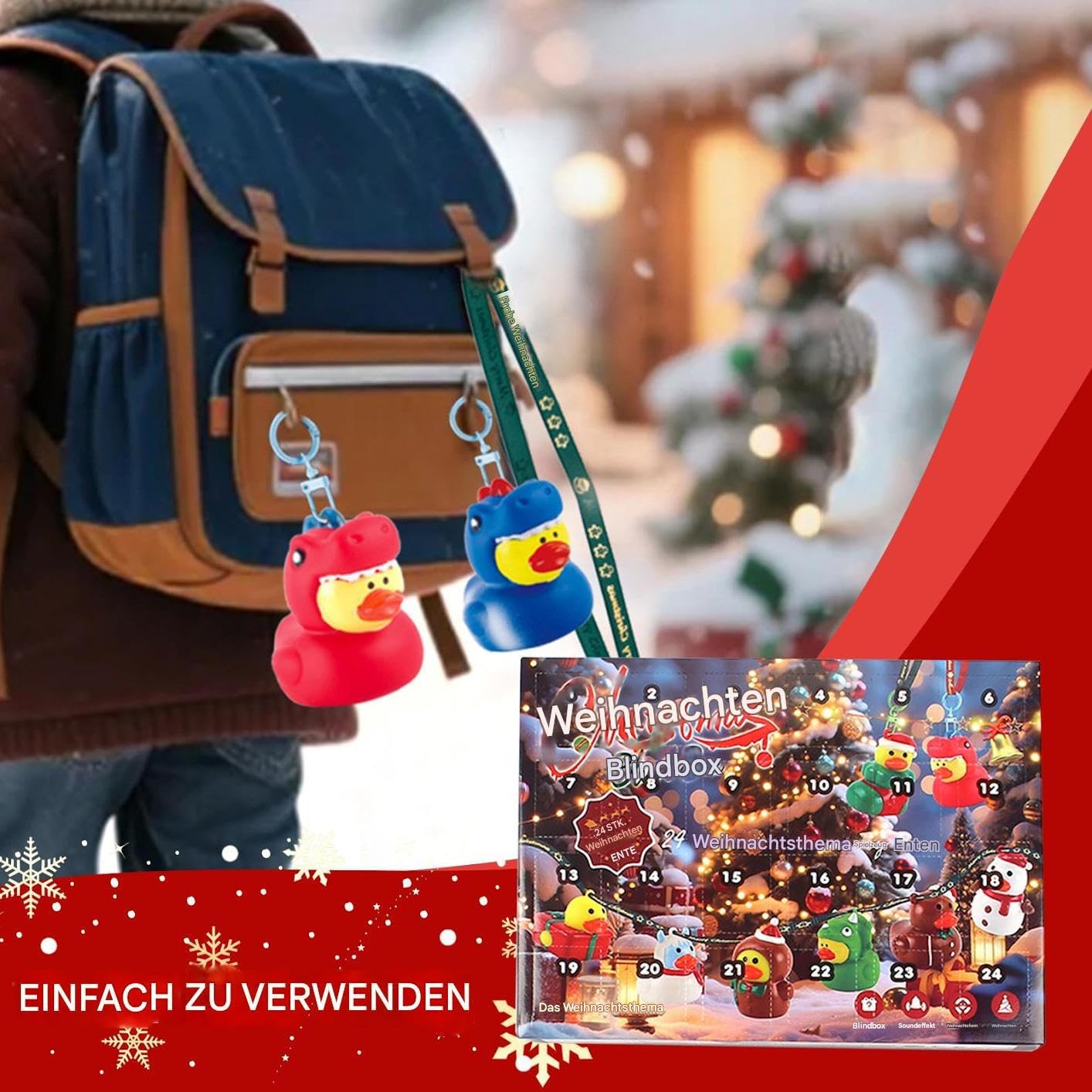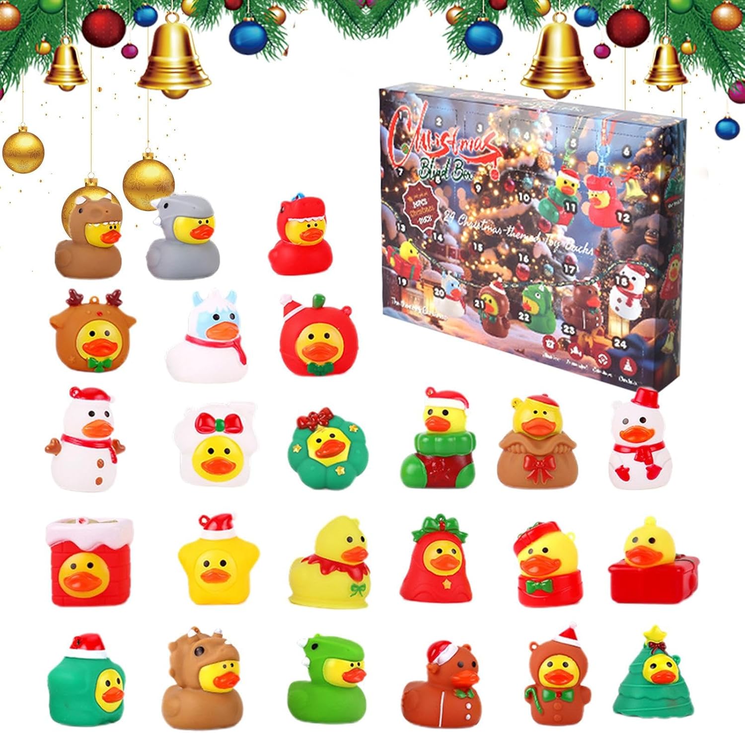 Regalo speciale: un calendario dell'Avvento a forma di anatra, che colpisce per la sua espressività creativa e tematica ed è quindi una decorazione unica e regalabile per le celebrazioni. Emozionanti sorprese dell'Avvento: dietro ciascuna delle 24 porte, come gioia quotidiana, attende una paperella di gomma unica, che riporta in vita le tradizioni festive in modo giocoso e fa brillare gli occhi dei bambini. Design elegante: il calendario natalizio con adorabili figure di paperelle di gomma aumenta l'attesa. Offre 24 giorni di divertenti scoperte e diffonde gioia festosa durante l'Avvento con affascinanti motivi di anatre. Gioia intuitiva: 24 sorprese a forma di anatra progettate con amore promuovono giocosamente la conoscenza e la creatività attraverso le scoperte quotidiane nel design creativo del calendario dell'Avvento. & Non tossico: le superfici lisce garantiscono una presa senza spigoli vivi, con opzioni di design flessibili per l'uso quotidiano e decorazioni festive, posizionamento versatile
