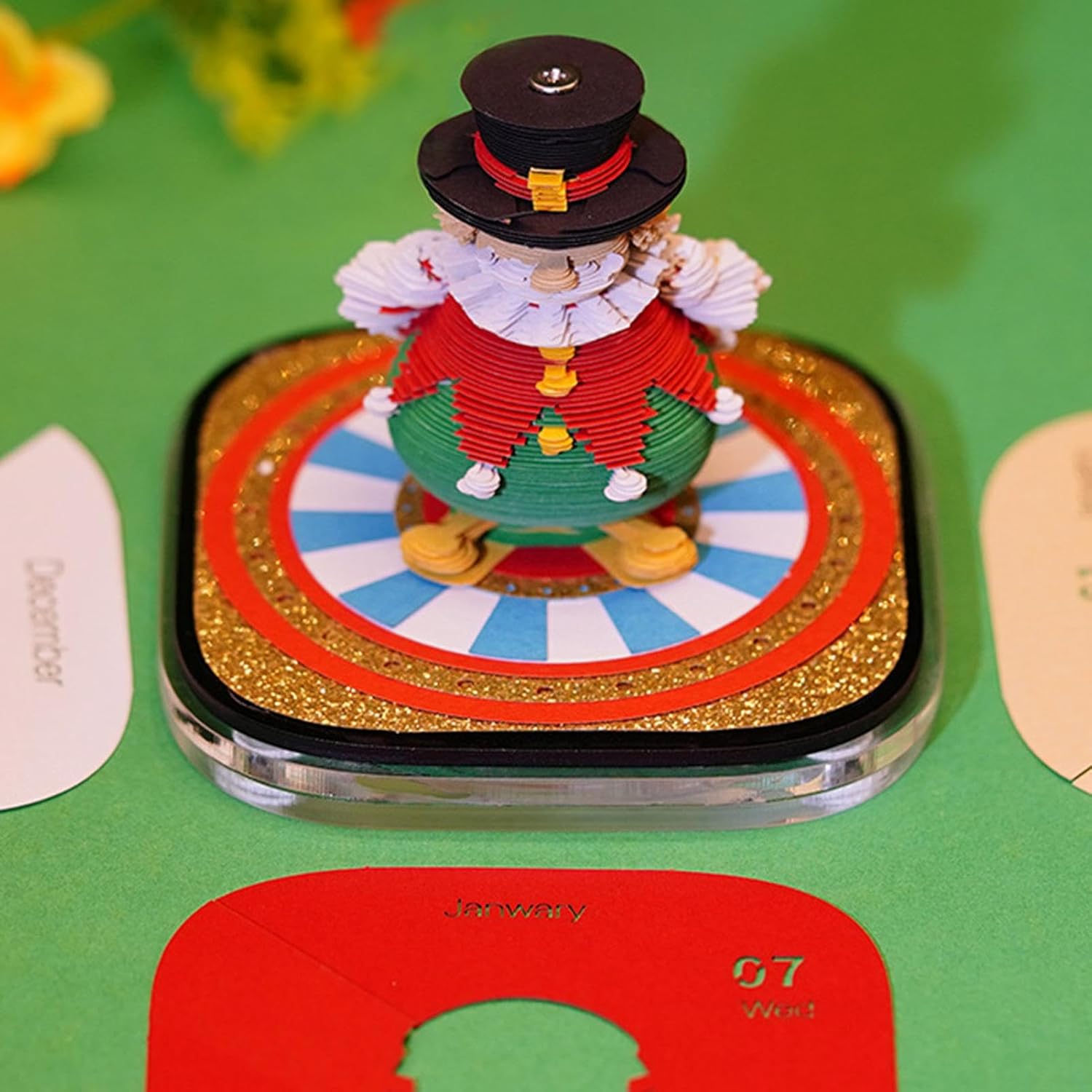 Struttura e persistente: Grazie all'utilizzo di carta artistica pregiata, conserva intensità cromatica e composizione resistente, unendo funzione estetica e utilità per la pianificazione quotidiana in contesti lavorativi o creativi a Rivelazione Giornaliera: Il meccanismo innovativo strappa e stacca crea un'attesa quotidiana, unendo funzioni di calendario e note per modernizzare la pianificazione e aggiungere gioia alle routine di ogni giorno con pagine rivelatrici Accessorio creativo da scrivania: La struttura multistrato con sculture di carta genera un vivido spettacolo circense in miniatura, offrendo un'esperienza visiva immersiva mentre arricchisce scrivanie o mensole con effetti di profondità dinamici, ideale per decorazioni domestiche e professionali Costruttore di Consapevolezza Artistica: Guida i bambini alla scoperta 'arte promuovendo l'apprezzamento artistico, offrendo opportunità di connessione tra genitori e figli attraverso interazioni giocose che portano gioia e coinvolgimento pratico ogni giorno Novità Originale: Il calendario 3D con vivace tema festivo accende l'immaginazione in ogni fascia d'età, arricchisce le tradizioni natalizie e si propone come regalo premuroso per celebrazioni e oltre