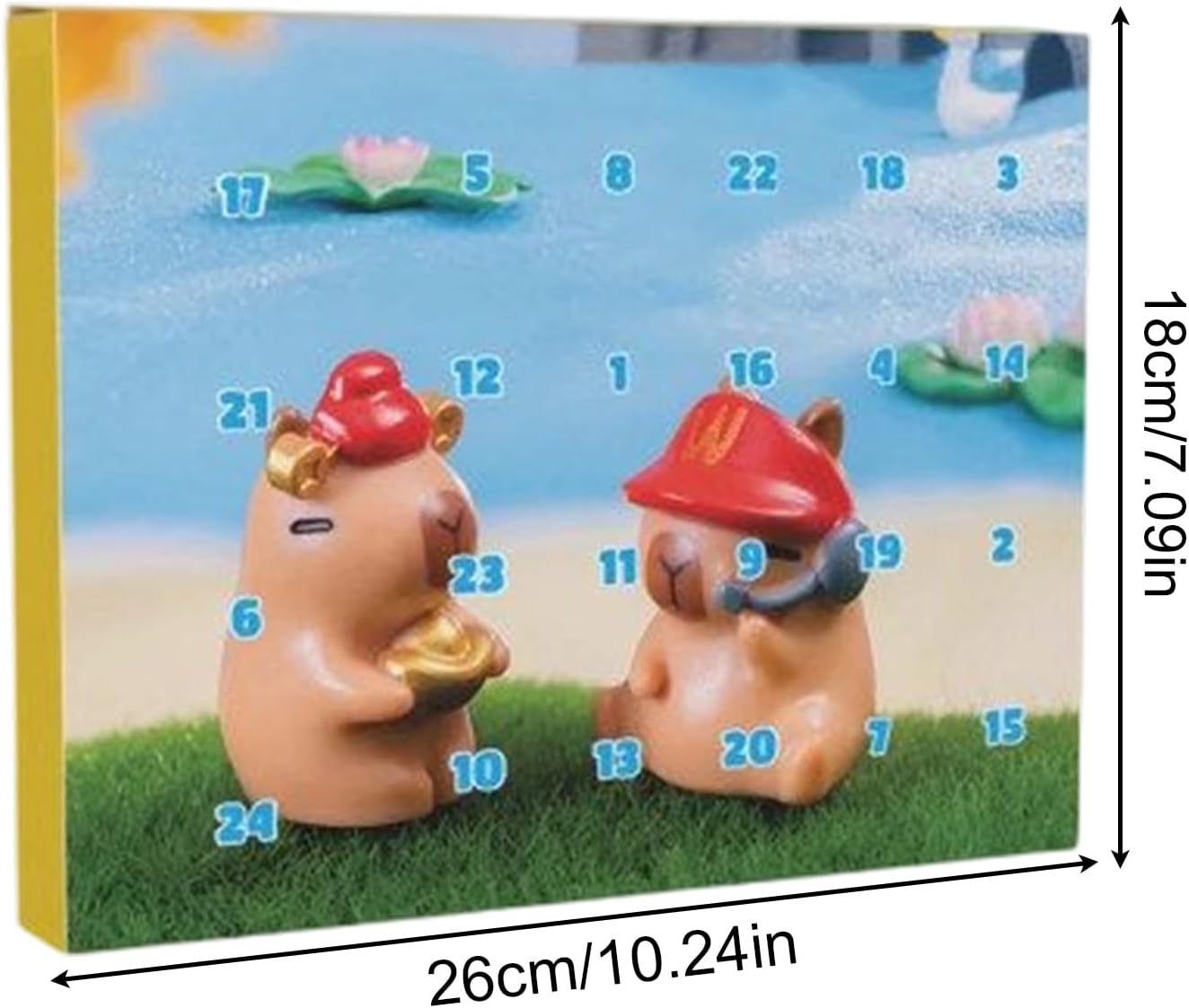 Ricordo affascinante: caratterizzato da un design creativo e festoso, questo calendario dell'Avvento aumenta l'entusiasmo aggiungendo divertimento al conto alla rovescia. Fa appello a tutte le età e crea ricordi indimenticabili per gli innamorati che festeggiano insieme. Il design accattivante rende ogni giorno un momento clou e incoraggia l'anticipazione delle vacanze. Ideale da utilizzare in casa, diventerà un elemento centrale dei preparativi festivi. Robusto materiale ABS: realizzato in robusta plastica ABS, questo calendario per il conto alla rovescia manterrà permanentemente la sua forma e offrirà divertimento duraturo grazie al suo design elegante. Ideale per celebrare traguardi in ambienti residenziali o professionali dove l'affidabilità incontra l'estetica, poiché la struttura è resistente alle deformazioni e rimane immacolata anche con un uso regolare. Design carino e sentito: progettato con un adorabile motivo capibara, questo calendario dell'avvento natalizio migliora le celebrazioni festive diffondendo calore e gioia istantanei. Offre alle famiglie un'esperienza natalizia indimenticabile mentre ammirano ogni giorno il fascino rotondo. Il design del calendario dell'Avvento rende ogni giorno di dicembre un momento speciale. Tradizione e gioia: l'apertura quotidiana delle 24 giocose figure di Capibara diventa un rituale amato per tutta la famiglia, che fa rivivere il magico spirito natalizio con ogni figura aggiuntiva e regala momenti speciali di comunità. Stabilisci tradizioni: l'integrazione di questo calendario dell'Avvento nella tua routine quotidiana supporta la coesione familiare. Emergono tradizioni preziose che rendono l'attesa del Natale un momento particolarmente bello e coinvolgente.