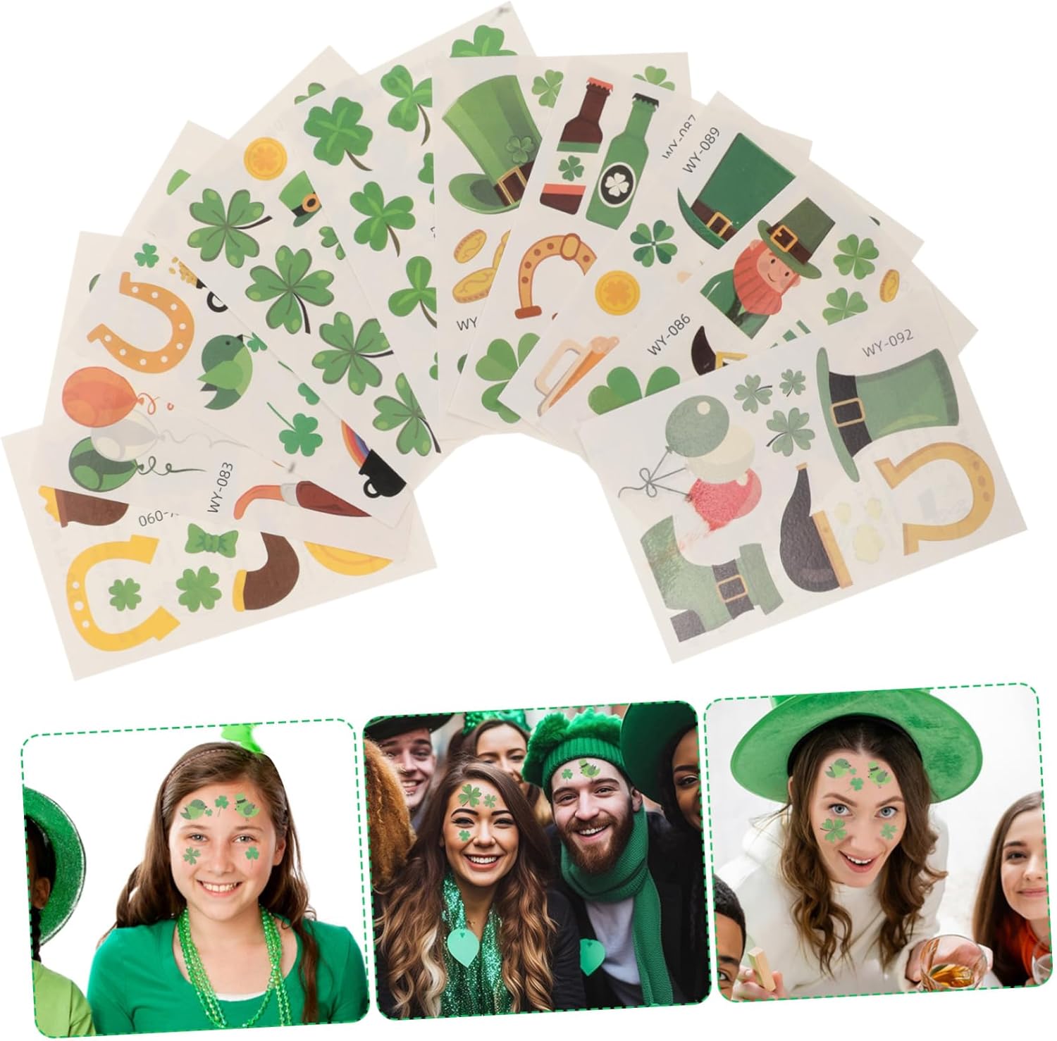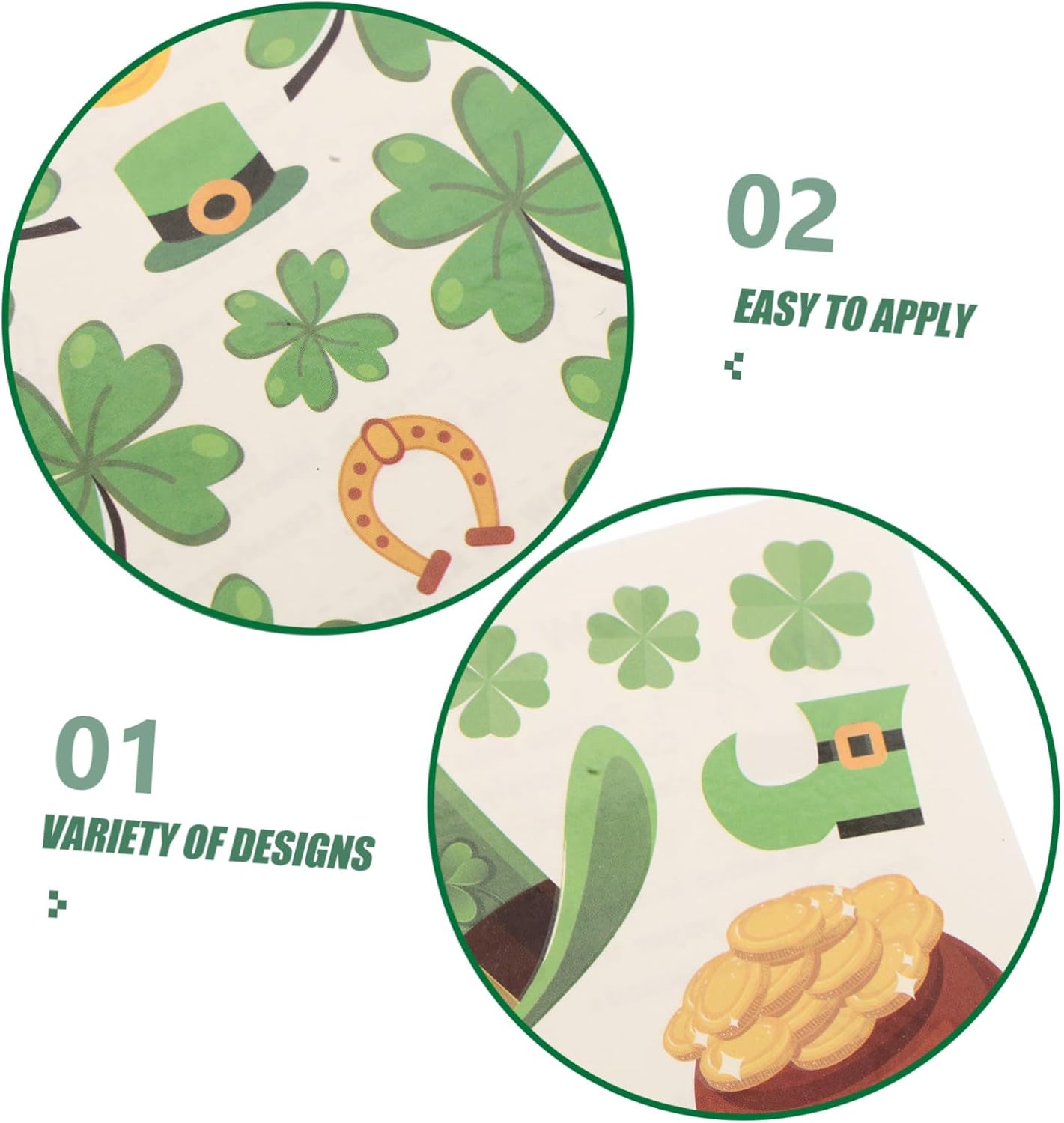 Sicuro per i bambini: questi st. Gli adesivi a tema di Patrick's Day sono realizzati con materiali, assicurando che siano sicuri e delicati sulla pelle dei bambini Facile da applicare: il design di autoaddetto consente ai bambini di applicare facilmente gli adesivi ai loro volti senza la necessità di strumenti aggiuntivi Varietà di design: con diversi disegni di Shamrock e Irishthemed, i bambini possono scegliere i loro preferiti per abbinare i loro festivi Per le feste: ideale per ST. Patrick's Day, festival irlandesi e altre celebrazioni, questi adesivi aggiungono un tocco divertente e festivo a qualsiasi evento Uso versatile: ottimo per bomboniere, spettacoli teatrali e giochi di dressup, questi adesivi sono per una varietà di occasioni
