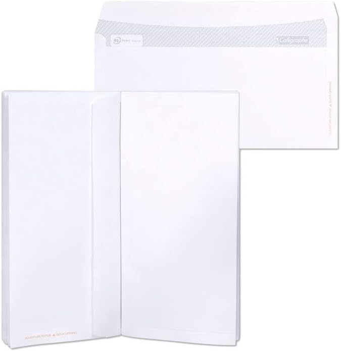 FORMATO: DL-110x220mm. Può contenere un foglio A4 (21x29,7 cm) piegato in 3. CARATTERISTICHE: busta senza finestra. Interno stampato in grigio, per assicurare la riservatezza della corrispondenza. CHIUSURA: Autoautoadesiva, la colla è protetta da una banda siliconata, garantisce una chiusura efficace e duratura. CONFEZIONAMENTO: Blocco collato permette di staccare facilmente le buste senza strapparle. avvolte in pellicola da 50 buste. CARTA 80g/m² : Certificata PEFC per garantire una gestione sostenibile delle foreste PRODOTTA IN FRANCIA nei nostri stabilimenti nel cuore dei Vosgi.