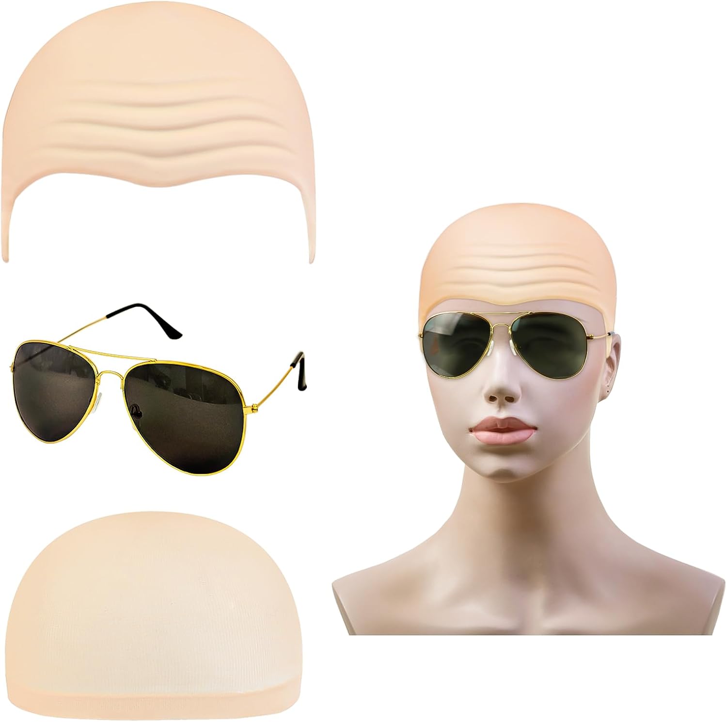 Caratteristiche: 1. Le calotte calve possono essere utilizzate per costumi da festa di gioco di ruolo e le calotte a rete possono aiutarti a indossarle in modo più ordinato, e sono anche oggetti di scena ideali per spettacoli teatrali, film, decorazioni in generale, ecc. 2. Gli accessori per costumi come calotte calve, retine per capelli, occhiali da sole alla moda, ecc. sono semplici nel design, facili da usare, comodi da indossare, riutilizzabili e affidabili. 3. Il nostro set di calotte calve è pieno di divertimento ed è un accessorio ideale per costumi per adulti e bambini, rendendo il tuo costume più affascinante. È perfetto per feste in maschera di Halloween, feste a tema film horror, travestimenti di Carnevale, travestimenti total black, travestimenti da mostro. Specifiche tecniche: Materiale: Vinile Colore: Color carne Contenuto della confezione: 1 * Occhiali da sole con montatura dorata 1 * Calotta calve cuoio capelluto 1 * Retina per capelli con calzini color pelle Consigli: È possibile applicare del lattice liquido sul bordo della calotta e poi applicarlo sulla pelle; poi usa il trucco per renderlo dello stesso colore della tua pelle