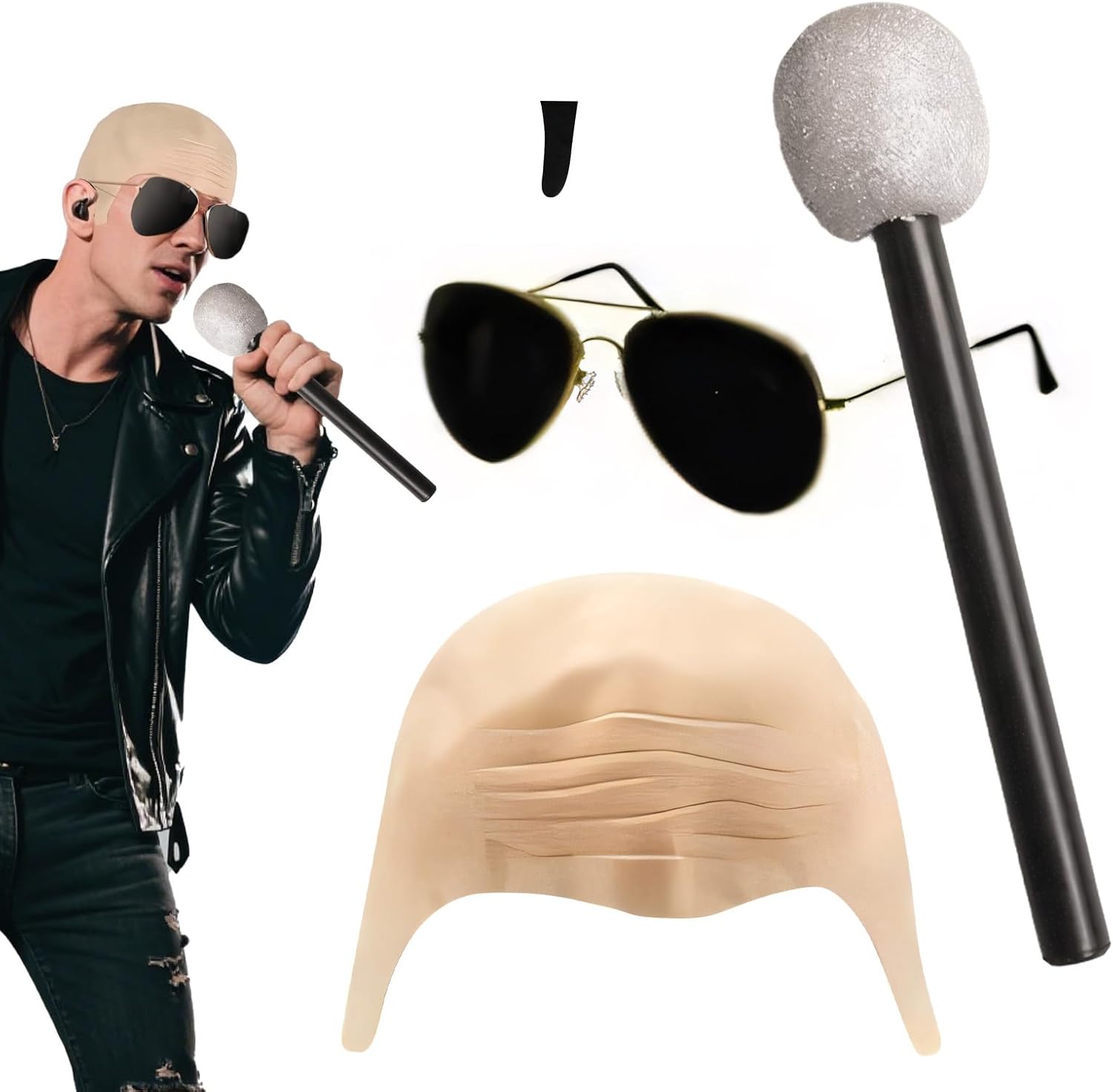Descrizione prodotto Ottieni stili unici utilizzando copricapo , perfetti per appassionati di cosplay, performer teatrali e partecipanti a feste. Che si tratti di festeggiamenti di Halloween, cerimonie di laurea o performance sceniche, questo accessorio elegante si adatta sia agli uomini che alle donne, aggiungendo un fascino divertente a ogni occasione senza compromettere comfort o intento di design. Un must-have per costumi creativi. Specifiche: Peso totale: 111 g Dimensione del prodotto: Microfono: circa 5,5x27 cm/2.17x10,63 pollici Peso: 26g Materiale: silicone + ABS + schiuma + lattice Lista imballaggio: Costume di tappo calvo x1 occhiali da sole neri x1 Microfono X1 Patch nero x1 Nota: A causa a diversa luce e e impostazioni o schermo, il colore 'articolo può essere leggermente diverso dall'immagine. Si prega di consentire una differenza di 1-2 cm di dimensioni dovute alla misurazione manuale. Avviso di sicurezza Non applicabile