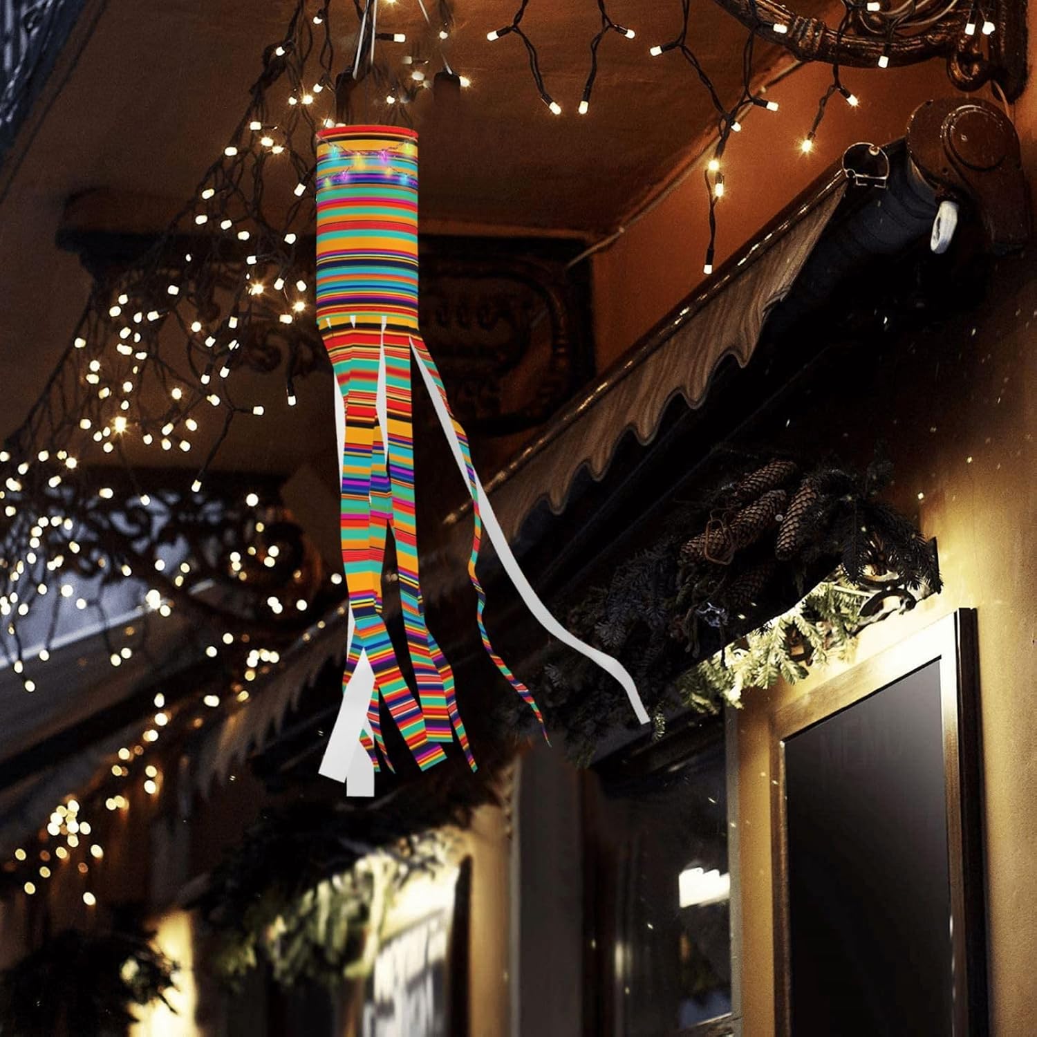 Realizzato in poliestere leggero e ventilato: progettato per asciugare rapidamente e volare senza sforzo al vento per una visualizzazione vivace. Design a nove code: ogni manica a vento presenta nove code che ballano con grazia al vento, migliorando il fascino delle tue decorazioni all'aperto. Adatto per diverse occasioni: perfetto per vestire il giardino, la strada, il parco giochi o l'apertura di eventi durante Halloween, Natale e altre stagioni festive. Costruzione semplice degli accessori: viene fornito con un'asta di supporto integrata e un connettore di tipo A, garantendo una facile installazione e stabilità. La corda in nylon lunga 39,9 cm con tre lati consente un posizionamento versatile. Due versioni disponibili: scegli tra le nostre calze a vento con una stringa di luce a LED colorata per un display notturno scintillante, o la versione non illuminata per la decorazione diurna.