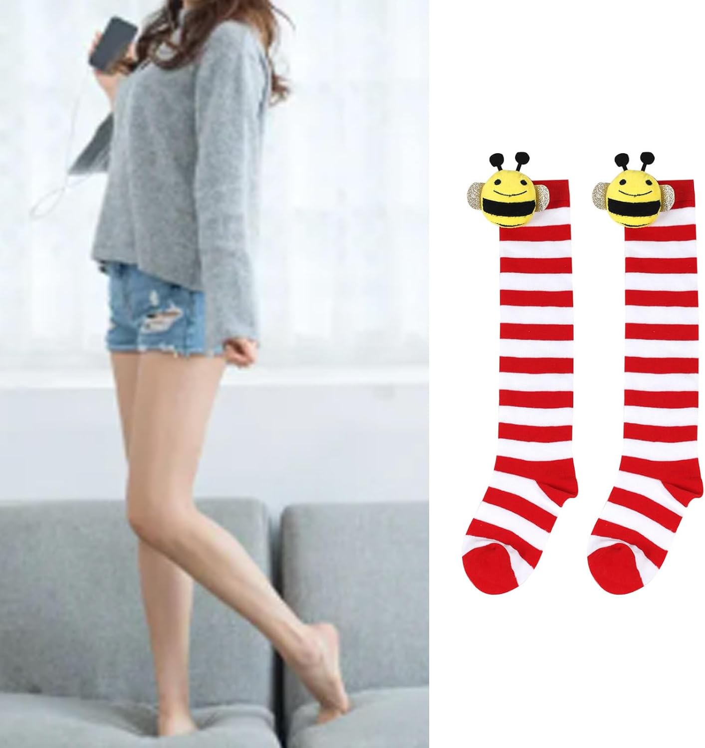 Calze alte a righe sopra il ginocchio, calze lunghe per cosplay, Halloween, feste Caratteristiche: fibre acriliche, buon elastico può essere regolato facilmente la lunghezza sopra il ginocchio, calzini morbidi e confortevoli al ginocchio di Halloween che non danneggiano la pelle. Si abbinano facilmente, le calze lunghe a righe sono facili da indossare e abbinare, aggiungendo più colori per il tuo abbigliamento quotidiano o costume speciale, abbinando vari vestiti come preferisci Disegni, calze a righe sopra il ginocchio con disegni di bambole api, migliorano l'atmosfera festiva. Meraviglioso regalo, dolce amico familiare o per te stesso. Ci sono diversi opzionali, puoi seguirti come o acquistare insieme. Specifiche tecniche: Fibre Acriliche 1 2 3 4 5 6 7 8 9 La confezione include: 1 paio di calze alte a righe con cartoni animati. Nota: Si prega di considerare un margine di errore di 1-2 cm dovuto alla misurazione manuale. A causa della differenza tra i diversi monitor, l'immagine potrebbe non riflettere esattamente il colore dell'articolo.