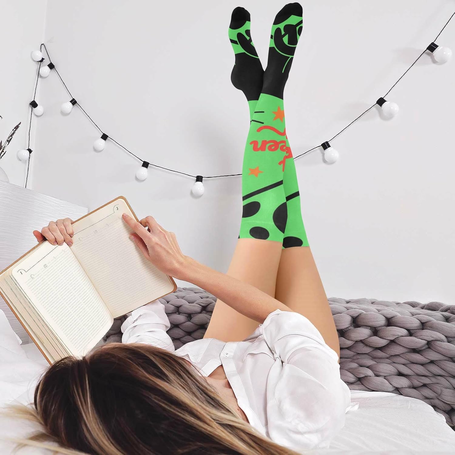 Dimensioni: circa 59 cm (23 pollici) dalla punta verso l'alto e 10 cm (4 pollici) di larghezza. Con sufficiente elasticità ed elasticità, il massimo di un calzino alla coscia può essere allungato fino a circa 85 cm. I calzini sopra il ginocchio da donna sono adatti per persone di 1,5 metri e oltre. Materiale: 93% nylon, 7% spandex. Queste calze da donna al ginocchio hanno una consistenza altamente elastica e sono morbide al tatto per un maggiore comfort. La superficie liscia e traspirante consente un'intera giornata di usura. Da indossare in diversi modi: le calze sopra il ginocchio da donna possono essere utilizzate come calze alla coscia, possono anche essere piegate in calze sopra il ginocchio e possono essere utilizzate come calze al ginocchio. Diversi modi di vestirsi, stili diversi! Caratteristiche: Le nostre calze sopra il ginocchio da donna sono leggere e di lunga durata, flessibili e traspiranti, morbide e confortevoli, secondo diversi stili di design, possono essere applicate per uscire, feste, casa, sport e altre occasioni, possono essere abbinate a una varietà di stili di usura. Design sopra il ginocchio: il design sopra il ginocchio dei calzini da donna non aggiunge eleganza e sensualità, ma modifica anche la forma delle gambe in una certa misura. Sia abbinato a una gonna corta o pantaloncini, può mostrare fascino affascinante.
