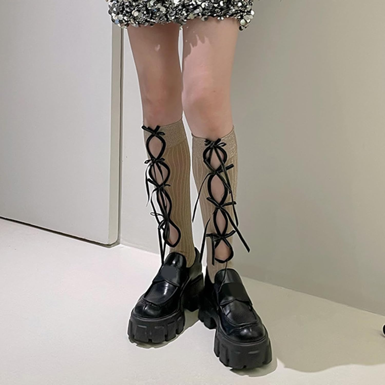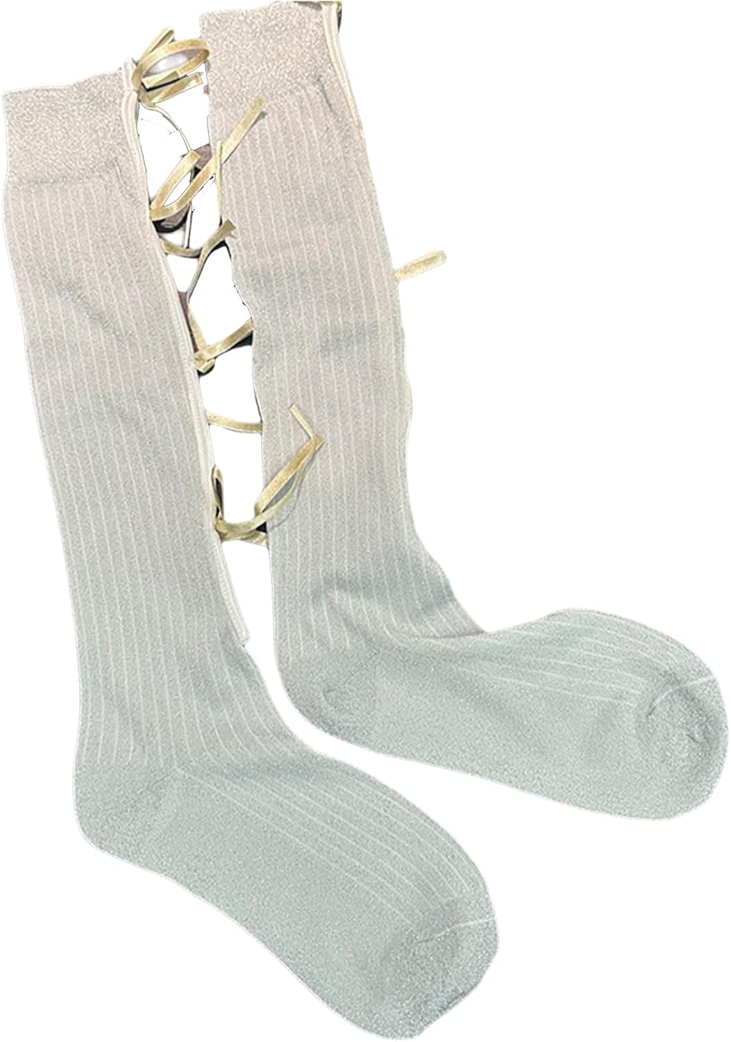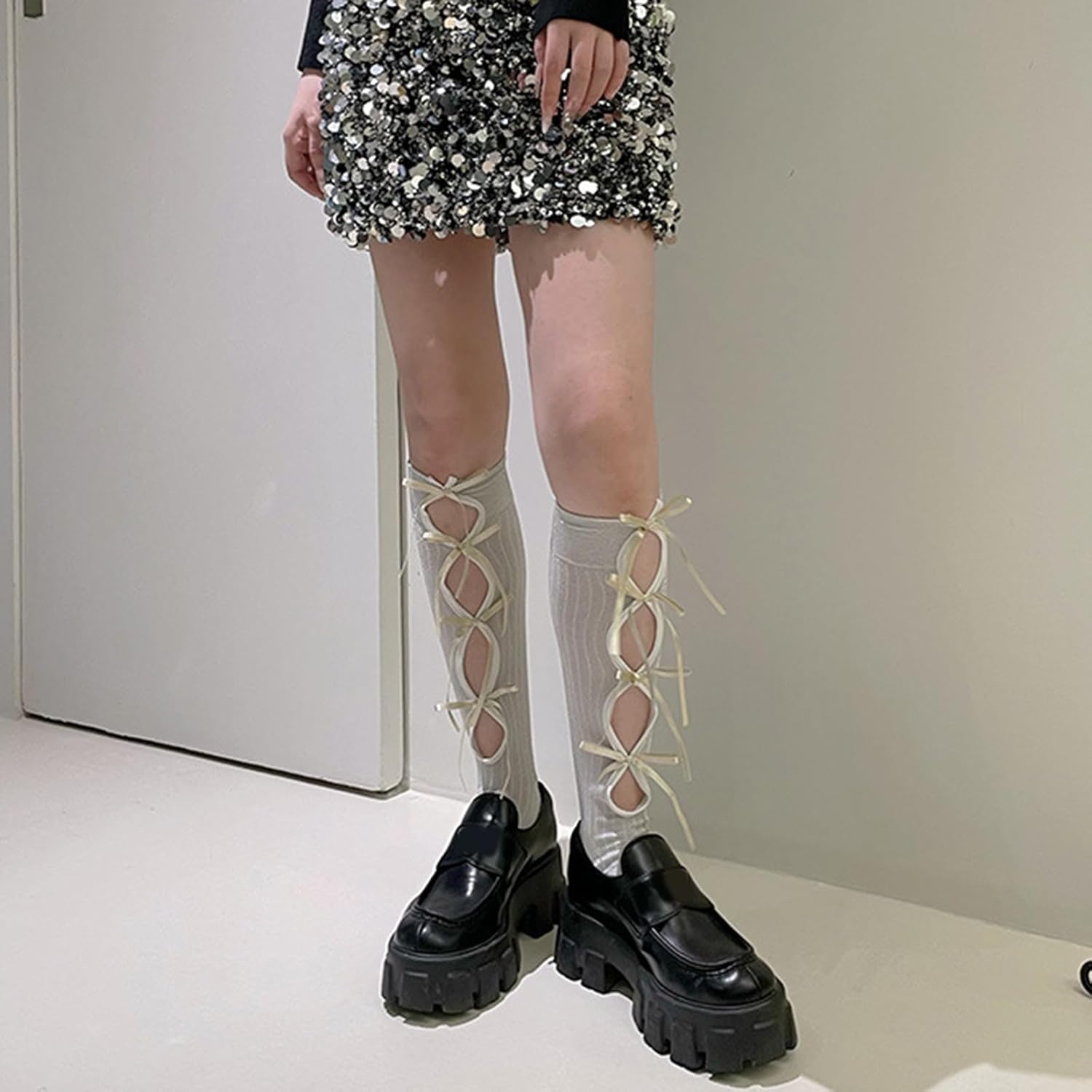 Calze da donna con fiocco cavo al ginocchio calzini divertenti romanzo atletico calzini scintillanti tubo calza Halloween Cosplay costume scintillante ginocchio alto, bianco, Taglia unica