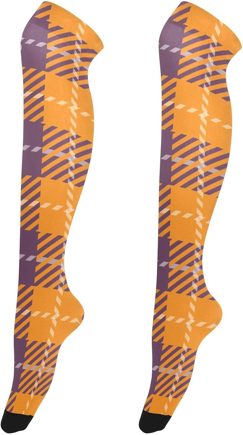Calze da donna sopra il ginocchio, a righe, per Halloween, scaldamuscoli carini Contenuto della confezione: 1 paio di calze a righe. Si prega di notare che lievi differenze di colore potrebbero essere dovute alla luce e allo schermo.