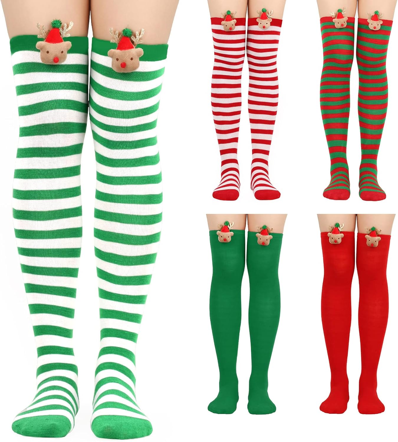 Calze lunghe a righe da donna con renna in peluche a forma di renna sopra il ginocchio calze alte per costumi di Natale accessori Caratteristiche: e Design classico a righe, simpatica renna per la decorazione di bambole, piena di atmosfera festiva. Facile da indossare e abbinare, aggiungendo più colori per il tuo abbigliamento quotidiano o costume speciale. Adatto per Natale, feste di Halloween, feste cosplay, balli studenteschi, qualsiasi festival o vita quotidiana. poliestere, morbido, traspirante e non facile da scivolare, comodo da indossare Vestibilità: elastico ed elastico, taglia adatta per la maggior parte delle donne e delle ragazze. Specifiche tecniche: poliestere. Lunghezza: circa 63 cm. Colore opzionale: rosso, verde, A, B, C Quantità: 1 paio (2 pezzi). La confezione include: 1 paio (2 pezzi) di calzini lunghi (senza imballaggio al dettaglio). Nota: 1. Le taglie asiatiche sono 1 o 2 taglie più piccole rispetto a quelle europee. 2. Si prega di notare che lavare a bassa temperatura, non scolorire e mettere sotto il sole per un lungo periodo di tempo. 3. A causa dei diversi metodi di misurazione, si prega di considerare una differenza di 1-3 cm per cm rispetto agli articoli. 4. A causa delle diverse impostazioni dei monitor e delle luci della luce, l'immagine potrebbe non rispecchiare il colore reale dell'articolo. Grazie per la comprensione