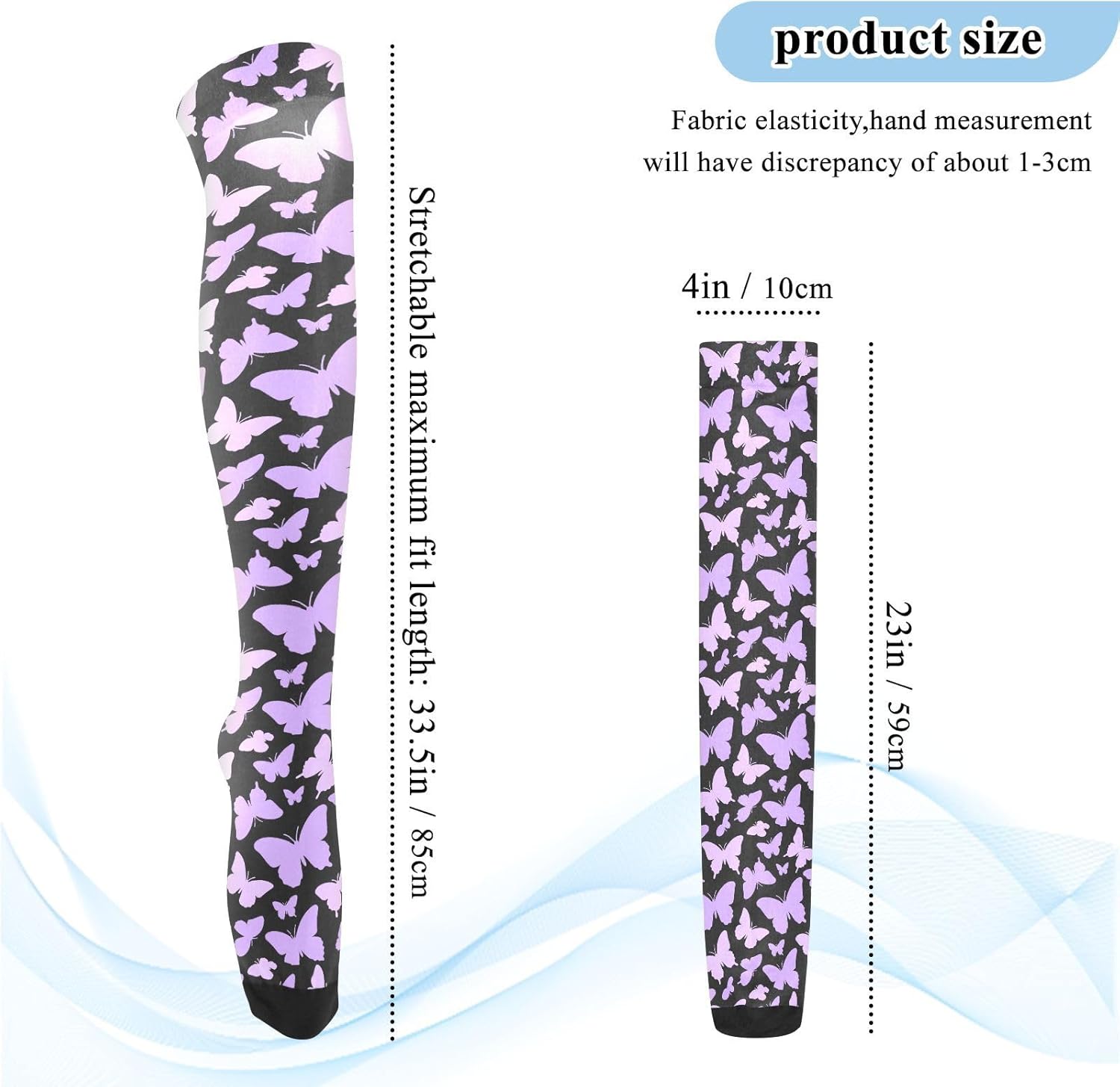 Dimensioni: circa 59 cm (23 pollici) dalla punta verso l'alto e 10 cm (4 pollici) di larghezza. Con sufficiente elasticità ed elasticità, il massimo di un calzino alla coscia può essere allungato fino a circa 85 cm. I calzini sopra il ginocchio sono adatti per persone di 1,5 metri e oltre. Materiale di qualità: i nostri calzini da donna sono realizzati in 93% nylon e 7% spandex, morbidi e confortevoli, sicuri per la pelle e possono essere indossati a lungo; le calze sono splendidamente realizzate e si adattano meglio alle gambe. Versatile: la nostra calza a ginocchio alto è adatta per la maggior parte delle attività sportive e per l'uso quotidiano. Possono essere utilizzate come calze per cosce, polpacci e calzini per equipaggio. Il buon accessorio da abbinare alle tue scarpe preferite con la maggior parte del tuo abbigliamento quotidiano. Eleganti, chic e confortevoli: i nostri calzini da baseball sono conformi alle gambe mantenendo la pelle comoda e fresca per tutto il giorno. Abbinali a scarpe da ginnastica, décolleté, tacchi o stivali alti fino alla coscia per un look lusinghiero e sexy. Vestito per tutte le stagioni, civettuolo ma elegante. Design sopra il ginocchio: design sopra il ginocchio: il design sopra il ginocchio dei calzini sopra il ginocchio non solo aggiunge eleganza e sensualità, ma modifica anche la forma delle gambe in una certa misura. Sia abbinato a una gonna corta o pantaloncini, può mostrare fascino affascinante.