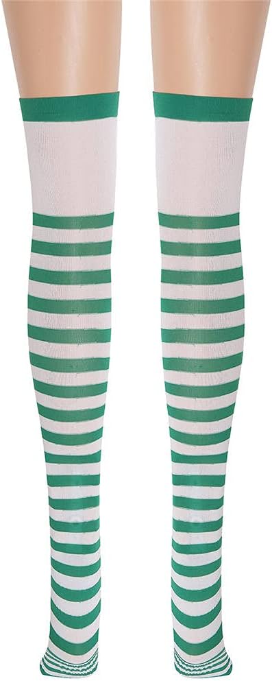 Calze lunghe per Halloween sopra il ginocchio a strisce coscia alte calze per Halloween Natale costume accessori verde
