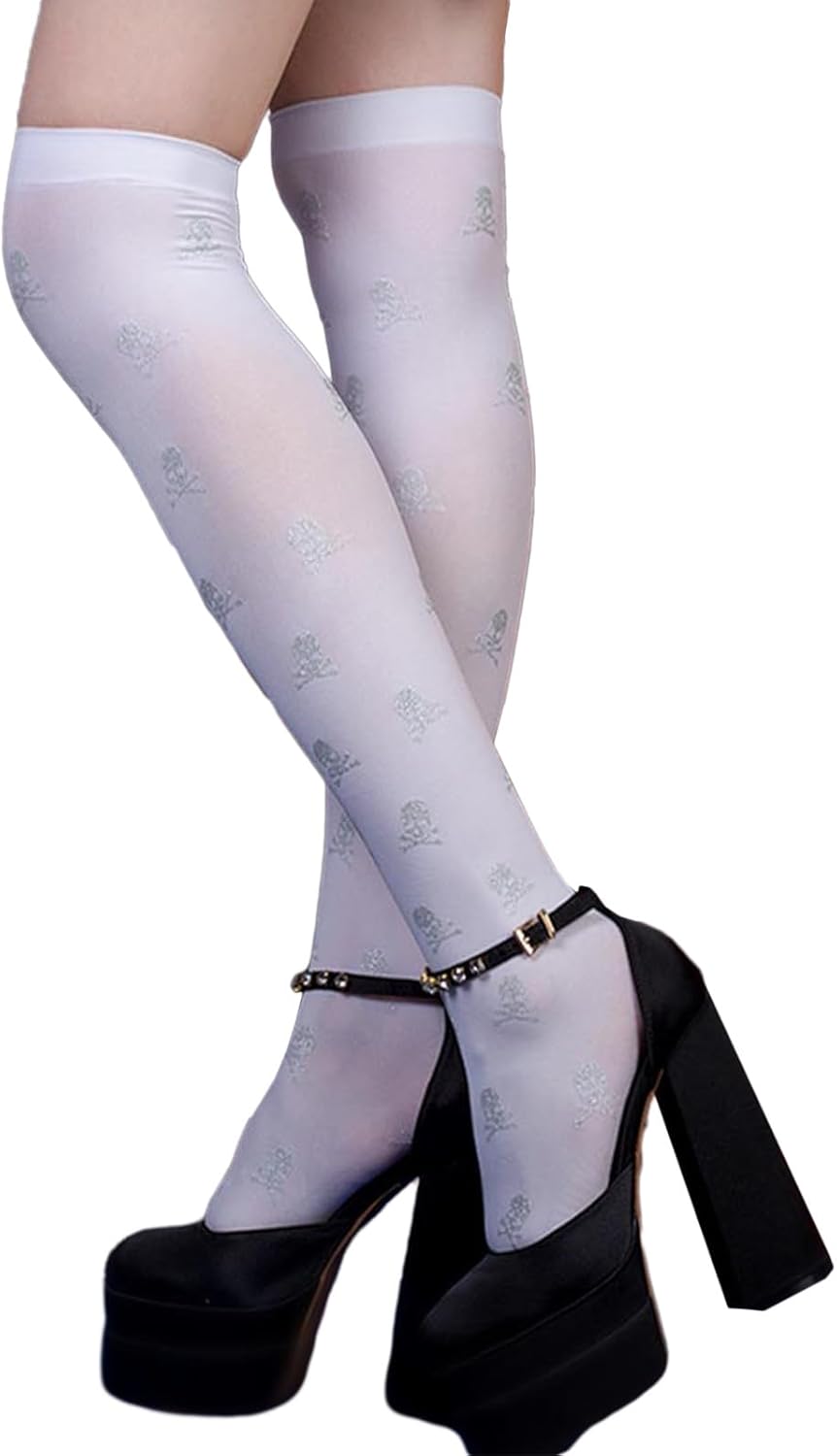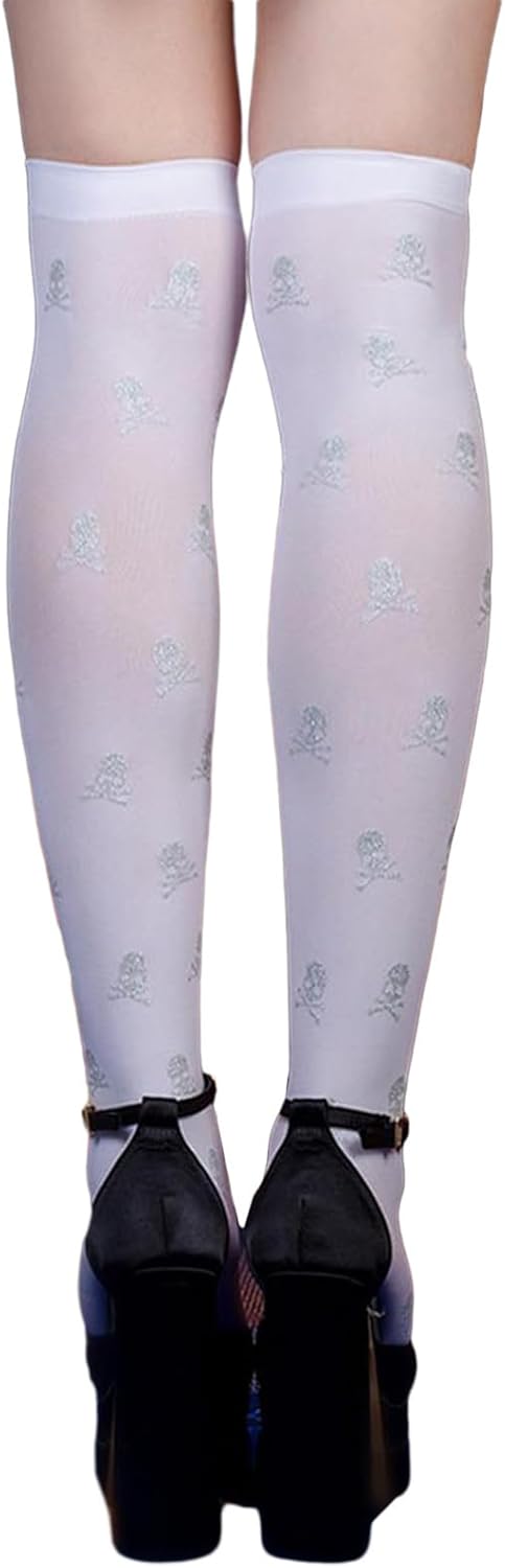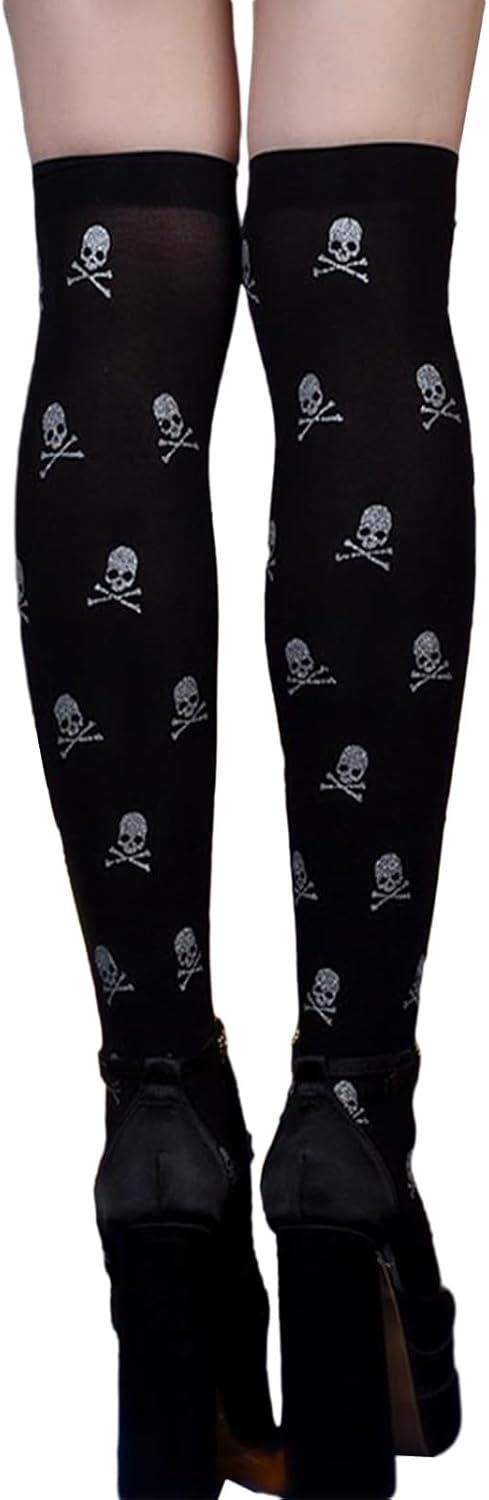 Morbide, queste calze sono in fibra di nylon, sono elastiche, morbide e comode da maneggiare, puoi goderti diverse esperienze di utilizzo con le calze al ginocchio. Disegni del modello, teschio stampato sulle calze, aggiungendo il festival Ampie applicazioni, le calze alte alla coscia sono adatte per Halloween, Natale, festa della mamma, feste cosplay, spettacoli teatrali, buone aggiunte al tuo guardaroba e ti rendono più bella. Bello per tua madre, sorella, fidanzata Facile da abbinare, le calze sopra il ginocchio sono facili da abbinare a diversi, gonne, abiti da vacanza o altri stili, un bel da indossare tutti i giorni, possono essere allungati per adattarsi alla maggior parte delle donne e delle ragazze :Nylon