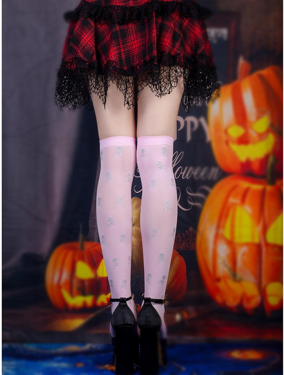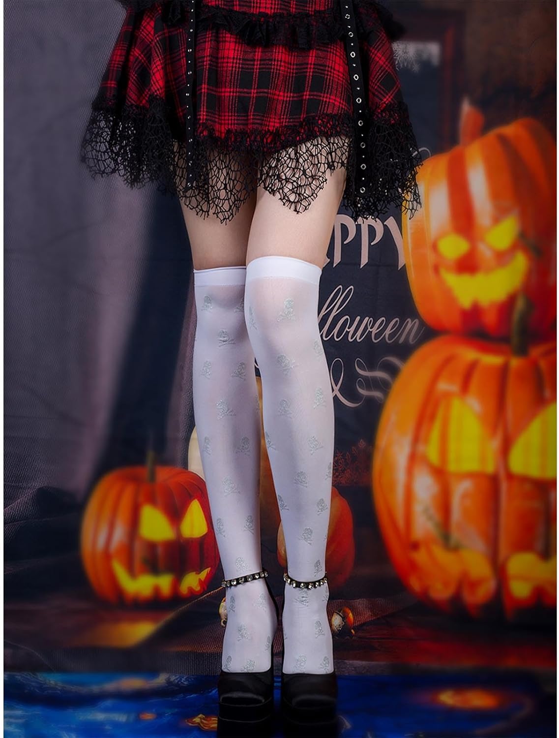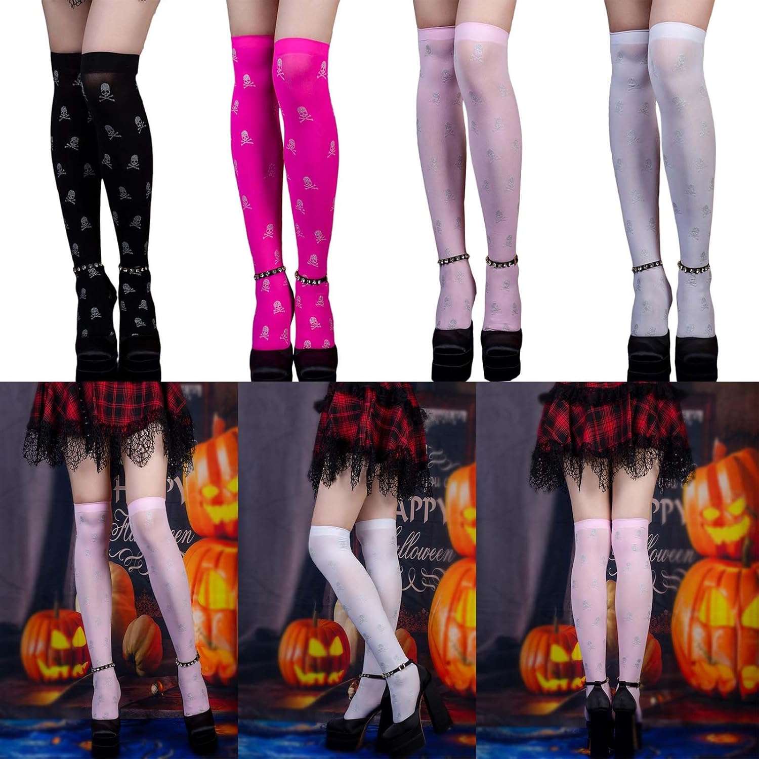Morbide, queste calze sono in fibra di nylon, sono elastiche, morbide e comode da maneggiare, puoi goderti diverse esperienze di utilizzo con le calze al ginocchio. Disegni del modello, teschio stampato sulle calze, aggiungendo il festival Ampie applicazioni, le calze alte alla coscia sono adatte per Halloween, Natale, festa della mamma, feste cosplay, spettacoli teatrali, buone aggiunte al tuo guardaroba e ti rendono più bella. Bello per tua madre, sorella, fidanzata Facile da abbinare, le calze sopra il ginocchio sono facili da abbinare a diversi, gonne, abiti da vacanza o altri stili, un bel da indossare tutti i giorni, possono essere allungati per adattarsi alla maggior parte delle donne e delle ragazze :Nylon