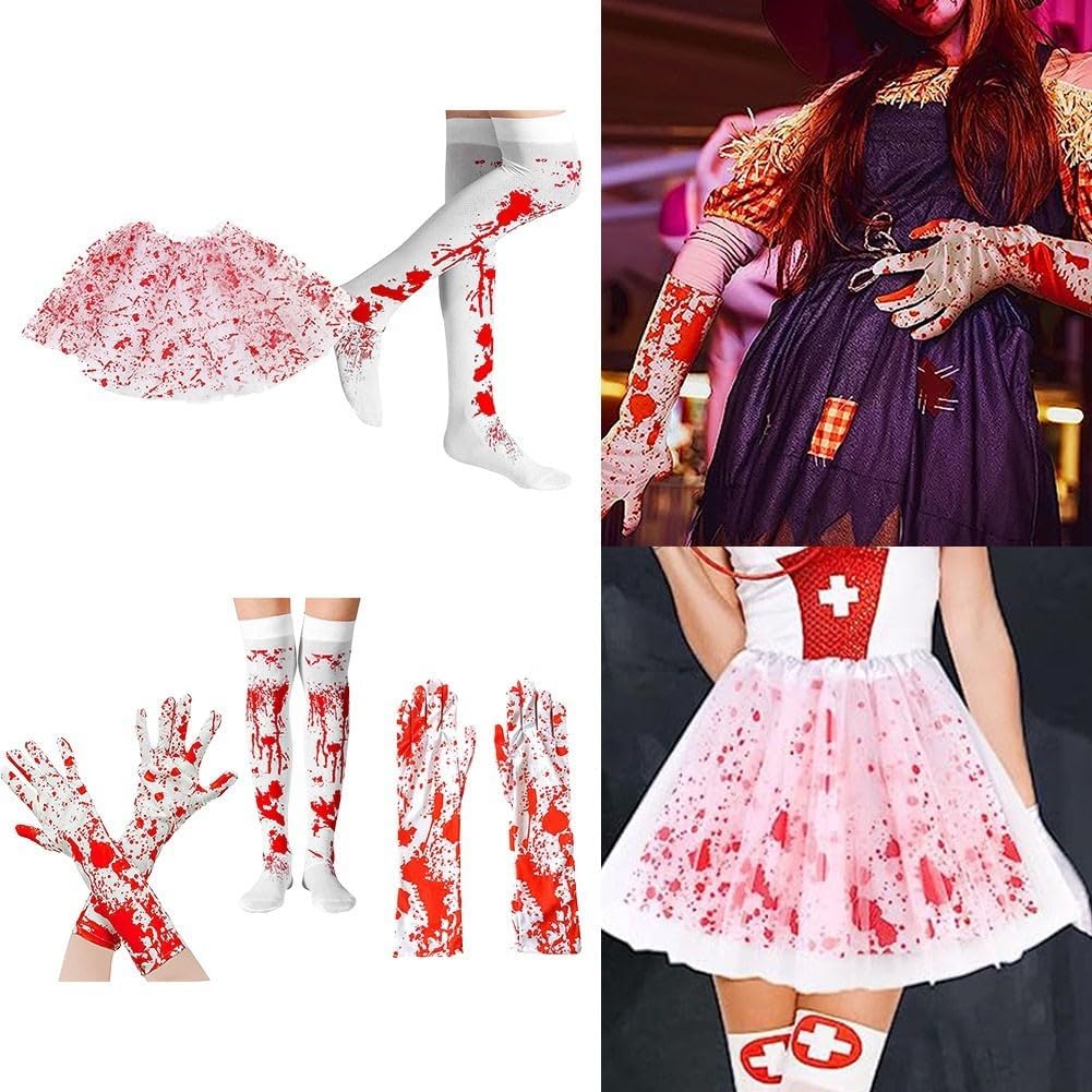 Caratteristiche: * Halloween Cosplay Costume Socks: queste calze alte sono perfette per Halloween cosplay, con un design rosso per un effetto realistico e terrificante. * Accessorio per Halloween costume in maschera: completa il tuo Halloween per il vestito con questi guanti, calze e abito in chiffon bianco, progettato per migliorare il tuo costume. * Comodi e traspiranti da indossare: realizzati in tessuto, questi calzini sono comodi e traspiranti, una vestibilità comoda durante le feste. * Tipo: sopra il ginocchio calze, guanti e abito in chiffon bianco: questo set comprende calze sopra il ginocchio, guanti e un abito di chiffon bianco, fornendo un completo cosplay di Halloween. Specifiche tecniche: Nome di parte: Halloween Cosplay Costume set Materiale: tessuto. Taglia: 1 taglia unica. Colore: bianco. Contenuto della confezione: Guanti rossi di Halloween* 1 paio/calzini rossi di Halloween * 1 paio/guanti di Halloween 1 paio Set/gonna rossa * 1
