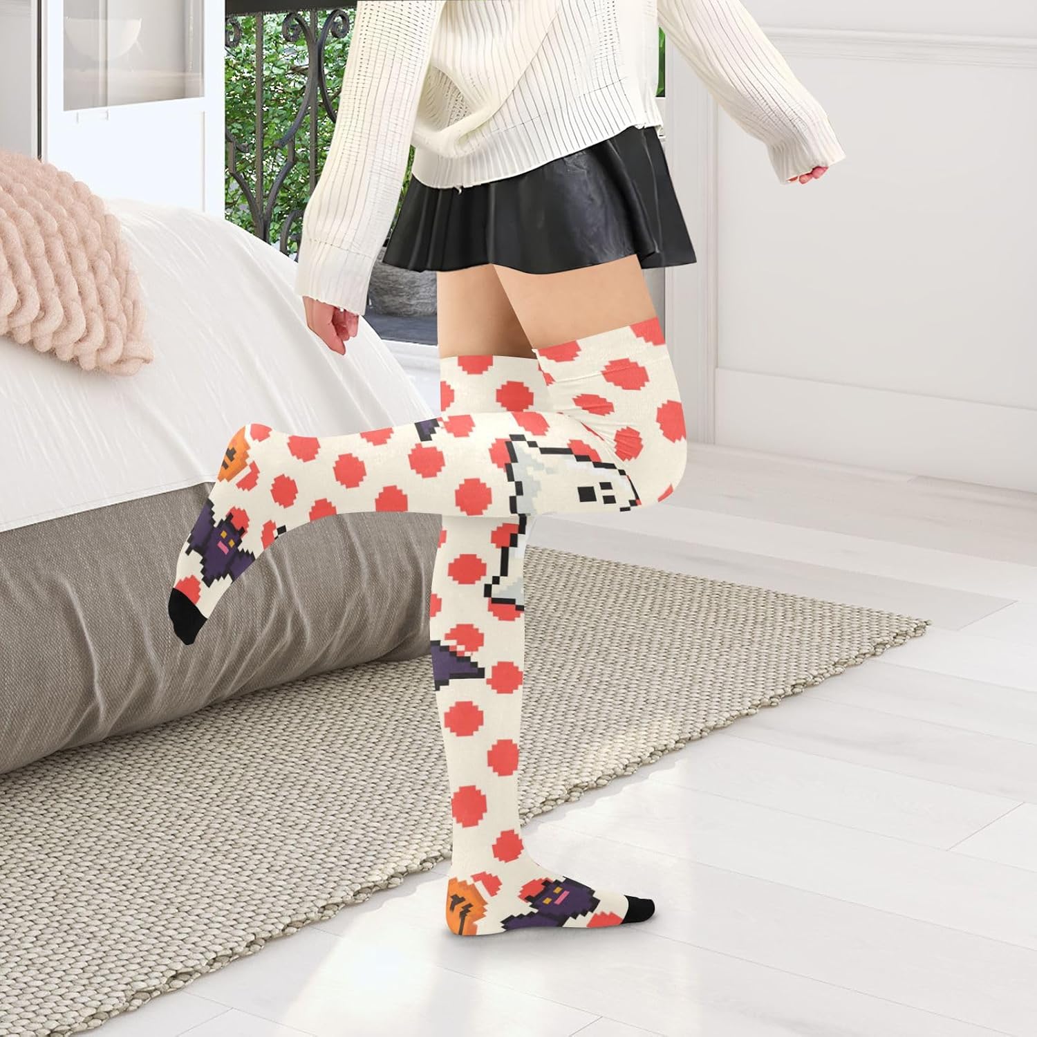 Buona elasticità: i nostri calzini sopra il ginocchio da donna sono elastici e possono rimanere in posizione per un giorno. La dimensione piatta è di 10,2 x 58,4 cm, adatta per 1,5 metri (59 pollici) e oltre. Traspirante e assorbente, può coprire polpacci e caviglie durante l'esercizio fisico. Materiale di qualità: i nostri calzini lunghi sopra il ginocchio da donna sono realizzati in 93% nylon e 7% spandex, morbidi e confortevoli, sicuri per la pelle e possono essere indossati a lungo; le calze sono splendidamente realizzate e si adattano meglio alle gambe. Da indossare in diversi modi: le calze da donna alte al ginocchio possono essere utilizzate come calze alla coscia, possono anche essere piegate in calze sopra il ginocchio e possono essere utilizzate come calze al ginocchio. Diversi modi di vestirsi, stili diversi! Caratteristiche: I nostri calzini da donna sono leggeri e di lunga durata, flessibili e traspiranti, morbidi e confortevoli, secondo diversi stili di design, possono essere applicati per uscire, feste, casa, sport e altre occasioni, possono essere abbinati a una varietà di stili di usura. Design sopra il ginocchio: il design sopra il ginocchio dei calzini a tubo alto da donna non porta eleganza e sensualità, ma regola anche la forma delle gambe in una certa misura. Sia abbinato a una gonna corta o pantaloncini, può mostrare fascino incantevole.