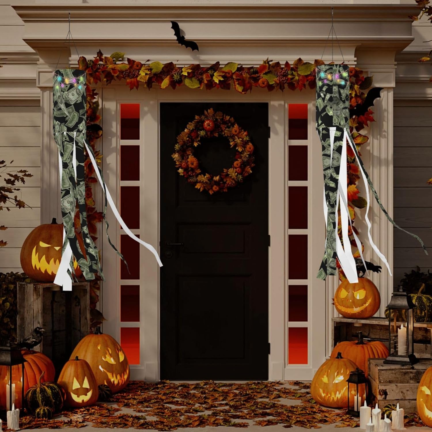 Realizzate con materiale leggero e arioso: le nostre calze a vento sono realizzate in poliestere leggero e svolazzante, progettate per un'asciugatura rapida e un volo ventilato, creando uno splendido display dinamico con le loro nove code. Ideali per tutte le feste: queste calze a vento sono perfette per Halloween, Natale e altre vacanze. Aggiungeranno un fascino accattivante a giardini, strade, parchi giochi, aperture di eventi e altro ancora. Struttura intelligente: misura 102 cm di altezza e 15,4 cm di larghezza, queste calze a vento hanno un'asta di supporto integrata e un connettore di tipo A sulla corda di nylon a tre lati lunga 40 cm per appenderlo in modo sicuro e facile. Illuminazione opzionale: scegli tra la nostra versione con una deliziosa stringa di luce a LED colorata per uno spettacolo notturno scintillante o la versione non illuminata per un elegante display diurno. Istruzioni per la cura: per mantenere il loro aspetto vivace, queste calze a vento devono essere lavate a mano e asciugate all'aria naturalmente. Si sconsiglia il lavaggio in lavatrice e la candeggina.