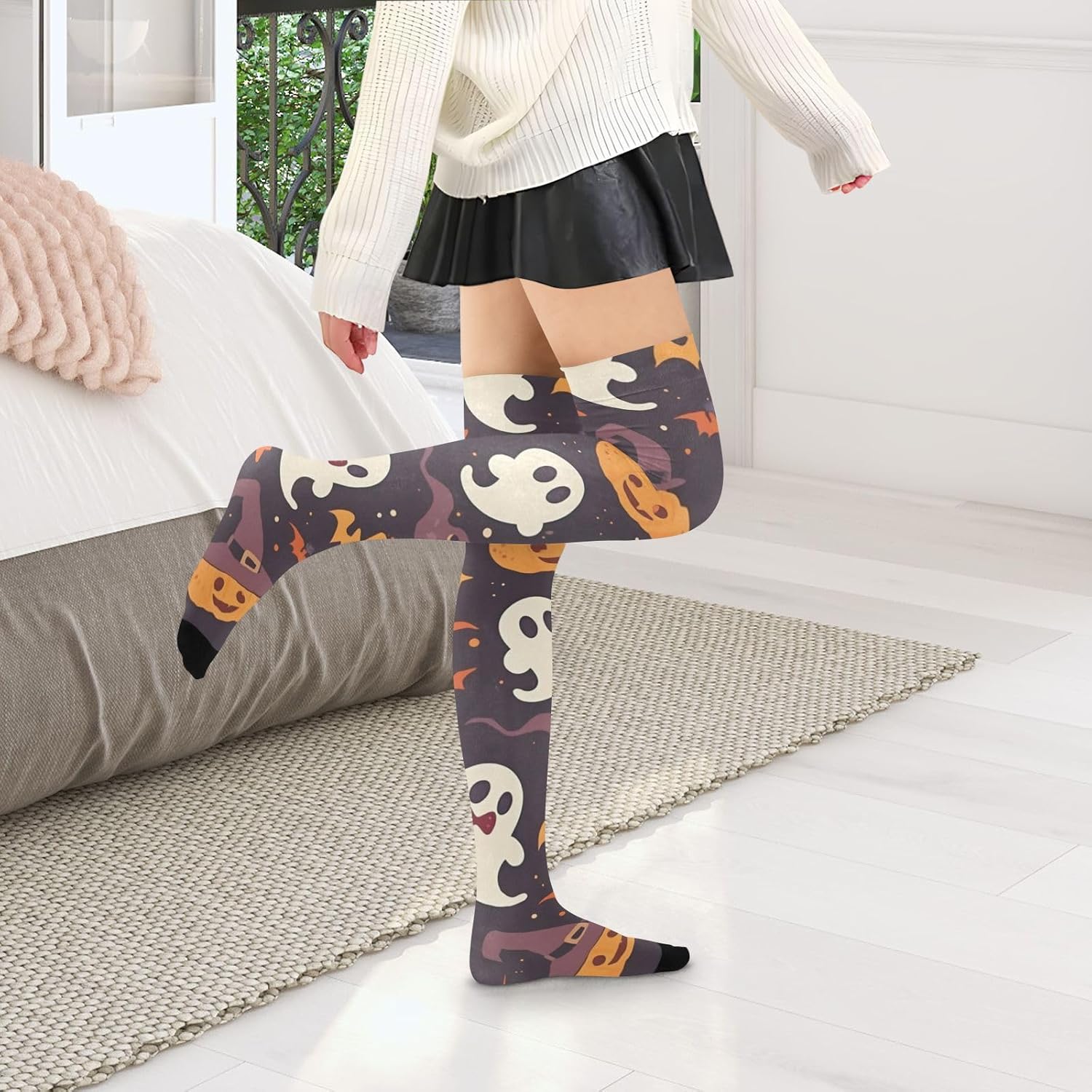 Buona elasticità: i nostri calzini sopra il ginocchio da donna sono elastici e possono rimanere in posizione per un giorno. La dimensione piatta è di 10,2 x 58,4 cm, adatta per 1,5 metri (59 pollici) e oltre. Traspirante e assorbente, può coprire polpacci e caviglie durante l'esercizio fisico. Materiale: 93% nylon, 7% spandex. Questi calzini lunghi da donna hanno una consistenza altamente elastica e sono morbidi al tatto per un maggiore comfort. La superficie liscia e traspirante consente un'intera giornata di usura. Un must have nel guardaroba di ogni donna: questo è un accessorio elegante per la donna avventurosa e multi-tasking. Questi eleganti pezzi si estendono dal ginocchio al ginocchio e fino al centro della coscia. È per vestirsi casualmente, formalmente, per lavoro, matrimoni, feste, cene e altro ancora. È altrettanto elegante in gonne, abiti o pantaloncini. Caratteristiche: Questi calzini lunghi da donna hanno un colore e un design classici, facili da abbinare a una varietà di vestiti, come minigonne, pantaloncini, stivali, scarpe di tela, cappotti lunghi, ecc. Non è adatto per l'uso quotidiano in casa, ma anche per sport, cosplay, sonno, spettacoli teatrali, foto artistiche, ecc. Design sopra il ginocchio: il design sopra il ginocchio delle calze da donna alte al ginocchio non aggiunge eleganza e sensualità, ma modifica anche la forma delle gambe in una certa misura. Sia abbinato a una gonna corta o pantaloncini, può mostrare fascino affascinante.