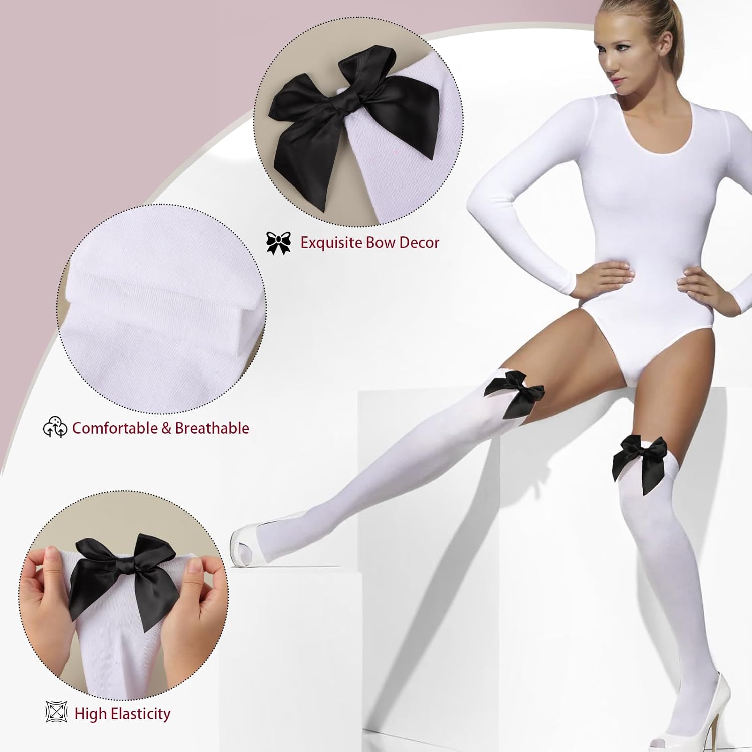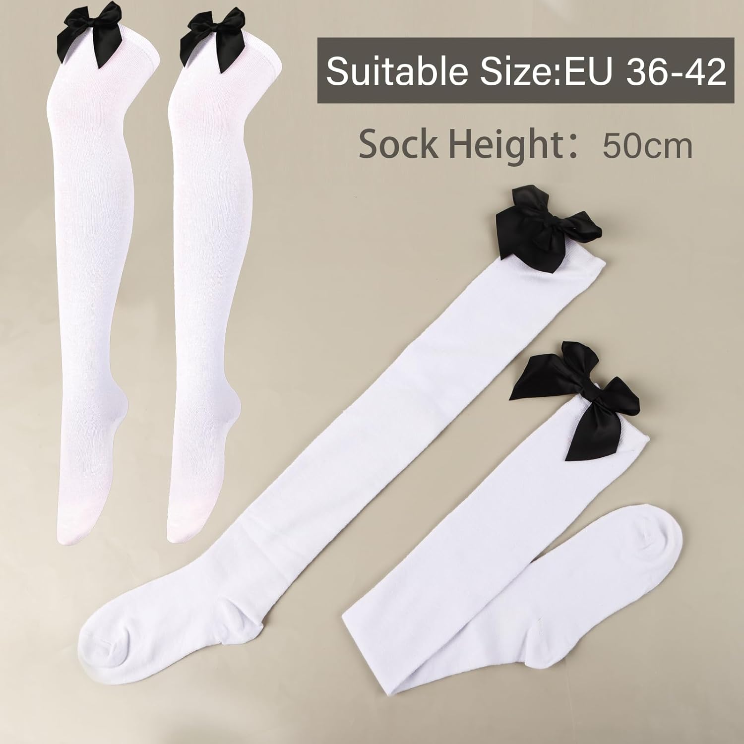 【Confezione】: Un paio di calzini da donna con fiocco per festa Halloween Carnevale. 【Dimensione】: Vestibilità in taglia unica dal 36 al 42 di scarpa. 【Materiale】: Calze halloween realizzate in poliestere, comodi e morbidi da indossare, traspiranti ed elastici. 【Design】: Calze sorpra il ginocchio decorati con fiocco bello, perfetto da indossare per rendere il tuo look in pieno di stile unico e per rendere speciale il vostro party nella notte di halloween o carnevale. 【Occasione】: Bellissimo calzino con fiocco per costume durante Halloween, Carnevale, Horror Night, party a tema, spettacoli, recite, cosplay, ecc.