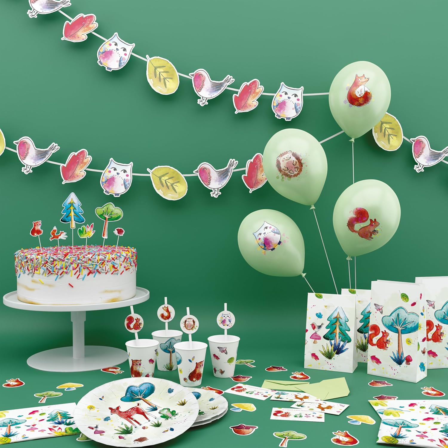 Tema incantato: immergi i bambini in un mondo magico con gli animali del bosco che portano gioia e magia alla festa. Ambiente naturale: questi accessori decorativi creano un'atmosfera calda e amichevole, ispirata alla bellezza della natura. Elementi coordinati: tutti gli elementi sono progettati per adattarsi perfettamente, fornendo un'esperienza visiva coerente e coinvolgente. Facile da Usare: Ideale per trasformare velocemente e facilmente qualsiasi spazio in una foresta incantata. Tutti gli articoli rispettano le normative europee vigenti, garantendo così sicurezza e qualità.