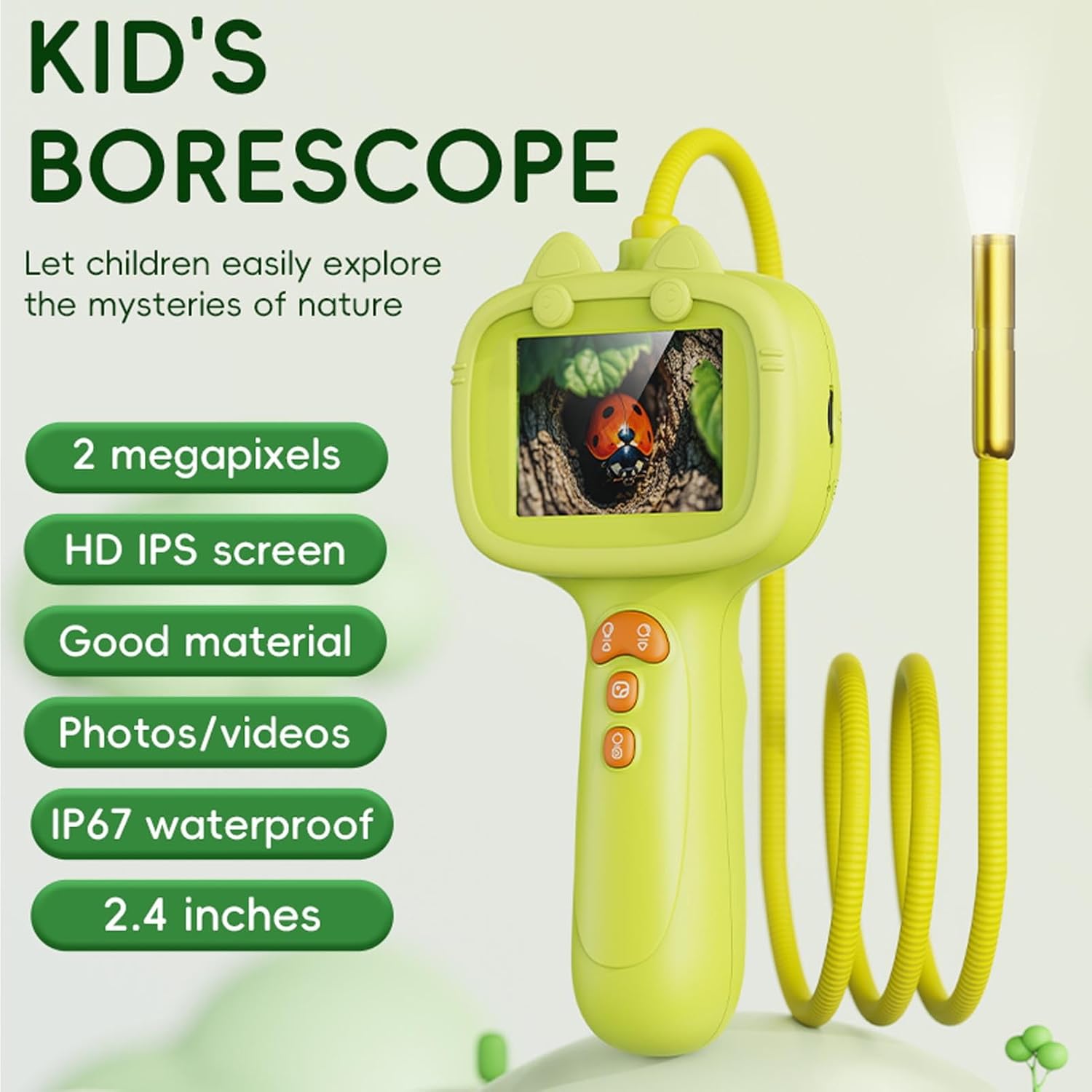 [Exploration per tutte le stagioni] Con una lente e un tubo impermeabile IP67, questo giocattolo della fotocamera può gestire gli schizzi stagni o giorni di pioggia, rendendolo ideale per le attività all'aperto. [Design a misura di bambino] Progettato specificamente per i giovani appassionati di esterni, questo giocattolo con la telecamera borescope promuove un senso di meraviglia ed esplorazione in ogni piccolo avventuriero. [Display Crystal Clear] La schermata IPS 2,4 pollici offre un'esperienza di visualizzazione ad alta definizione, perfetta per i giovani esploratori per catturare dettagli vividi con moderata luminosità. [Visibilità migliorata] dotato di una lente HD 2 MP e luci a LED regolabili 8+1, questo endoscopio garantisce una chiara visibilità giorno o notte, ispirando la curiosità negli amanti della natura. [Ampia capacità di archiviazione] Con spazio integrato per 100 foto e l'opzione per l'espansione della scheda di memoria, i bambini possono documentare le loro avventure senza sforzo.
