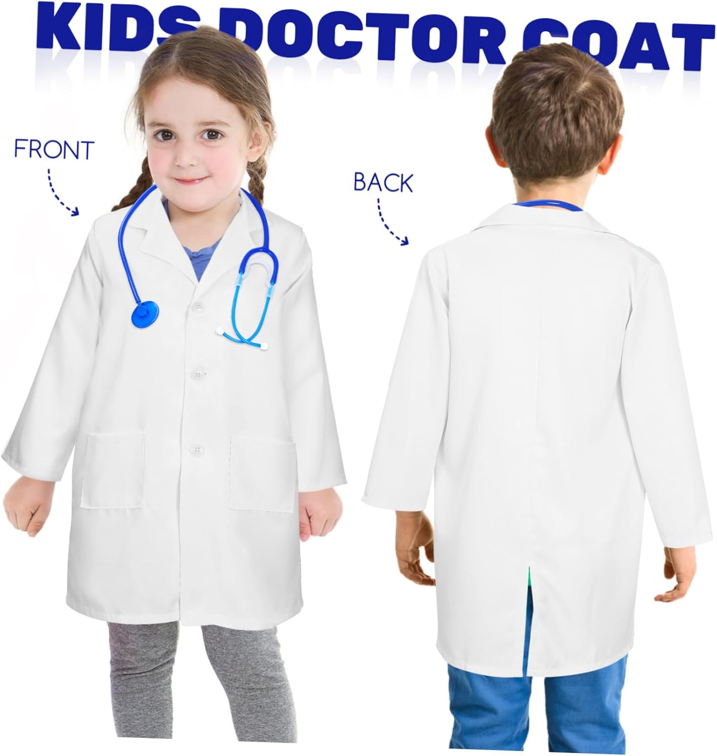 Design pratico: le numerose tasche del costume da pediatra sono progettate in modo conveniente in modo che i bambini possano riporre e accedere facilmente ai loro strumenti, al camice bianco da medico e al kit medico per bambini. Ideale per eventi: che si tratti di uno spettacolo scolastico, una festa in costume o un evento cosplay, questo costume da medico per bambini è un camice da laboratorio per bambini, camice da laboratorio per bambini da scienziato Fine artigianato: il camice da medico per bambini è caratterizzato da una lavorazione raffinata con cuciture strette che garantiscono durata e resistenza alla deformazione, camice da laboratorio per bambini, travestimento da medico per bambini Aspetto autentico: il camice non medico non medico incluso conferisce al camice da pediatra un tocco autentico e lo rende un costume realistico e divertente, camice da medico, costume per bambini Grandi tasche: questo costume da medico per bambini è dotato di grandi tasche e offre molto spazio per riporre piccoli oggetti, cappotto per ragazzi e cappotto per bambini.