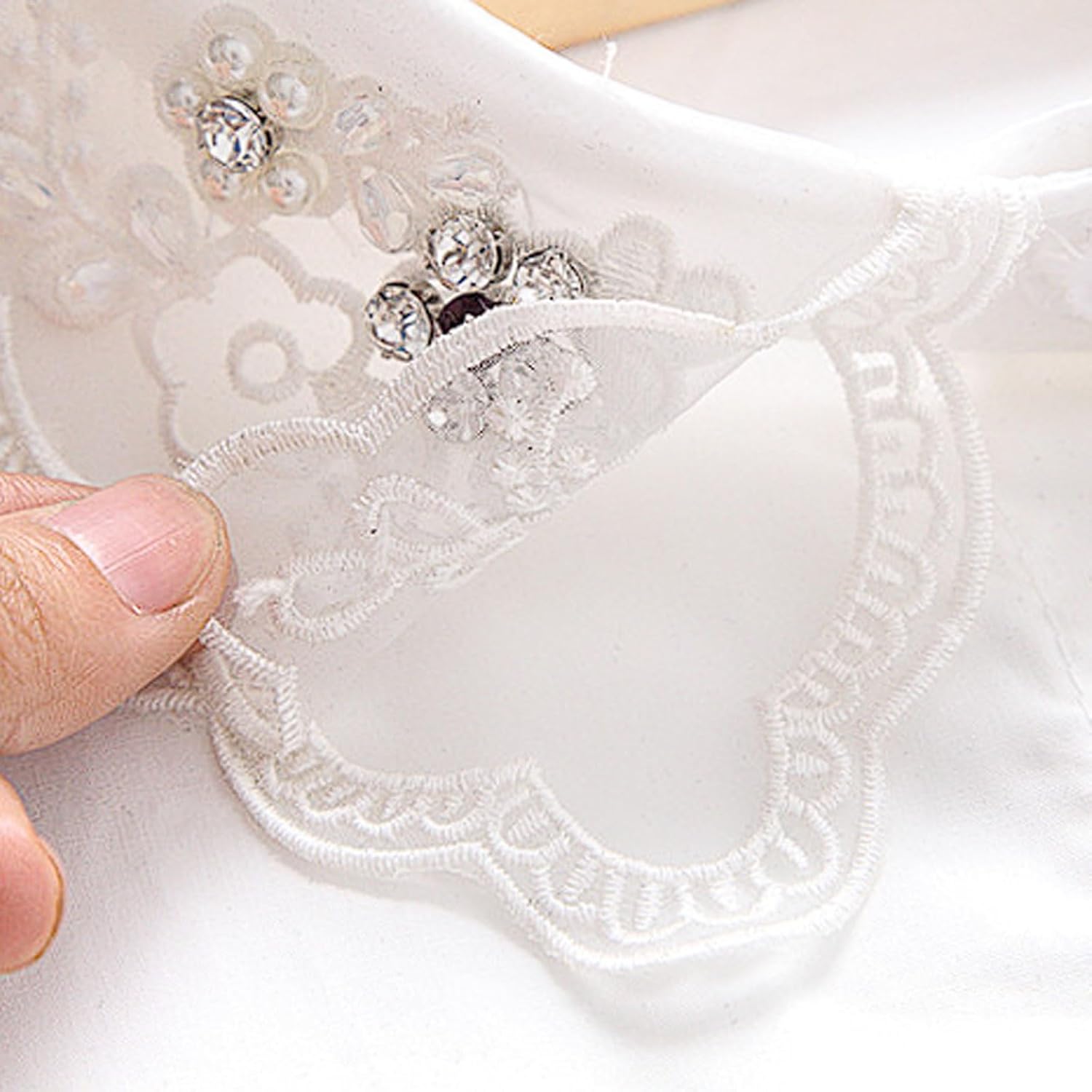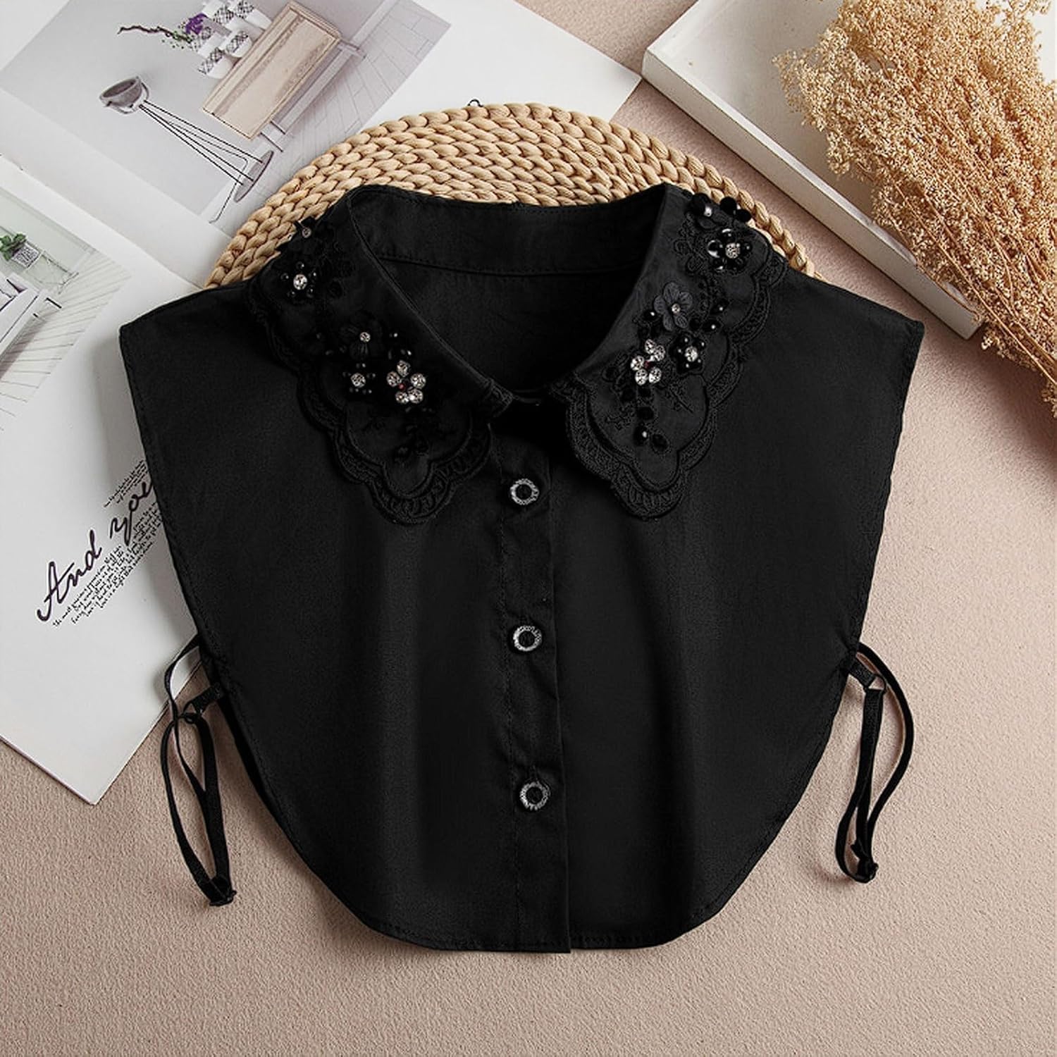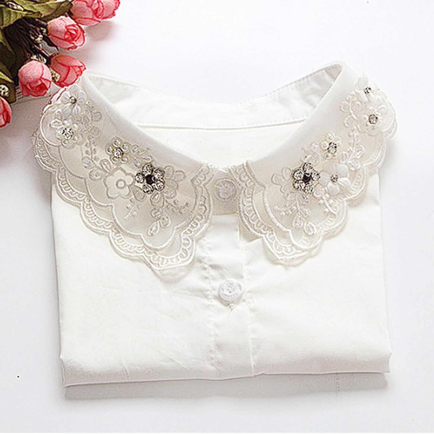 Dettagli: Materiale: miscela di poliestere (lavabile in lavatrice) Dimensioni: circonferenza del collo 43 cm | larghezza dell'apertura del colletto 8 cm | larghezza delle spalle 35 cm | lunghezza anteriore/posteriore 28 cm Colori: Nero, Bianco Stile: camicetta a maniche lunghe con colletto finto e dettagli di perline/strass Ideale per: Feste di Natale e matrimoni invernali Abbigliamento da ufficio con un tocco glamour Servizi fotografici e riunioni festive Istruzioni for la cura: Lavare in lavatrice a freddo con ciclo delicato Stendere ad asciugare Stirare a bassa temperatura (evitare di stirare direttamente su perline/strass)