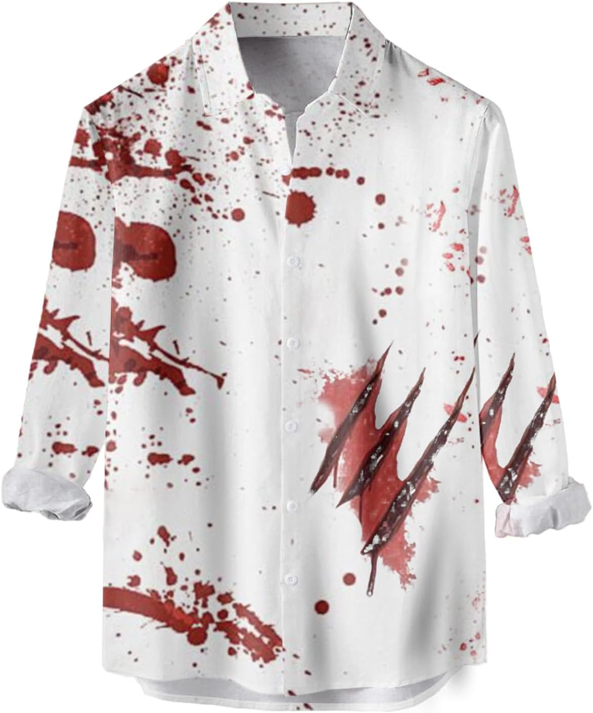 Camicie da uomo per Halloween, costume con stampa di sangue, camicia divertente a maniche lunghe, per carnevale, horror, costume da zombie sanguinoso, top slim fit, maglietta spaventosa