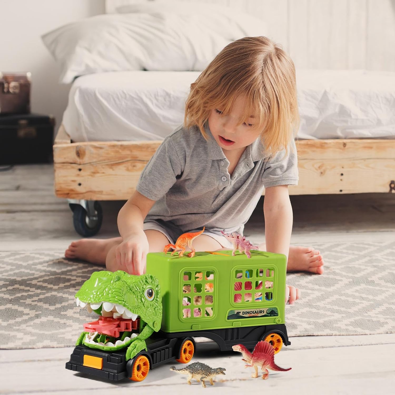 Giocattolo che crea assuefazione: Il camion dei dinosauri combina un design robusto con funzionalità per supportare lo sviluppo educativo, aiuta a sviluppare routine di pulizia e aumenta la consapevolezza di come riporre in modo sicuro durante il gioco fantasioso Soluzione pratica per riporre: il giocattolo d'azione del camion dei dinosauri con meccanismo di cattura offre un'esperienza di gioco multimodale e stimola l'immaginazione durante le avventure indoor o all'aperto attraverso l'uso intuitivo dello stoccaggio Gioco di ruolo creativo: il camion dei dinosauri stimola scenari di gioco di ruolo che migliorano le capacità cognitive e creative e promuovono anche il pensiero logico. Ideale per l'apprendimento precoce attraverso mondi fantasiosi. Soluzione portatile: con il suo design facile da trasportare e la maniglia robusta, questo camion di dinosauri incoraggia il gioco creativo sempre e ovunque. Lo scomparto per riporre i dinosauri garantisce divertimento organizzato dentro e fuori senza alcuno sforzo. Gioiosa ricreazione: il camion da trasporto dei dinosauri è un regalo perfetto per un compleanno o per le vacanze che promuove esperienze di gioco condivise, rafforza i legami emotivi in famiglia e supporta la crescita dello sviluppo dei bambini dai tre anni in su in scenari di gioco creativi.