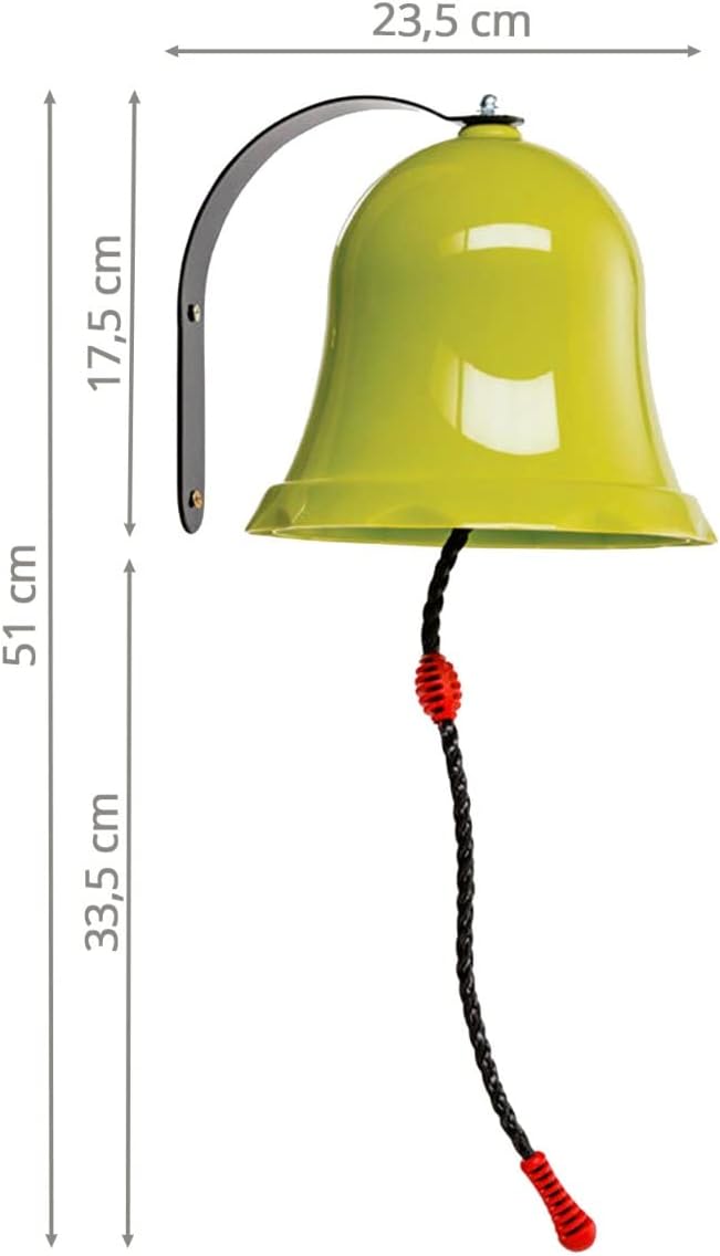 L'accessorio perfetto per la struttura di gioco del tuo bambino L'accessorio ha una campana in metallo all'interno per emettere un vero suono di campana Materiale: Campana in polipropilene di alta qualità, durevole e robusta FACILE DA INSTALLARE La campana si fissa nel legno con due viti incluse nel prodotto Dimensioni (L x P x A): 51 x 23,5 x 23,5 cm. Verde lime