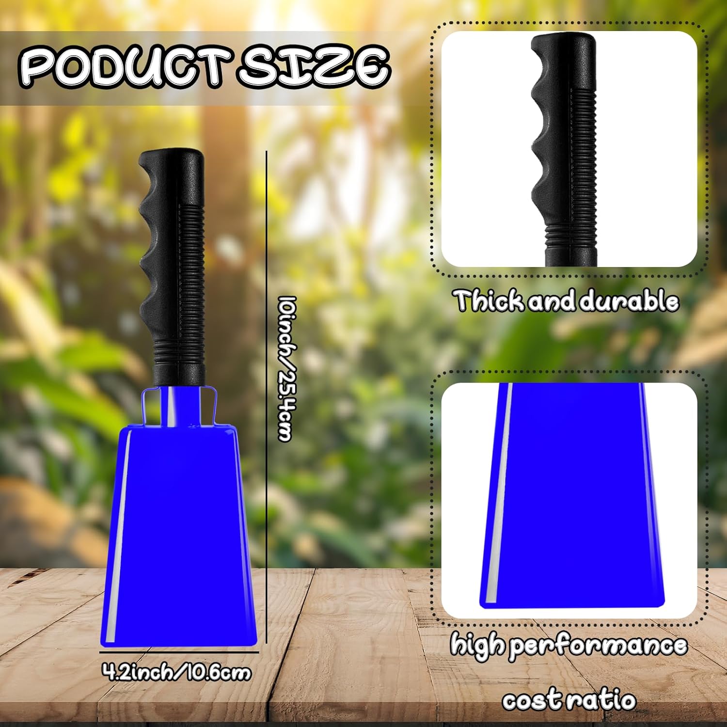 Il prodotto include e dimensioni: riceverai un campanaccio in acciaio blu, ogni campanaccio è di circa 22,9 cm, la dimensione giusta da tenere in mano e suonare il campanello per la festa a cui partecipi Design unico: questo campanaccio ha un design della maniglia che lo rende facile da tenere e la superficie liscia ti offre una buona esperienza di presa. Puoi tifare forte quando guardi la partita per aumentare l'atmosfera Facile da trasportare: questo campanaccio è leggero e ha una maniglia, che lo rende molto comodo da trasportare. Puoi esprimere la tua eccitazione sempre e ovunque. È una scelta ideale sia che tu stia partecipando a una cerimonia o a una festa in competizione Ampia applicazione: questo campanaccio rumoroso è ampiamente utilizzato in eventi sportivi, giochi di calcio, giochi di hockey, campane scolastiche, fattorie, matrimoni, concerti, riunioni di famiglia. Inoltre, la superficie liscia del campanaccio consente di decorarlo con qualsiasi fai da te