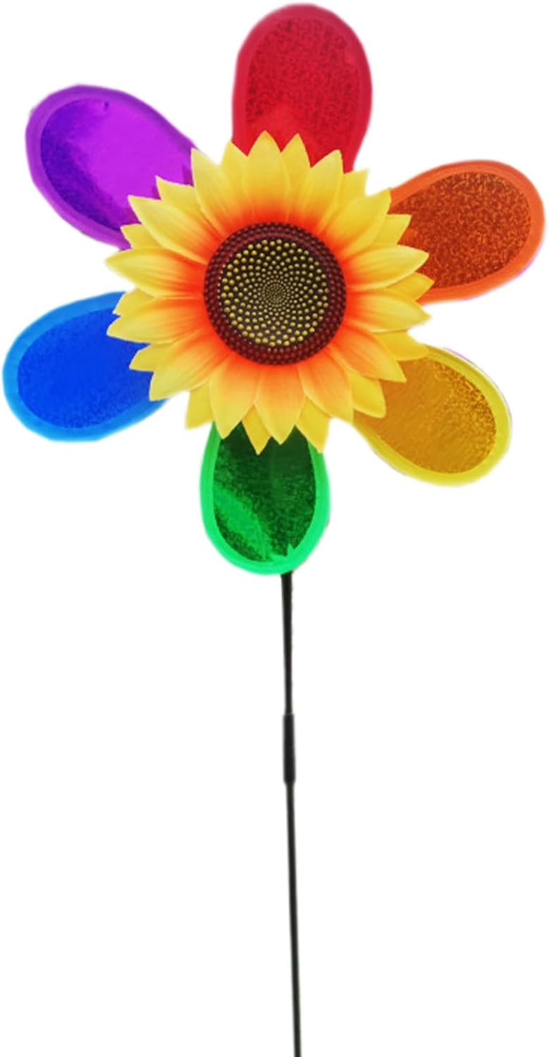 Vivace motivo a girasole: la radiosa forma a girasole aggiunge un tocco naturale alle aree esterne e interne. Come scacciapensieri decorativo gira al vento e arricchisce ogni luogo con un aspetto allegro. Versatile: la base stabile del carillon a vento girasole permette di posizionarlo su diverse superfici e arricchisce come decorazione del giardino, nell'ingresso o per l'interior design attraverso una combinazione armoniosa di calma e movimento. Gioco di colori nel vento: le sfumature di colore rotanti dei fiori arcobaleno creano un affascinante effetto di profondità e combinano in modo unico dettagli realistici con espressione artistica come attrazione in giardino. Materiale durevole: la stabile struttura in metallo resiste a tutte le condizioni atmosferiche. Non arrugginisce e mantiene il suo aspetto attraente senza sbiadire o danneggiarsi anche dopo molti anni di utilizzo all'aperto. Azionamento del vento silenzioso: cuscinetti speciali consentono movimenti rotatori delicati ad ogni tiraggio. Ruota continuamente in tutte le direzioni per un affascinante campanello a vento da esterno a 360 gradi.