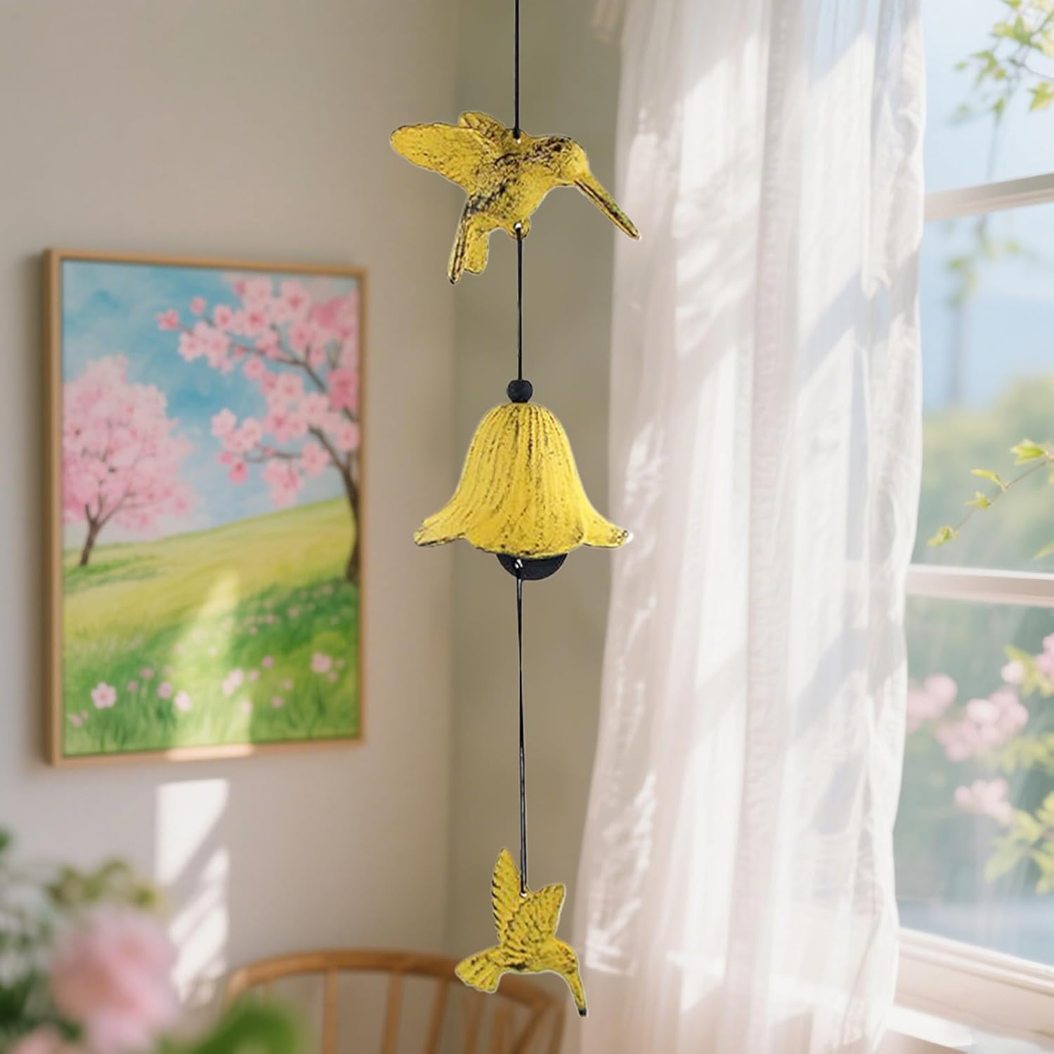 Campanelli a vento con colibrì per giardino e patio: splendidamente progettati con toni eleganti, questi campanelli a vento sono splendidi ornamenti decorativi per il tuo cortile, balcone, sentiero dell'albero o spazio interno Campane decorative per esterni per portico o cortile: perfette come affascinante accessorio da giardino, questo campanello a colibrì aggiunge suoni rilassanti e dettagli estetici a patii, portici, balconi e passerelle esterne Per mamma donna compleanno o Natale: idea regalo premurosa per mamme e nonne, questo ornamento da giardino porta gioia come regalo di compleanno, festa sorpresa o regalo di Natale Ornamento artistico per balcone e ingresso sull'albero: realizzato con dettagli di colibrì e delicati carillon, questo pezzo è ideale per chi cerca vibrazioni rilassanti nel proprio patio o spazio interno