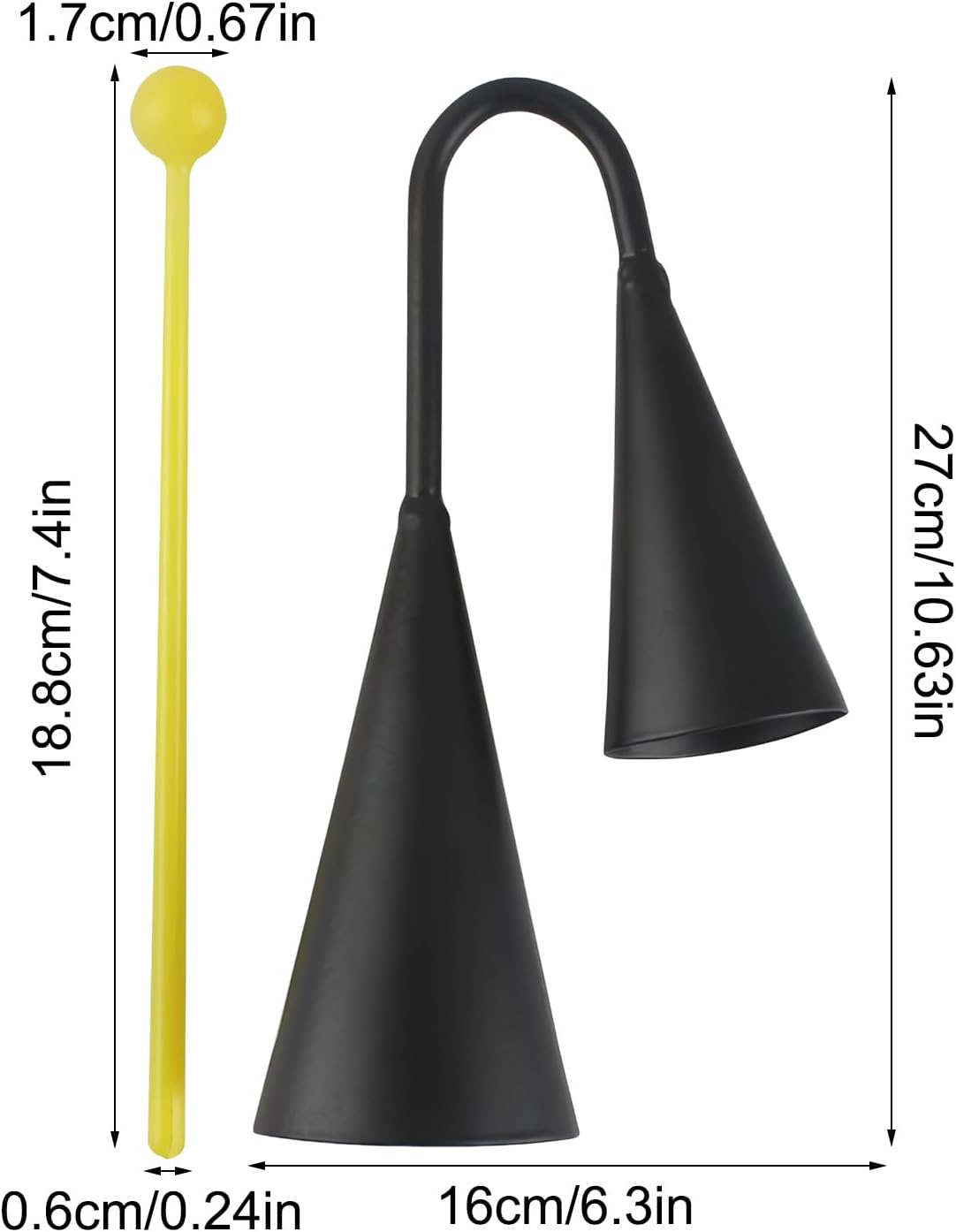 Strumento per la creazione di livelli musicali: solleva la tua musica con questo campanello bicolore, progettato per arricchire la tua batteria dinamica e fornire uno strato musicale fluido per un'espressione ritmica accattivante Impugnatura migliorata: il battitore ergonomico offre una presa confortevole fornendo prestazioni precise come martello a percussione, rendendolo un accessorio affidabile per la produzione di rumore con un martello reattivo per un uso senza problemi durante le esibizioni Comodità, senza compromessi: progettato come uno strumento leggero con una forma a campana compatta, la sua forma a mano lo rende facile da riporre e soddisfa le esigenze dei batteristi in cerca di portabilità Materiale di buona qualità: il risonatore in metallo fornisce toni chiari e un'uscita audio coerente, rendendo questi dispositivi ideali per le esibizioni, offrendo una struttura duratura e una risonanza stabile Uso versatile: perfetto per l'educazione musicale e l'ispirazione ritmica, questo campanello funge da accessorio per band o strumento a percussione palcoscenico, perfetto per l'improvvisazione ed espressione creativa durante le esibizioni