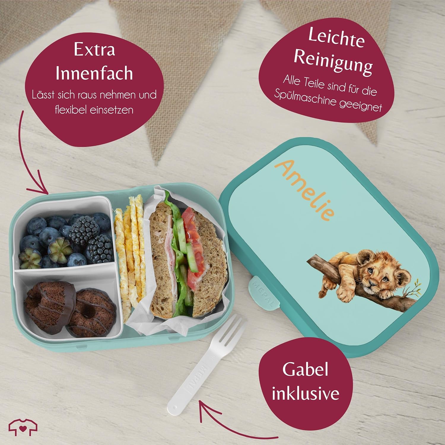 Ideale per ogni occasione: vuoi regalare un regalo davvero speciale questa volta? Oppure stai cercando “portapranzo con animali”? Sorprendi il tuo protetto con il regalo giusto per questo evento e rendilo felice con il nostro motivo. Regalo per bambini o fan dei leoni: stai cercando un "portapranzo personalizzato con tigre" come idea regalo per i bambini? Allora hai centrato l'obiettivo con questo bellissimo motivo! La combinazione del nome desiderato e del leone è qualcosa di molto speciale e rende il divertimento perfetto. Con questo motivo attirerai sicuramente l'attenzione e farai brillare tutti. Motivo con testo a scelta: i regali personalizzati sono particolarmente apprezzati sul tema dei leoni. Per quanto riguarda i leoni, puoi adattare questo fantastico design con il nome e i leoni desiderati esattamente ai tuoi desideri. Rendi davvero felice il tuo piccolo con questo bellissimo motivo personalizzato! Inserto Bento: questo bellissimo contenitore per il pranzo per bambini consente di separare il cibo grazie all'inserto Bento rimovibile e può quindi essere utilizzato in diversi modi. Che si tratti del classico pranzo o della frutta fresca e secca per la scuola, grazie agli scomparti tutto rimane fresco e appetitoso. Forchetta snack: il contenitore per il pranzo ti invita a gustare un'ampia varietà di cibi con la piccola forchetta snack. Il contenitore per snack non è adatto al microonde. Per riscaldare il cibo è quindi necessario toglierlo dal contenitore del pranzo