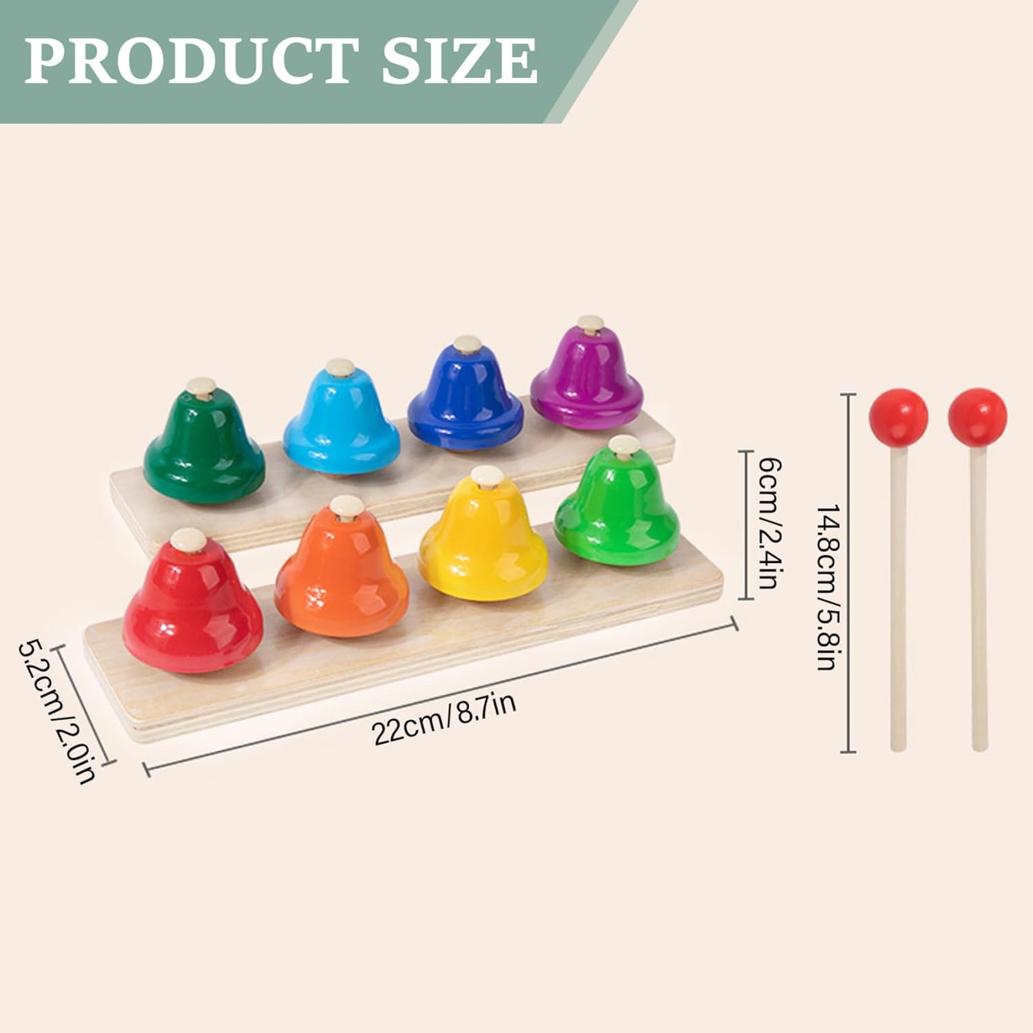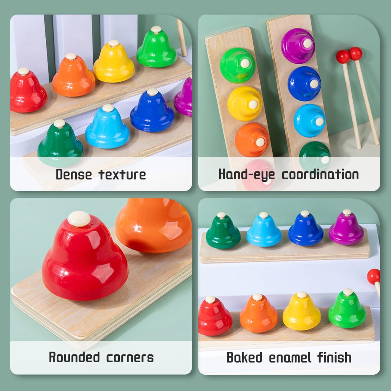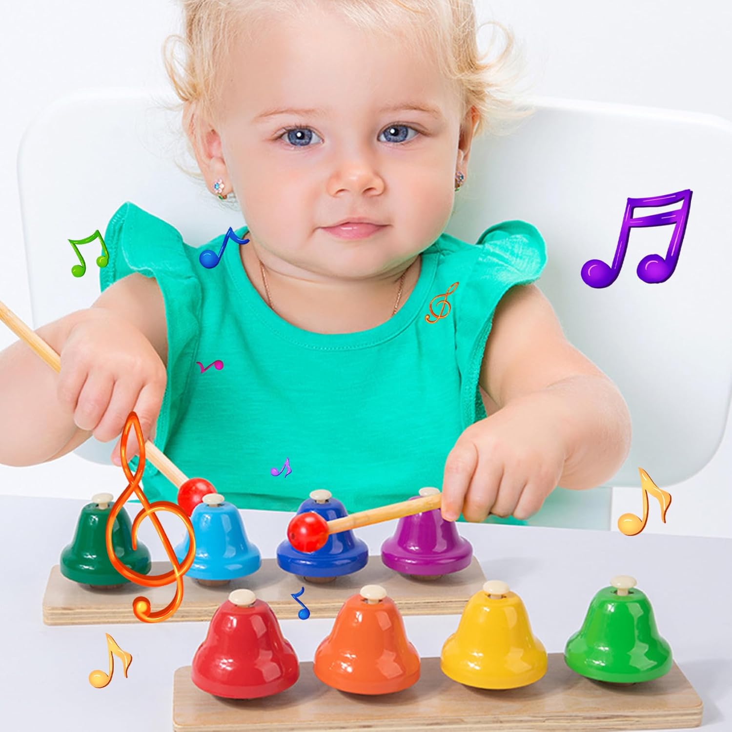 Punteggio per lo sviluppo perfetto: una scelta eccellente per compleanni o vacanze, questo set promuove la creatività, le abilità sensoriali e le esperienze di apprendimento gioiose per i bambini Varietà di colori vibranti: presenta 8 campane colorate progettate per catturare l'attenzione dei bambini e incoraggiare il gioco interattivo, rendendo l'apprendimento più coinvolgente e divertente Divertimento educativo e musicale: combina musica e istruzione per stimolare i sensi uditivi e la crescita cognitiva, ideale come strumento di apprendimento della prima infanzia Doppio design del martello: include 2 martelli per stili di gioco versatili, promuovendo la coordinazione occhio-mano e lo sviluppo delle abilità motorie nei bambini Materiali sicuri: realizzati con materiali per bambini e robusti che garantiscono un uso duraturo e un gioco sicuro per bambini piccoli e bambini piccoli