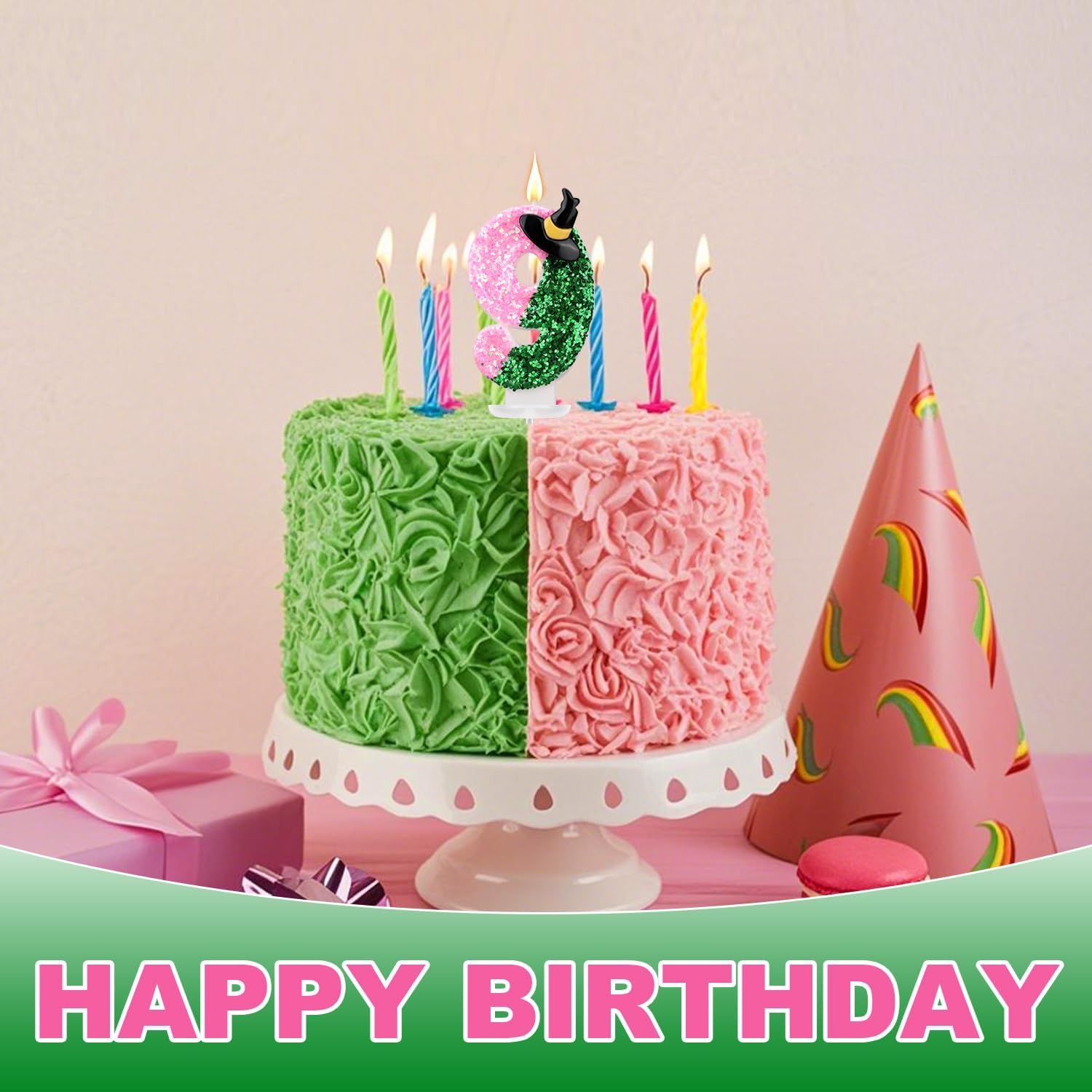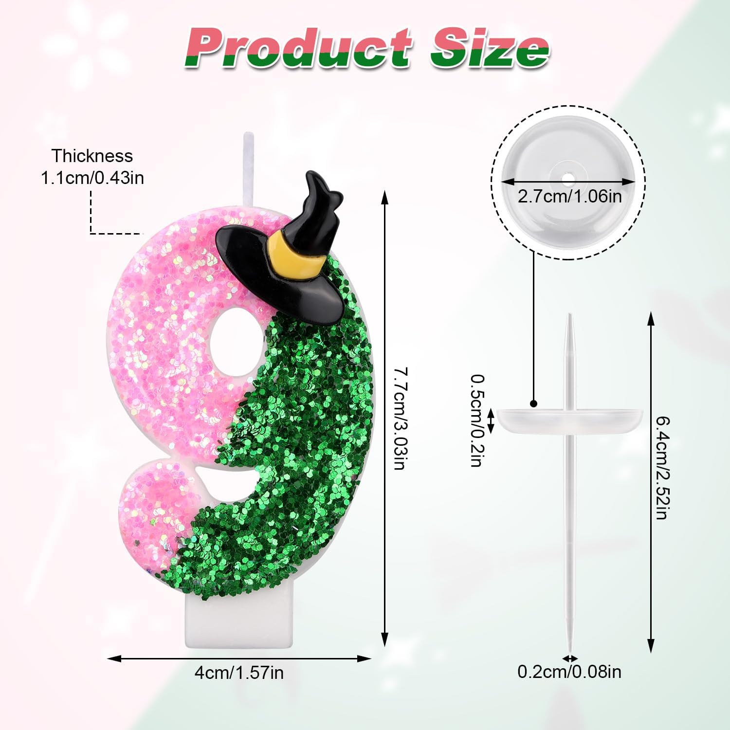 Elenco dei prodotti: riceverai una candela numerica, una base e un bastone.È una decorazione ideale per la torta e può creare un'atmosfera di festa allegra. Materiali premium: la candela è fatta di cera di paraffina di buona qualità e polvere di cipolla e la base è una plastica robusta, che è affidabile e resistente, brucia uniformemente e duratura, luminosa e luminosa, portando un bagliore caldo alla tua festa. Box equipaggiato: ogni candela viene fornita con una scatola di protezione per prevenire danni durante il trasporto.Facile da archiviare e conveniente per il riutilizzo nelle celebrazioni future. Design eccellente: la candela adotta la corrispondenza del colore rosa e verde, e c'è anche un abbellimento di cappello da strega in alto a destra, che è squisito e interessante, può attirare l'attenzione delle persone e può decorare bene le torte. Ampia applicazione: questa candela di compleanno può essere ampiamente utilizzata in varie attività, come compleanni, feste a tema, Halloween, feste da ragazzo o ragazza, anniversari, docce per bambini, ecc.