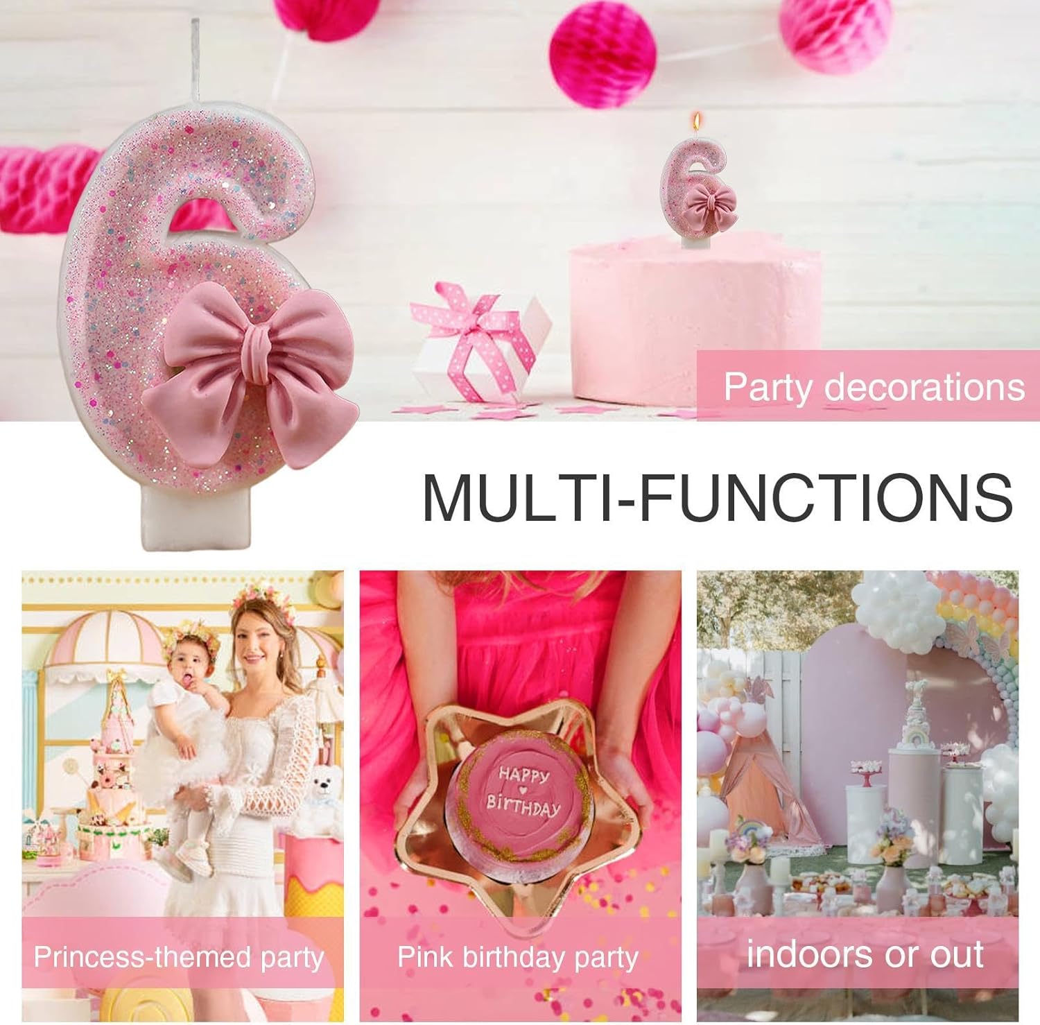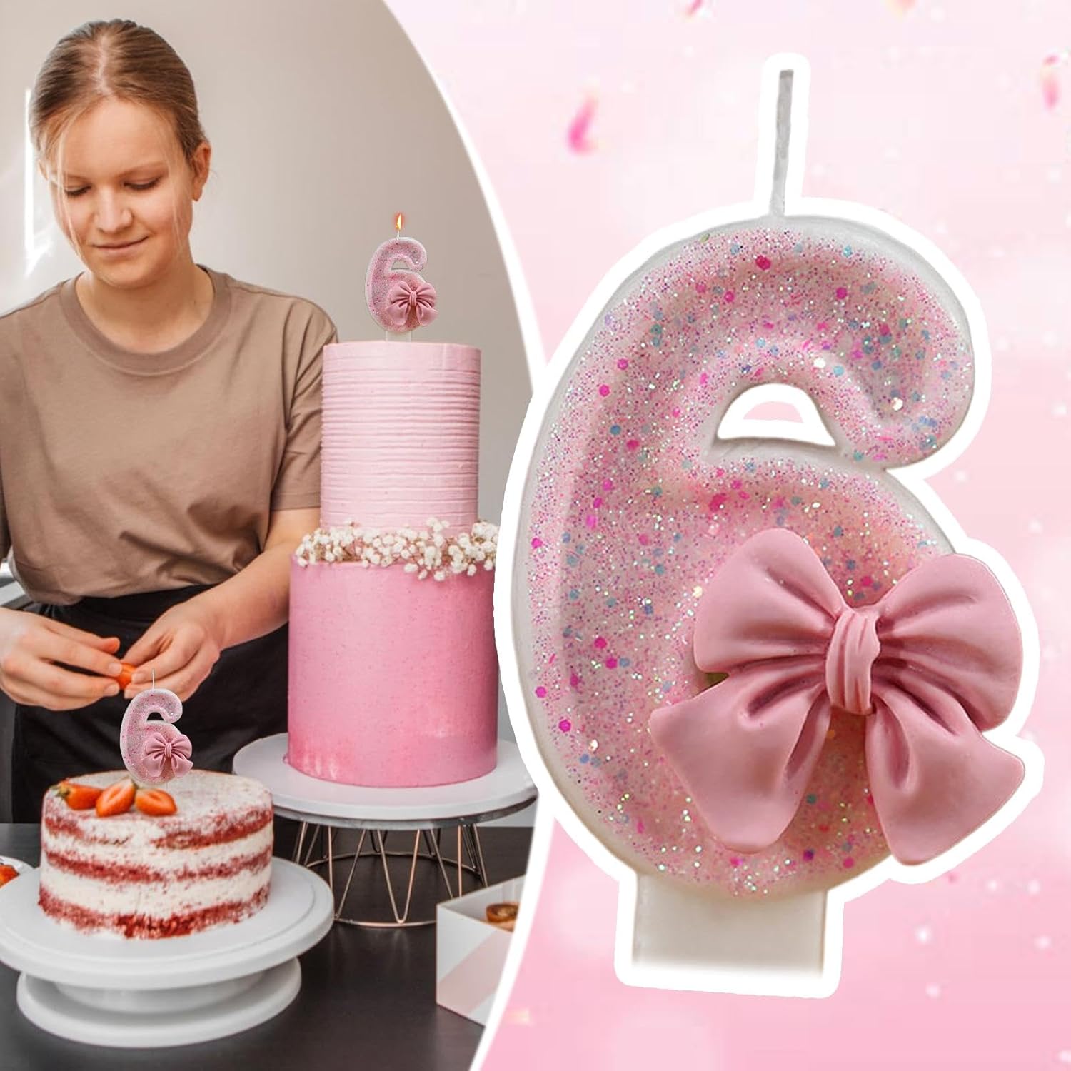 Aspetto affascinante: il colore principale è rosa e accessoriato con un elegante fiocco decorativo, ideale per qualsiasi compleanno a tema principessa o rosa Sicure per i bambini: realizzate in materiale sicuro, queste candele assicurano che siano sicure durante l'uso, rendendole sicure per i bambini e perfette per qualsiasi celebrazione Uso semplice: crea ricordi gioiosi con questi numeri di candele di compleanno. L'affascinante bagliore di queste candele dura durante le celebrazioni, all'interno o all'esterno. Facile inserimento per sollevare la torta con una fiamma stabile che brilla luminoso Ottima scelta per gli amici: crea ricordi cari con questi numeri unici per candele di compleanno. Lascia che il tuo bambino si senta amato e benedetto nel suo giorno speciale, poiché questo regalo è più di un semplice punto culminante, ma un simbolo duraturo di affetto Candele numeriche: queste candele di compleanno aggiungono più alla tua celebrazione infondendo sapori come parte delle decorazioni. Questo design digitale creativo in forma di numero scintillante fornisce che ogni candela aggiunge un'atmosfera divertente