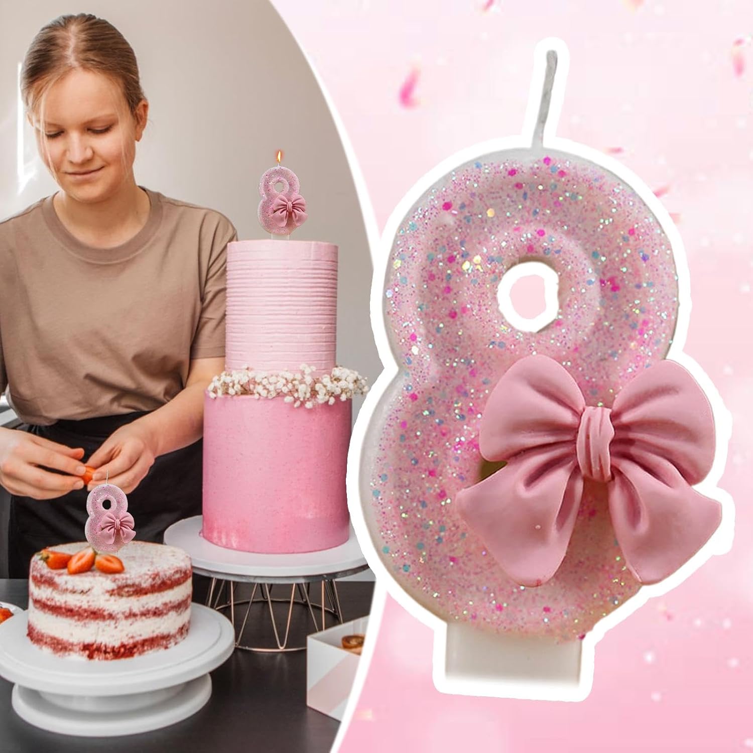 Aspetto affascinante: il colore principale è rosa e accessoriato con un elegante fiocco decorativo, ideale per qualsiasi compleanno a tema principessa o rosa Sicure per i bambini: realizzate in materiale sicuro, queste candele assicurano che siano sicure durante l'uso, rendendole sicure per i bambini e perfette per qualsiasi celebrazione Uso semplice: crea ricordi gioiosi con questi numeri di candele di compleanno. L'affascinante bagliore di queste candele dura durante le celebrazioni, all'interno o all'esterno. Facile inserimento per sollevare la torta con una fiamma stabile che brilla luminoso Ottima scelta per gli amici: crea ricordi cari con questi numeri unici per candele di compleanno. Lascia che il tuo bambino si senta amato e benedetto nel suo giorno speciale, poiché questo regalo è più di un semplice punto culminante, ma un simbolo duraturo di affetto Candele numeriche: queste candele di compleanno aggiungono più alla tua celebrazione infondendo sapori come parte delle decorazioni. Questo design digitale creativo in forma di numero scintillante fornisce che ogni candela aggiunge un'atmosfera divertente