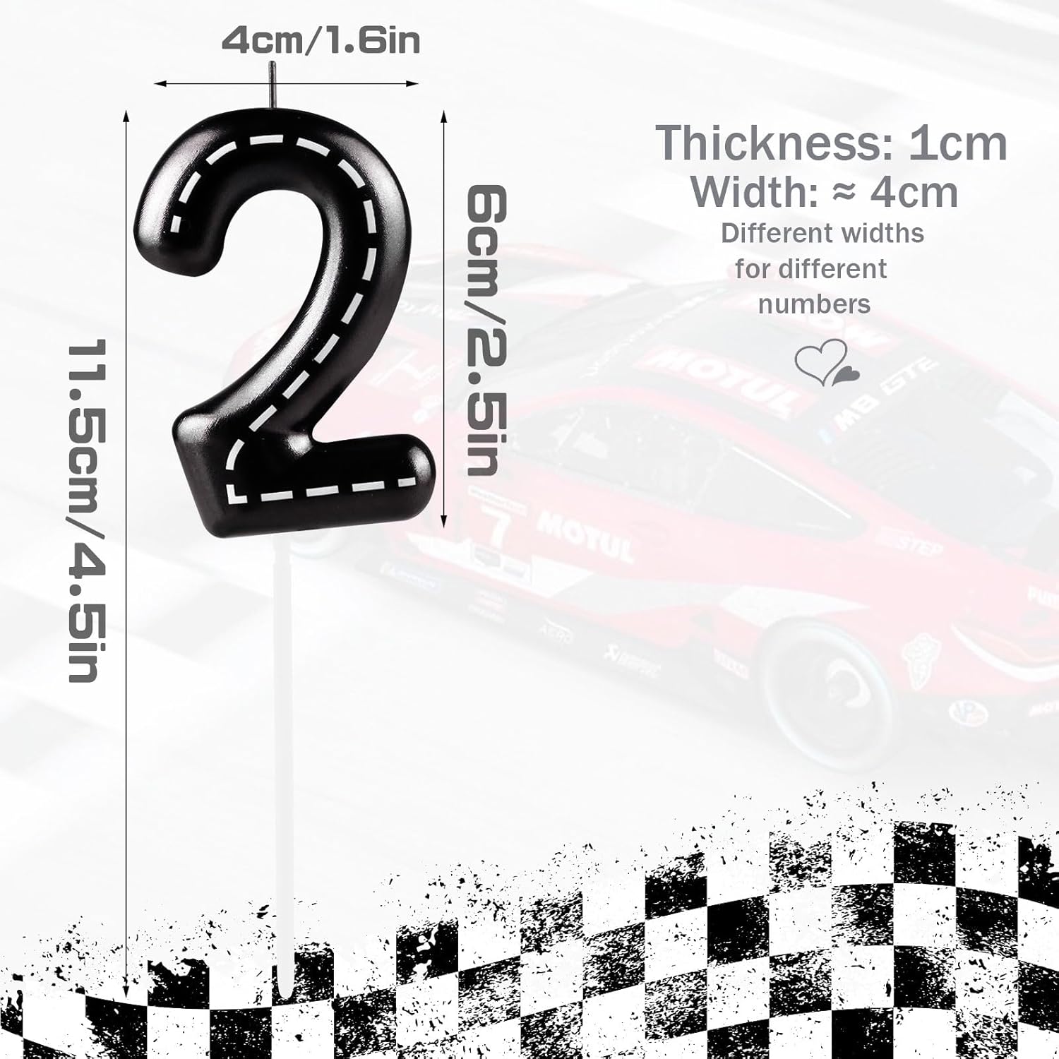 Candele di compleanno a tema auto da corsa colori vivaci: la candela di compleanno per auto da corsa bianca nera ha un aspetto squisito e carino. Ogni candela ha una sottile striscia bianca nera in colori vivaci per un look sofisticato e glamour, che può essere abbinata a qualsiasi torta a tema auto da corsa o topper per cupcake per una torta di compleanno elegante e distinguersi Candela per torta di compleanno con auto da corsa Materiale di alta qualità: le nostre belle candele metalliche per torta di auto da corsa sono realizzate con materiali di alta qualità, bilanciando bellezza e sicurezza. Puoi stare certo che sono sicuri da usare; adatti per qualsiasi decorazione per feste di compleanno a tema auto da corsa o qualsiasi celebrazione Dimensioni ideali per decorazioni per torte a tema auto da corsa. Le candele di compleanno sono circa 10 cm di lunghezza, la larghezza è di circa 4 cm; numero 2 candele; decorazione ideale per la maggior parte delle torte di compleanno e torte di festa; si prega di assicurarsi di misurare prima dell'acquisto per godersi la squisita combinazione di torte e candele Candela decorativa per feste di compleanno per auto da corsa per la maggior parte delle occasioni: queste belle candele per torta di auto da corsa bianche e nere possono essere facilmente abbinate a vari temi e colori della torta per feste. Non solo adatto per feste di compleanno, è anche il topper ideale per feste a tema auto da corsa, baby shower, anniversari, feste di pensionamento, riunioni di famiglia, feste di Halloween, feste luau e persino Natale e varie altre occasioni, che possono offrirti una festa memorabile e significativa Regalo squisito per gli amanti delle auto da corsa: la nostra decorazione per feste di compleanno con auto da corsa nera metallica bianca è un regalo unico. Puoi regalarlo alla tua famiglia e agli amici alle feste degli amanti delle auto da corsa, feste a tema auto da corsa, feste di compleanno per amanti della corsa, anniversari e altri giorni significativi per esprimere la tua cura e benedizioni