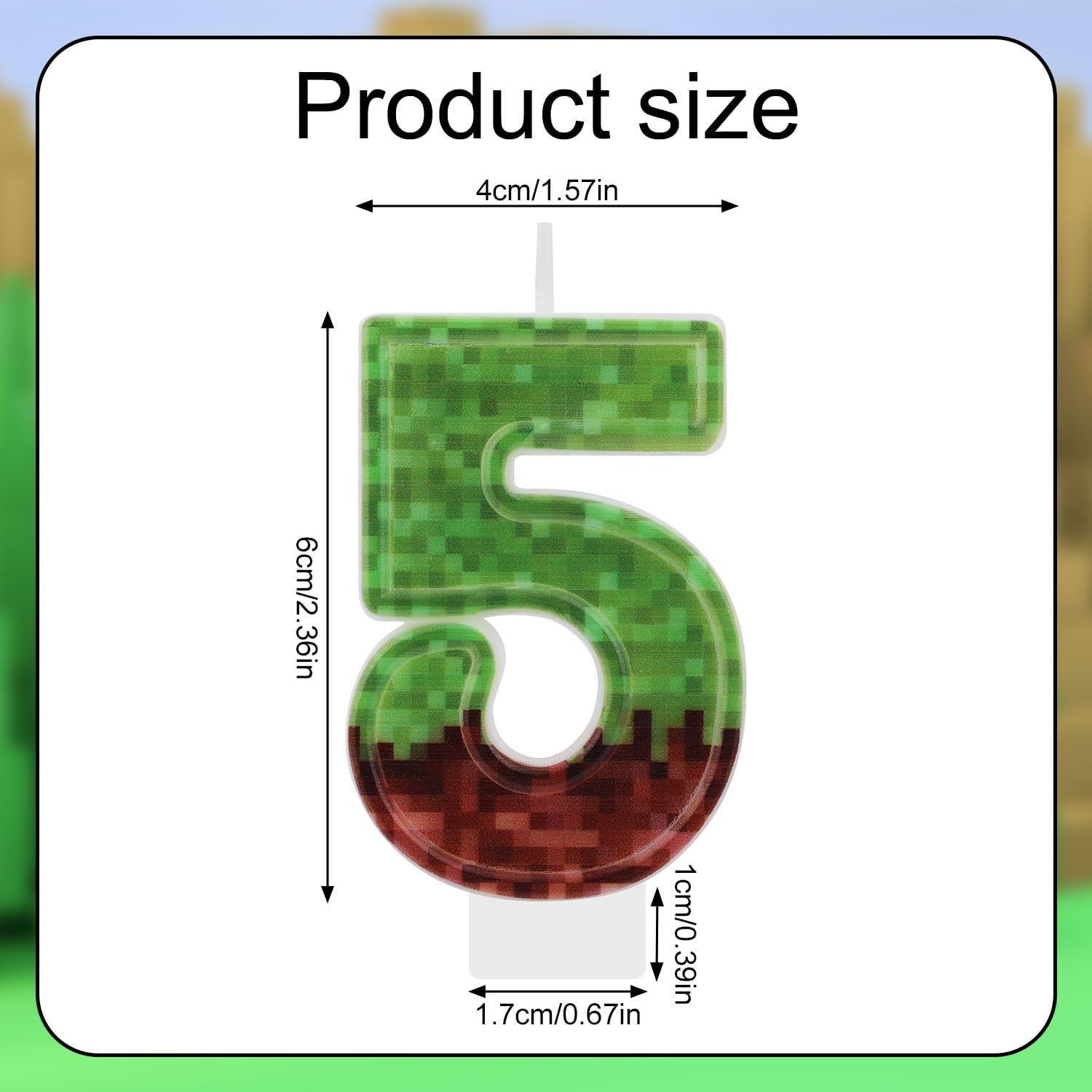 Contenuto del prodotto: riceverai 1 candela di numero di compleanno, che può soddisfare le tue esigenze di decorazione.A causa della sua novità e un aspetto squisito, sarà una decorazione attraente per la tua festa. Materiale premium: la nostra candela del numero di compleanno è realizzata in paraffina di qualità, che è sicura, resistente e può illuminare per molto tempo, offrendoti abbastanza tempo per fare desideri e cantare canzoni di compleanno.Inoltre, è anche facile da accendere, il che può offrirti un'esperienza utilizzata buona e conveniente. Design ponderato: la dimensione della nostra candela del numero di compleanno è 6x4 cm, che è piccola e leggera.Non ci vorrà troppo spazio della tua torta e non danneggerà la forma della tua torta.Puoi sentirti sicuro di usarlo.Inoltre, utilizziamo piccoli schemi quadrati per progettare la nostra candela numerica, che rende la candela novità e modernizzata, offrendoti un'esperienza di festa memorabile. Facile da usare: è facile per te inserire la nostra candela del numero di compleanno nella tua torta.Dotato di un bastone, se ritieni che il piedistallo non sia abbastanza lungo da poter inserire, puoi inserire il bastone nella parte inferiore della candela per usarlo. Ampia applicazione: la nostra candela del numero di compleanno è adatto per feste di compleanno, festa a tema, festa a tema del gioco, anniversario e altro ancora.Può essere una decorazione accattivante per la tua festa.