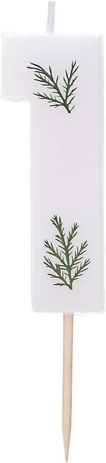 Candela di compleanno / cake topper numero 1 in stile botanico in bianco con foglie incorporate in verde Materiale cera di paraffina e legno Larghezza 4 cm e altezza 9 cm + 3 adesivi "Lets Party" di My Weddingshop Decorazione per torta super elegante per ogni festa di compleanno - non importa se grande o piccola - ogni bambino che compie gli anni non vede l'ora di spegnere le candeline