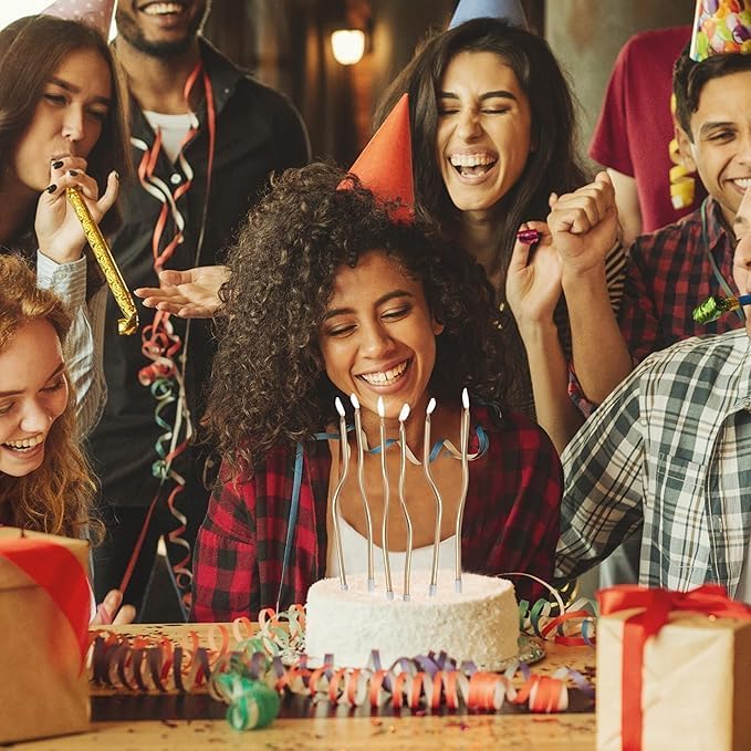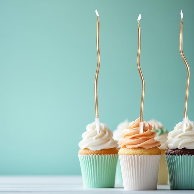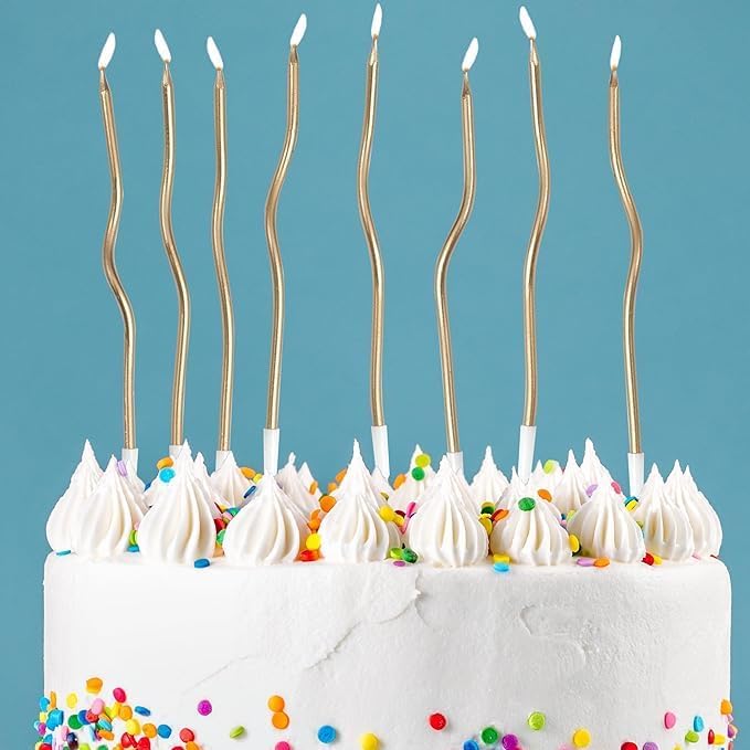 Materiale di alta qualità e sicuro per alimenti: realizzate in cera di paraffina di alta qualità, queste candele decorative per torte sono atossiche, senza fumo e bruciano uniformemente. La texture opaca garantisce una facile maneggevolezza e posizionamento senza scivolare. Durevole e facile da usare: progettato per un uso senza problemi: basta inserirlo nelle torte. Nota: a causa della lavorazione artigianale può verificarsi un lieve peeling del rivestimento, ma non influisce sulla funzionalità. Include 24 candele riutilizzabili per molteplici eventi. Elegante design a spirale riccio: queste candele di compleanno metalliche da 16,2 cm presentano una forma attorcigliata unica, aggiungendo un tocco moderno e accattivante a torte, cupcake e dessert. Perfetto per creare foto degne di Instagram con le loro curve artistiche e finiture lucide/satinate. Sfumature metalliche vibranti: scegli tra finiture oro brillante o argento lucido. Il rivestimento spruzzato a mano offre una sottile texture satinata, mescolando lusso con un'estetica minimalista. Ideale per matrimoni, compleanni o esposizioni di pasticceria di alto livello. Decorazione versatile per feste: migliora le celebrazioni in panetterie, negozi di dessert o riunioni a casa. Il loro design pieghevole consente composizioni creative, mentre le dimensioni compatte (circa 16,2 cm) si adatta alla maggior parte dei ripiani per torte senza sopraffare il design.