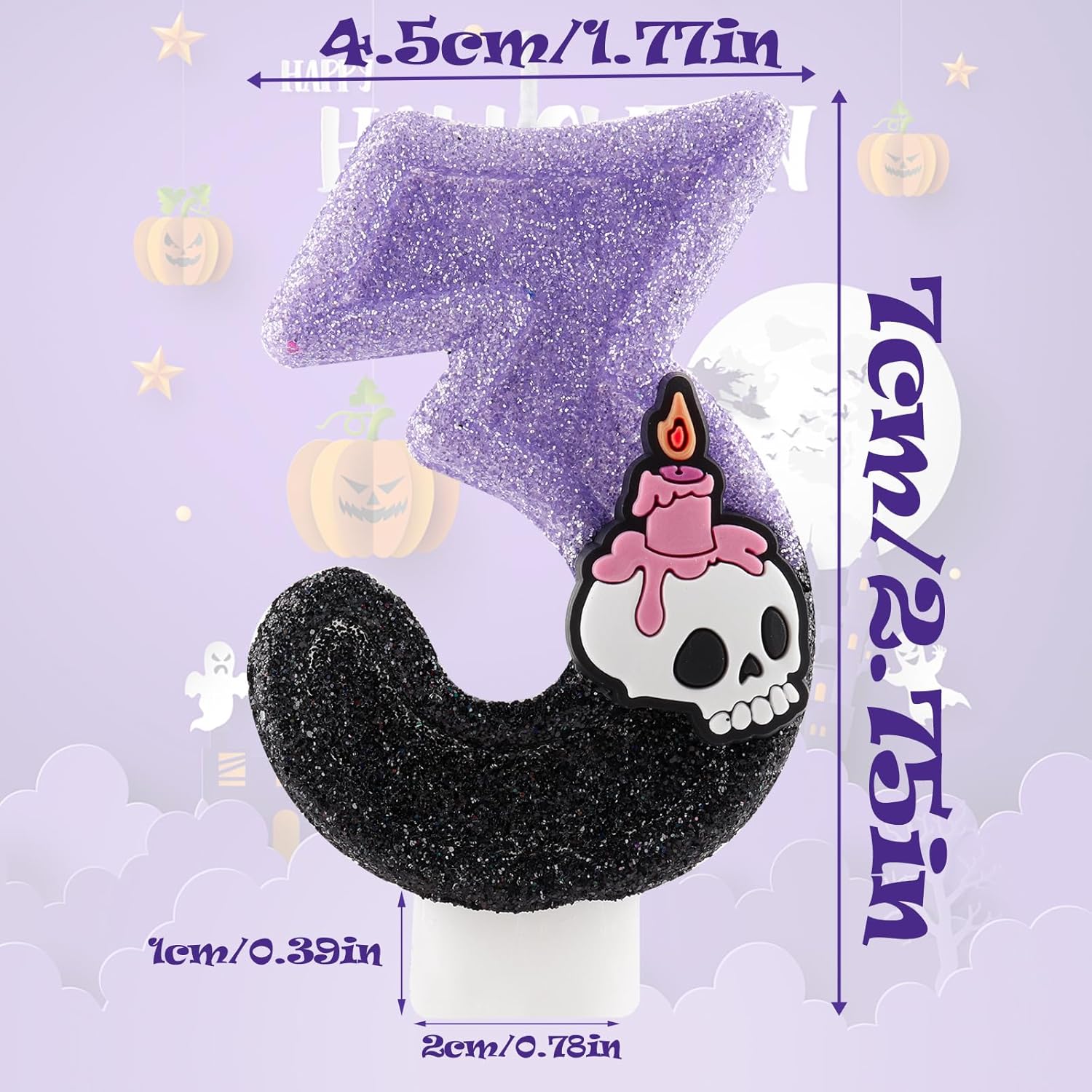 【INFORMAZIONI SULLE CANDELE】:Viene fornito con 1 pezzi di candela scheletro con numero 5.La dimensione delle candele di compleanno è di circa 5 cm / 1,97 pollici di lunghezza, la lunghezza totale (includono il candelabro) è di circa 11,5 cm / 4,5 pollici, dimensioni appropriate come decorazione topper torta per la maggior parte dei compleanni e Halloween. 【Materiale sicuro】:Le nostre candele di compleanno di Halloween per torte sono realizzate in materiali rispettosi dell'ambiente, sicuri e inodori, adatte per torte di compleanno di qualsiasi dimensione o per qualsiasi celebrazione come festa di Halloween, festa di compleanno, anniversario, festa a tema e ecc, candele scintillanti ideali per torte di compleanno, candele di torta di compleanno, candela di buon compleanno. 【Imballaggio e artigianato】:La nostra candela scheletrico numero 5 ha una forte forma tridimensionale, proprio come la superficie tagliata dei diamanti, adatta a persone di qualsiasi età e di entrambi i sessi. Le decorazioni della torta di compleanno a tema Halloween sono imballate da cartone kraft, che è più protettivo del pacchetto della carta blister sul mercato e può impedire efficacemente che la candela venga schiacciata, può soddisfare le vostre esigenze di festa di compleanno. 【MULTI-USO】:Questa candela di compleanno è in tema Black Purple Skeleton, luminosa e brillante nel buio. E si abbina facilmente con la festa di compleanno e l'arredamento di colori di Halloween. Non solo per i compleanni dei bambini, ma anche per i compleanni degli adulti. Decorazione torta ideale per molte occasioni, come festa di Halloween, compleanni, baby shower, anniversari, riunioni di famiglia, matrimoni, anche Natale, oggetti imperdibili per torta di festa. 【Aspetto delicato, senso visivo 3D】:Le decorazioni della torta della festa dello scheletro sono significative per celebrare il tuo compleanno e Halloween, bella decorazione del topper della torta per abbellire la tua torta e la cupcake, luminosità luminosa per creare un'atmosfera romantica e aggiungere un tocco di elegante.