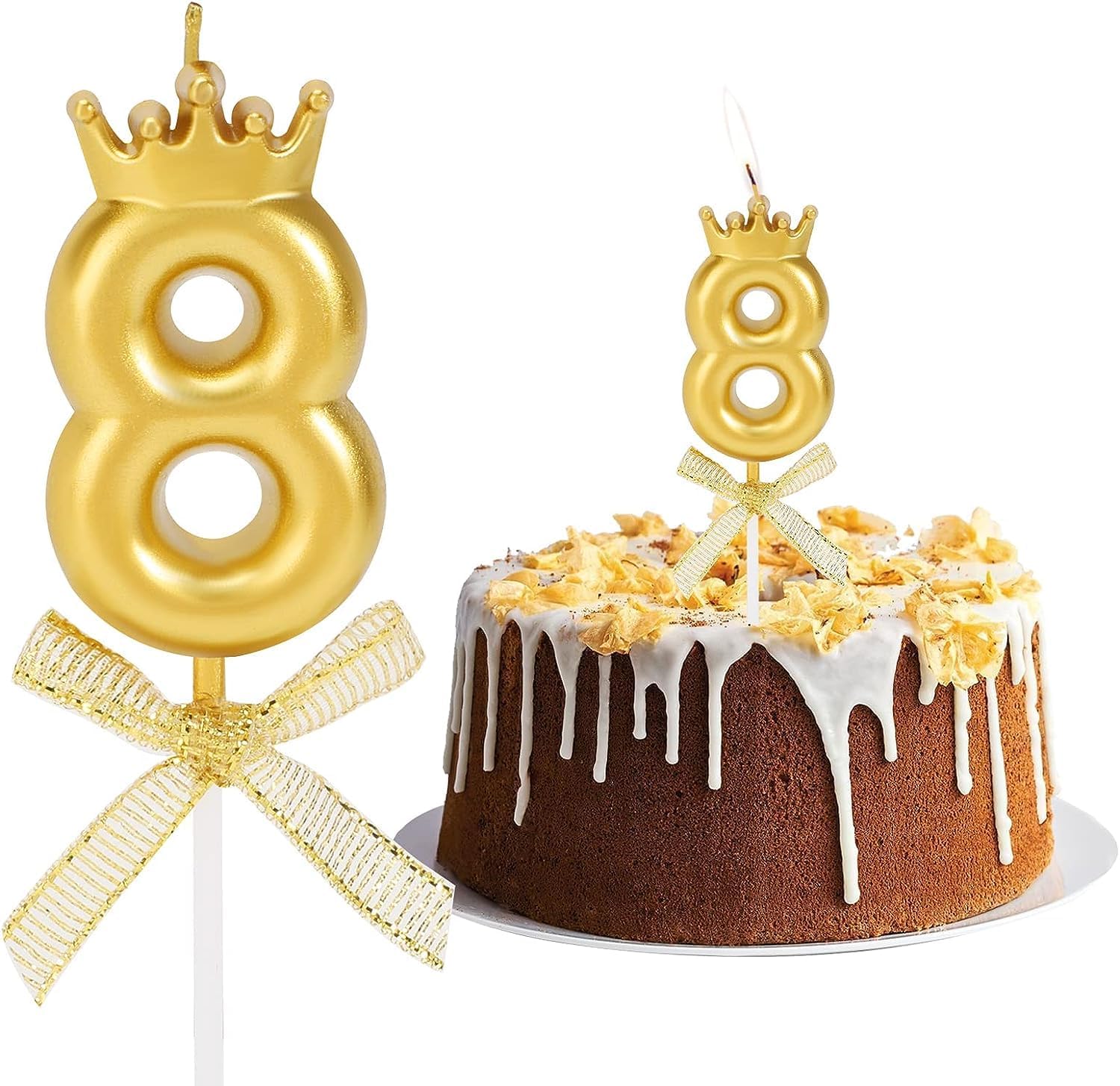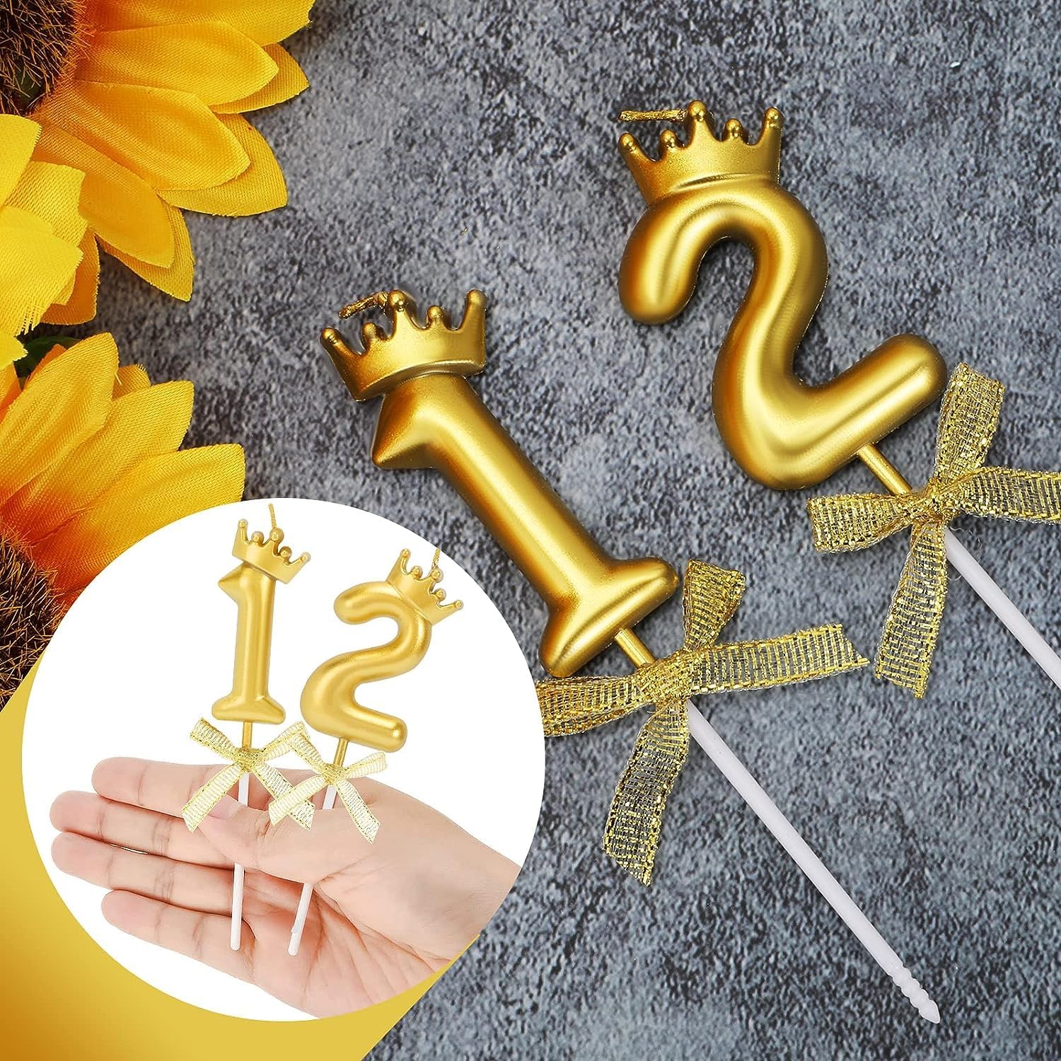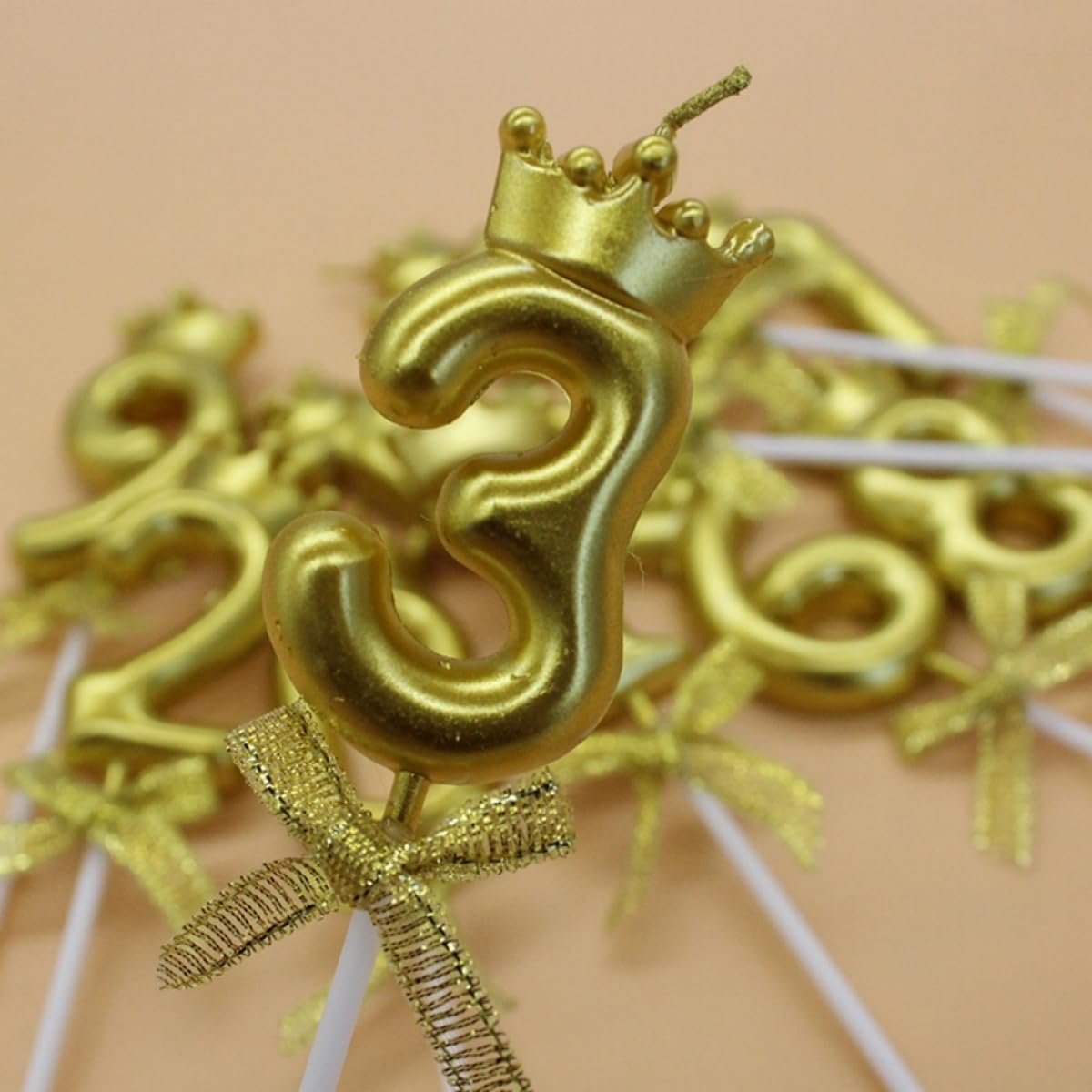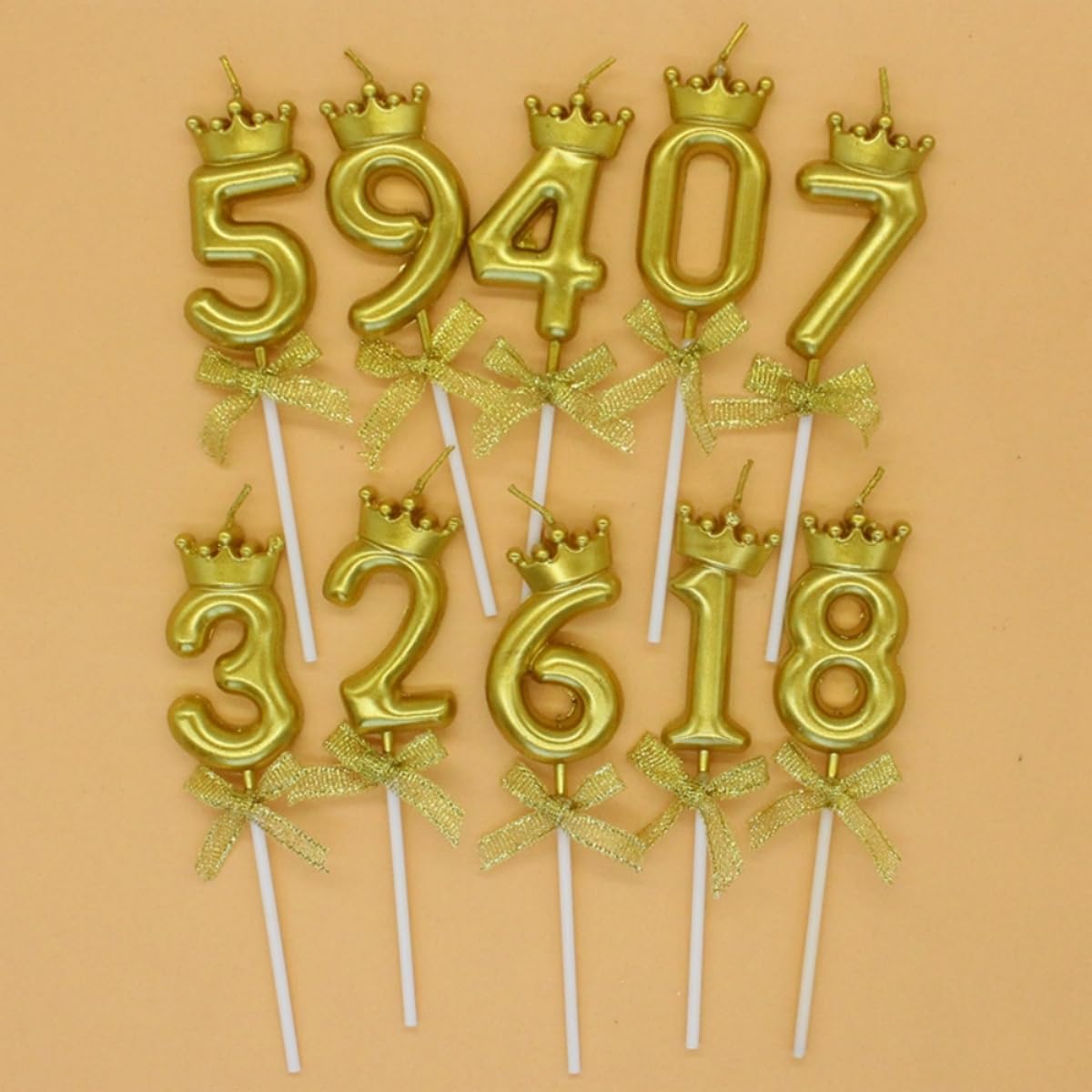 La confezione include: riceverai 10 pezzi di candele con numeri d'oro, il numero da 0 a 9, sufficienti per soddisfare le tue esigenze. Materiali: le candele di compleanno sono realizzate in cera senza fumo di qualità. Ecologiche e non tossiche. Facile da inserire e accendere. Brucia uniformemente e costantemente. Aspetto delicato: le candele di buon compleanno sono disponibili in colori vividi dorati e si illuminano di luce scura. Rendi speciale la tua torta di compleanno e risalta. Dimensioni: 2,8 x 5,5 x 7 cm. Le candele con numero d'oro reggono bene sulla torta nel giusto peso e lunghezza. Ampia applicazione: adatto a molte occasioni, come compleanni, matrimoni, baby shower, anniversari, feste di pensionamento e così via, puoi usare questi 10 numeri per mettere insieme in età diverse.