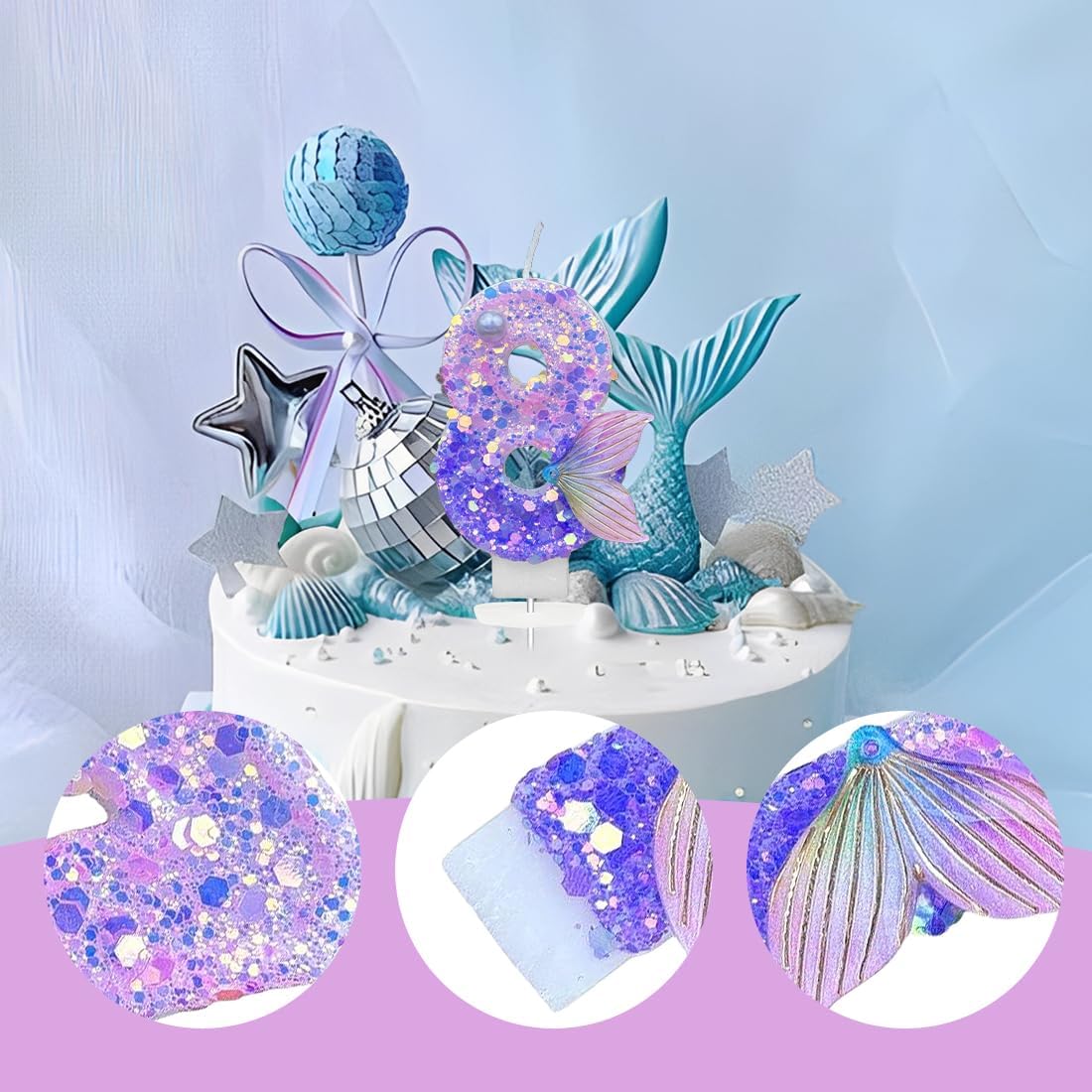 Candele numero 8 (1 pezzo): la candela numero Viola adotta un design tridimensionale 3D, presenta una finitura accattivante e scintillante. La luce delle candele crea un'atmosfera romantica e calda. Misura adatta: ogni candela per torta di compleanno è lunga circa 8cm, con una lunghezza totale (compreso il paletto della candela) di circa 12 cm - può essere utilizzata nella dimensione appropriata come decorazione per torte per utilizzare la maggior parte delle torte e delle candele cupcakes Materiale sicuro: la candela del 8° anniversario è realizzata in cera di alta qualità, inodore, facile da bruciare, inodore, senza fumo e non tossica, sicura da usare e facile da inserire nella torta, adatta a bambini e adulti Ampiamente usato: le candele di compleanno sono ideali per compleanni, baby shower, baby shower, feste di pensionamento, riunioni di famiglia, matrimoni, Hawaii, decorazioni per torte di compleanno, per rendere le decorazioni di compleanno più significative e memorabili e portarti buon umorismo. Imballaggio e lavorazione: ogni candela con numero di compleanno è confezionata singolarmente, la superficie della candela ha glitter dorati, squisita e unica.