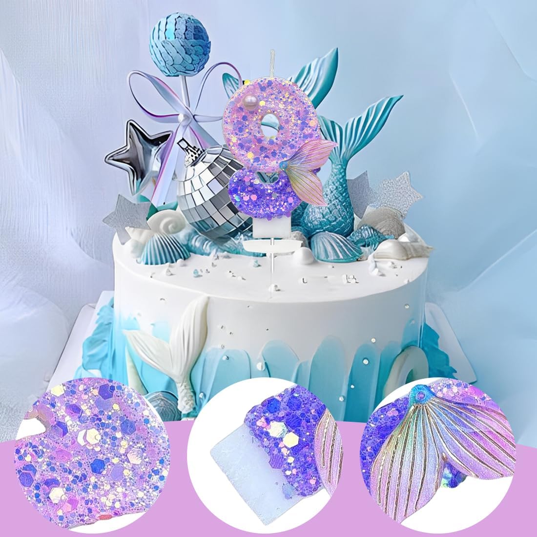 Candele numero 9 (1 pezzo): la candela numero Viola adotta un design tridimensionale 3D, presenta una finitura accattivante e scintillante. La luce delle candele crea un'atmosfera romantica e calda. Misura adatta: ogni candela per torta di compleanno è lunga circa 9cm, con una lunghezza totale (compreso il paletto della candela) di circa 12 cm - può essere utilizzata nella dimensione appropriata come decorazione per torte per utilizzare la maggior parte delle torte e delle candele cupcakes Materiale sicuro: la candela del 9° anniversario è realizzata in cera di alta qualità, inodore, facile da bruciare, inodore, senza fumo e non tossica, sicura da usare e facile da inserire nella torta, adatta a bambini e adulti Ampiamente usato: le candele di compleanno sono ideali per compleanni, baby shower, baby shower, feste di pensionamento, riunioni di famiglia, matrimoni, Hawaii, decorazioni per torte di compleanno, per rendere le decorazioni di compleanno più significative e memorabili e portarti buon umorismo. Imballaggio e lavorazione: ogni candela con numero di compleanno è confezionata singolarmente, la superficie della candela ha glitter dorati, squisita e unica.